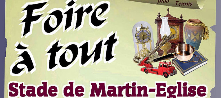 La foire à tout organisée conjointement par Martin-Eglise Animation, les clubs de judo, de tennis et de football aura lieu le dimanche 5 juin 2022 de 8h à 18h.