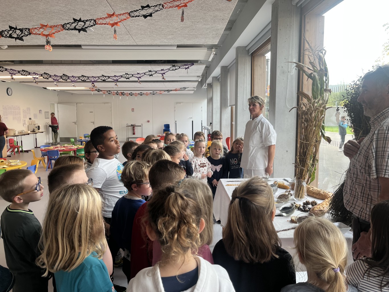 Au repas, les enfants ont pu déguster les différents graines, notamment grâce à une salade froide au maïs et boulgour, un mélange de céréales, du pain aux graines ou encore un gâteau maison au citron et pavot.