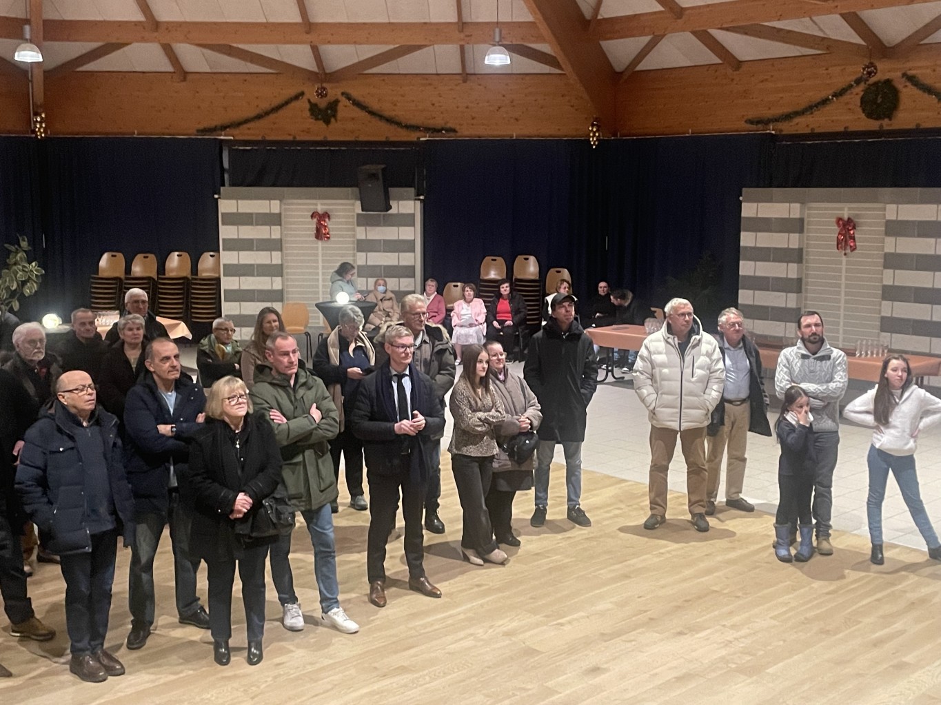 Mardi 6 janvier, à la salle des fêtes André Désaubry, s’est déroulée la cérémonie des vœux en présence de nombreux maires et élus de l’agglomération. C’est notre premier adjoint, M. Bertrand Cremet, qui a commencé la cérémonie en rappelant les principaux travaux qui ont été réalisés dans la commune au cours de l’année 2025. Il a salué le travail effectué par l’ensemble du personnel communal au cours de l’année écoulée.