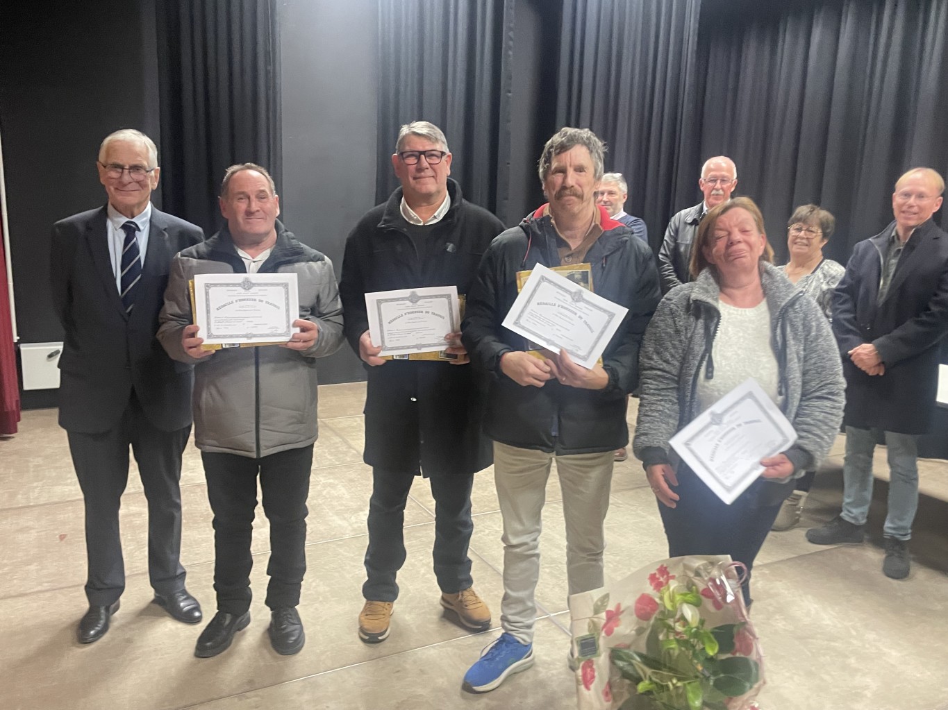 Avant le traditionnel verre de l’amitié, le maire et son conseil ont remis les diplômes concernant la médaille du travail à 4 habitants de la commune :
