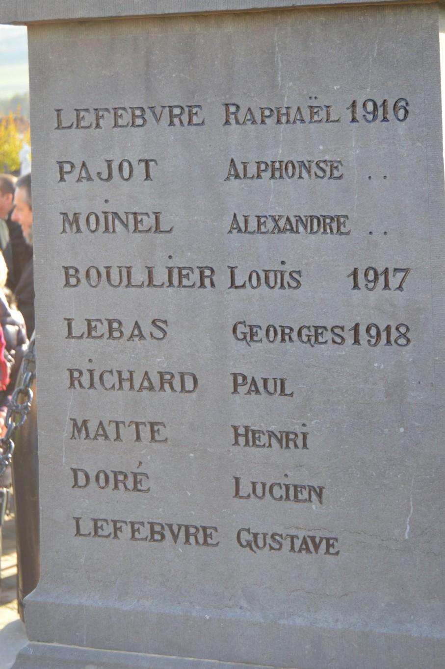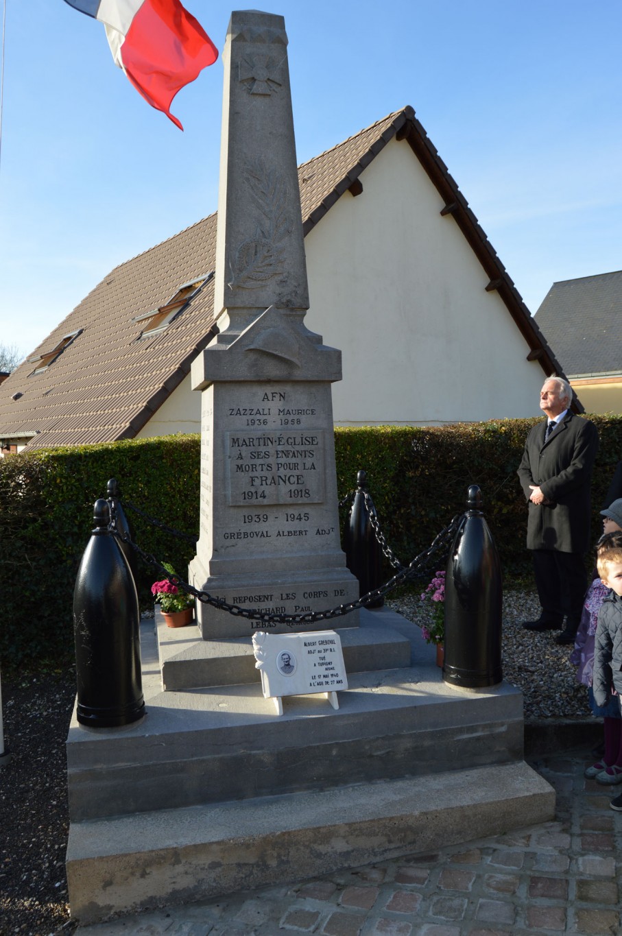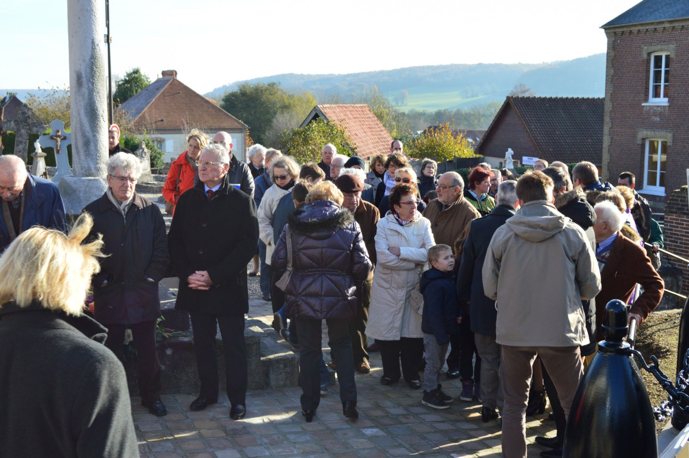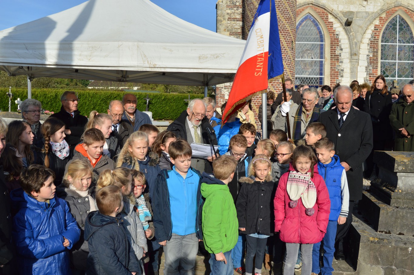 Dès 9h30, une messe en mémoire de tous les combattants de ce conflit et des autres était célébrée en l’église de Martin-Eglise. A cette occasion, nous avons eu le plaisir d’accueillir notre nouveau prêtre, le père Geoffroy de la Tousche. Ce fut pour lui l’occasion de découvrir notre église puisque c’était la première fois qu’il venait ici. A la fin de la messe, une foule importante s’est rassemblée au pied du monument aux morts. Plus d’une quarantaine d’enfants de l’école élémentaire s’était joint à l’assemblée pour rendre hommage aux soldats martinais morts au cours de la grande guerre et pendant les autres conflits du 20éme siècle. Après avoir écouté le discours du secrétaire d’état aux anciens combattants lu par le président des anciens combattants, la sonnerie aux morts retentit et Monsieur le maire fit l’appel des soldats tombés au front. Un gerbe a ensuite été déposée au pied du monument et les enfants de l’école élémentaire ont chanté la Marseillaise.