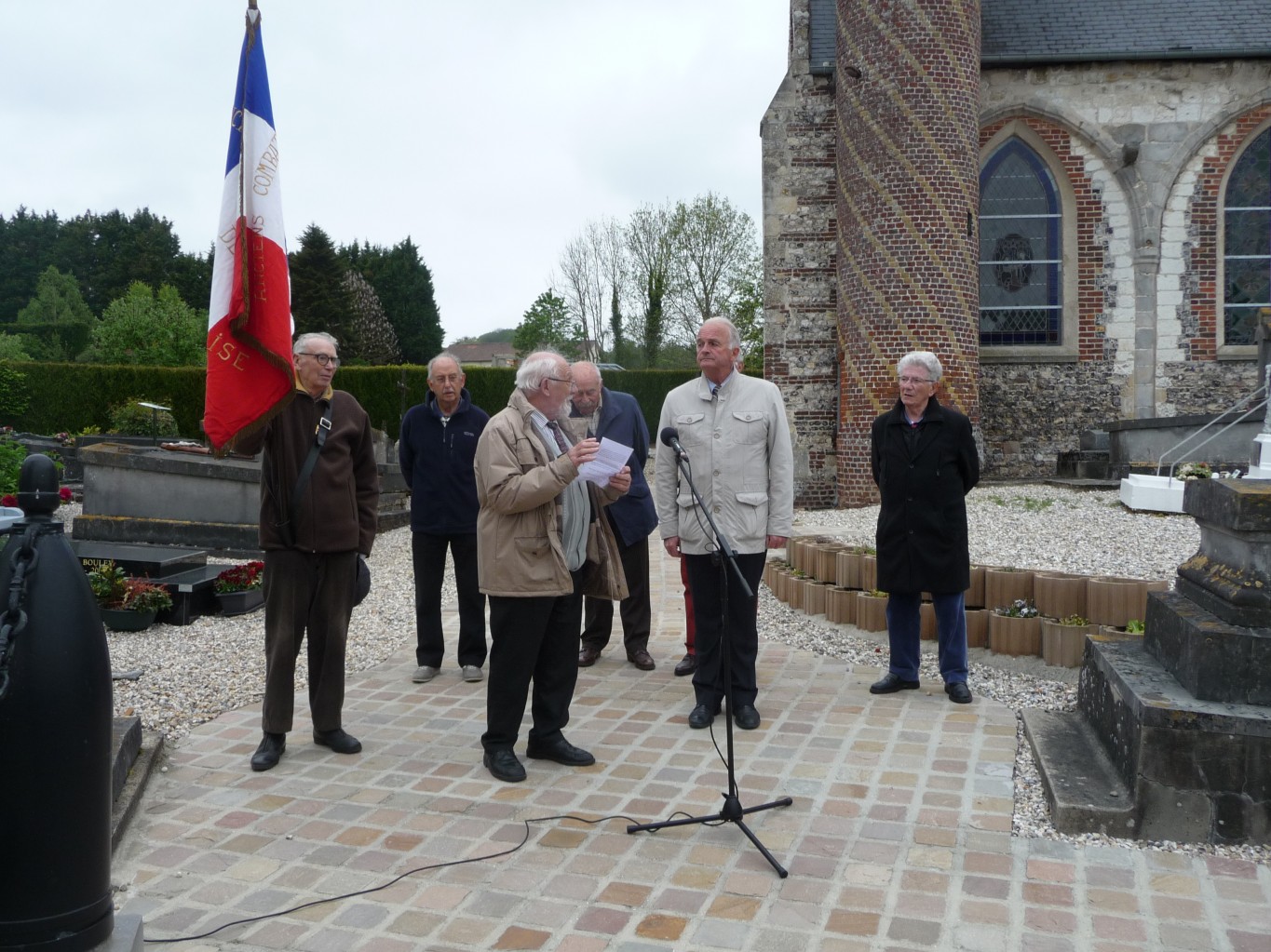 C’est sous un ciel gris que la cérémonie du 8 mai a débuté , l’occasion de rendre hommage aux soldats français et aux civils tués pendant la seconde guerre mondiale. Ainsi, un hommage a pu être rendu à l’adjudant Albert Gréboval qui fut tué lors de la campagne de France en mai 1940. La cérémonie commença par la lecture du discours du Secrétaire d’État chargé des anciens combattants et de la mémoire, puis une gerbe fut déposée au pied du monument aux morts de la commune. Une minute de silence fut observée en la mémoire de toutes les victimes de ce conflit, puis la Marseillaise résonna. Cette année 2017 sera l’occasion de commémorer également le 75ème anniversaire du raid anglo-canadien sur Dieppe le 19 août 1942.