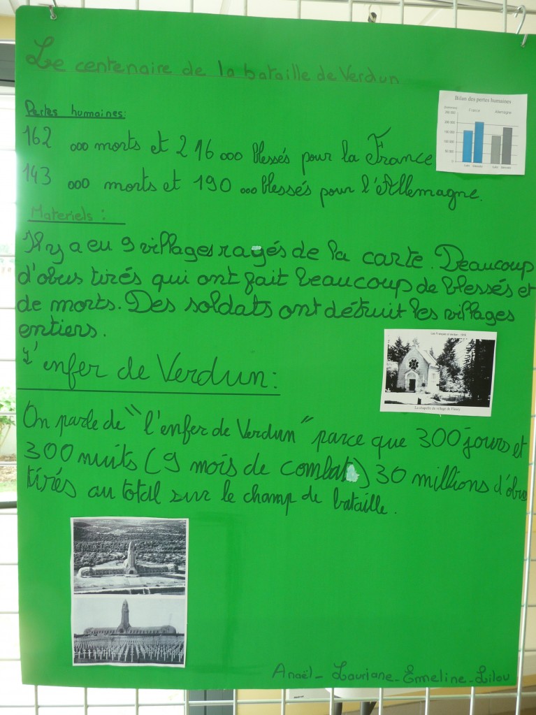 Ce dimanche 29 mai 2016 s’est déroulée aux monuments aux morts une cérémonie à la mémoire des soldats français tombés sur les champs de bataille de Verdun. Ce fut l’occasion de rappeler que 3 martinais ont été tués au cours de cette bataille qui a duré plus de 10 mois. Ainsi, un hommage fut rendu plus particulièrement à Raphael Lefebvre, Alphonse Pajot et Alexandre Moinel tués lors de cette bataille. Après le discours du secrétaire d’état aux anciens combattants, les enfants du groupe scolaire Le Vallon ont chanté la Marseillaise. A la fin de la cérémonie, les élèves ont présenté à la salle Sully une exposition sur cette bataille qu’ils ont réalisée pendant l’année scolaire