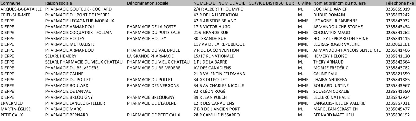 Liste des pharmacies :