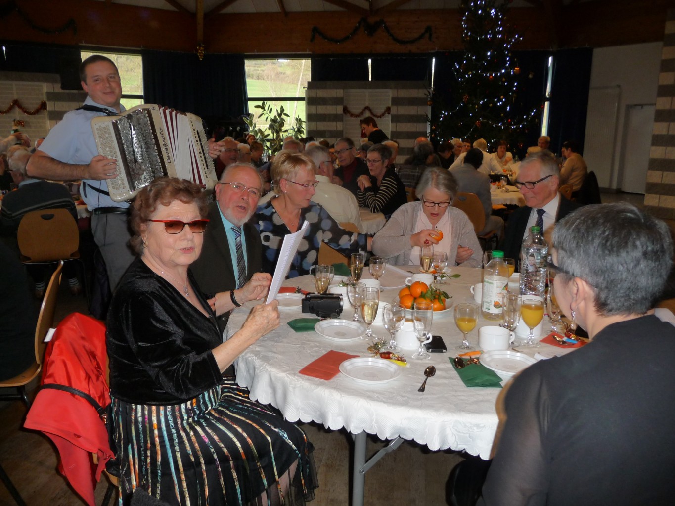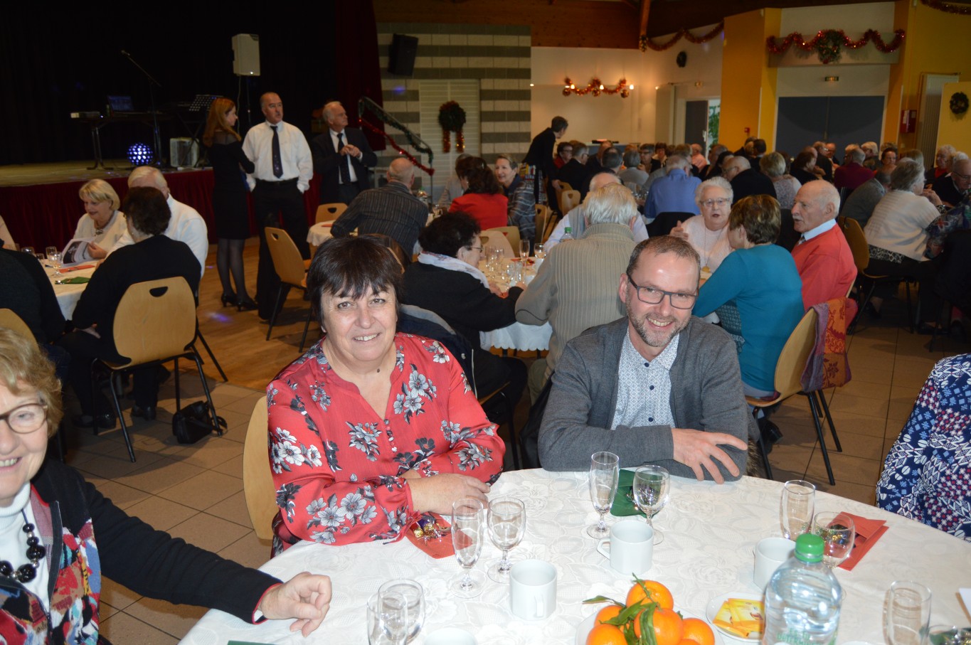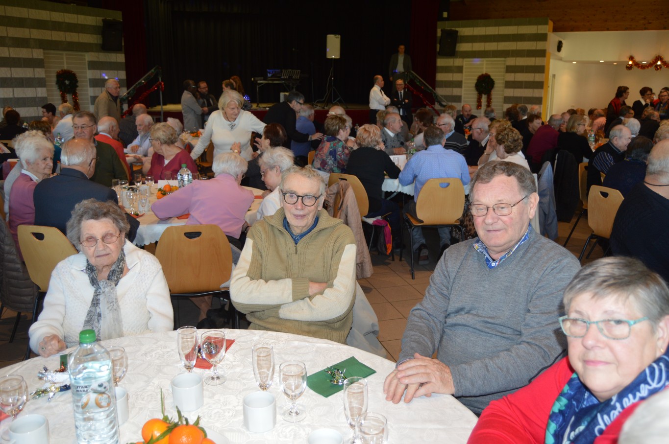 Samedi 16 décembre 2017, le CCAS, présidé par Mme Marie-Claude Laurent, avait invité nos anciens pour un après-midi festif. Quelques 145 convives se sont retrouvés à la salle des fêtes, après le discours de bienvenue prononcé par Mr Gill Geryl, c’est au son de l’accordéon de Vincent Montier que s’est poursuivie cette journée. Tout a commencé par un goûter pendant lequel les anciens ont pu exercer leur talent de chanteurs, accompagnés par notre accordéoniste. Ils ont pu ensuite danser sur des valses, des tangos… pour terminer par une grande farandole. La fin de journée a été ponctuée par la distribution du traditionnel colis de Noël.