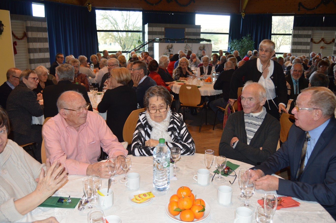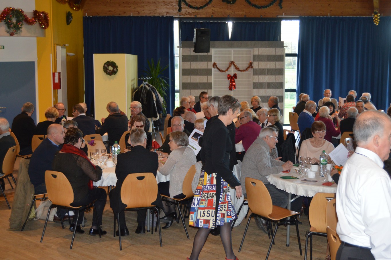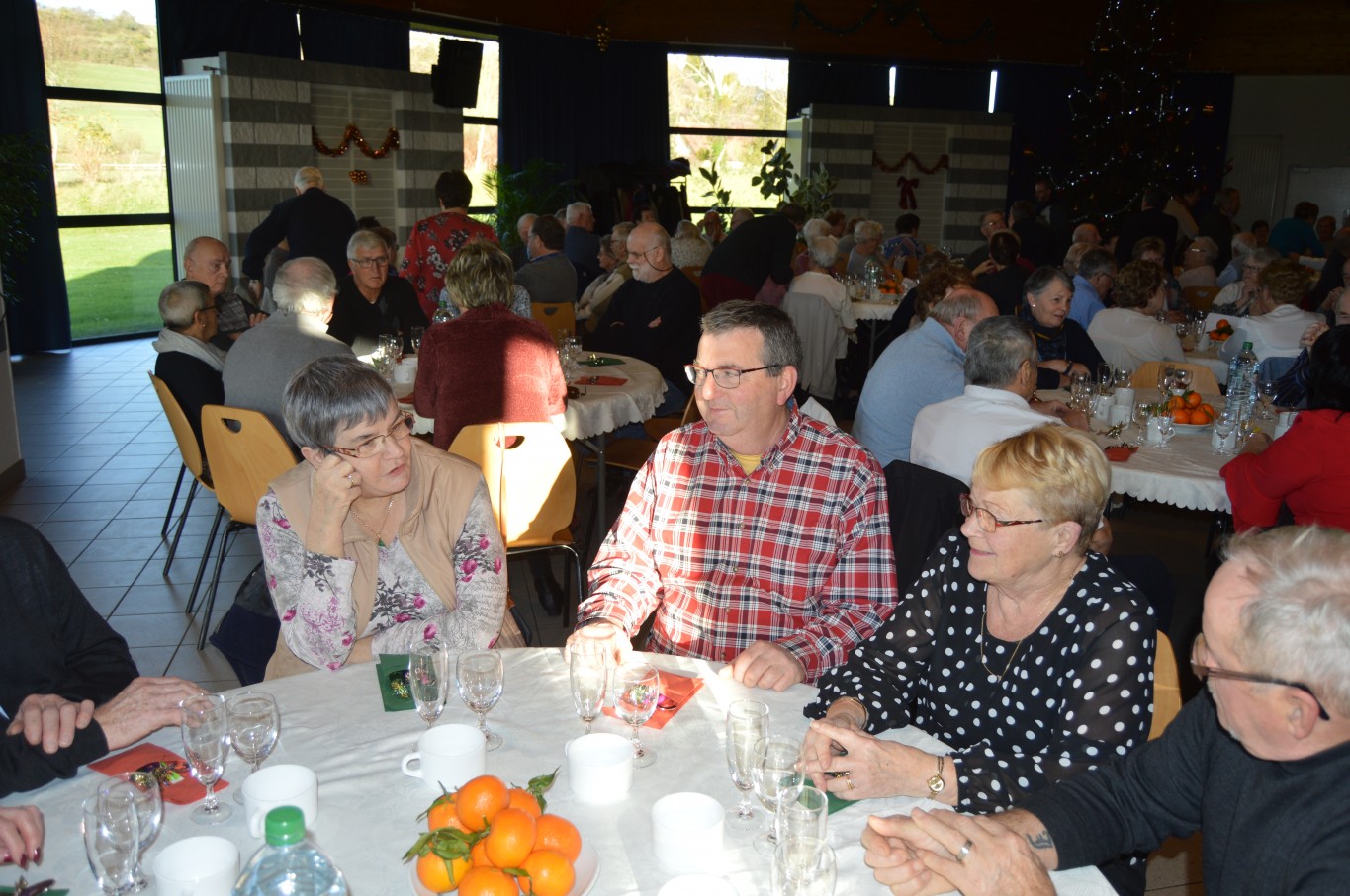 Samedi 16 décembre 2017, le CCAS, présidé par Mme Marie-Claude Laurent, avait invité nos anciens pour un après-midi festif. Quelques 145 convives se sont retrouvés à la salle des fêtes, après le discours de bienvenue prononcé par Mr Gill Geryl, c’est au son de l’accordéon de Vincent Montier que s’est poursuivie cette journée. Tout a commencé par un goûter pendant lequel les anciens ont pu exercer leur talent de chanteurs, accompagnés par notre accordéoniste. Ils ont pu ensuite danser sur des valses, des tangos… pour terminer par une grande farandole. La fin de journée a été ponctuée par la distribution du traditionnel colis de Noël.