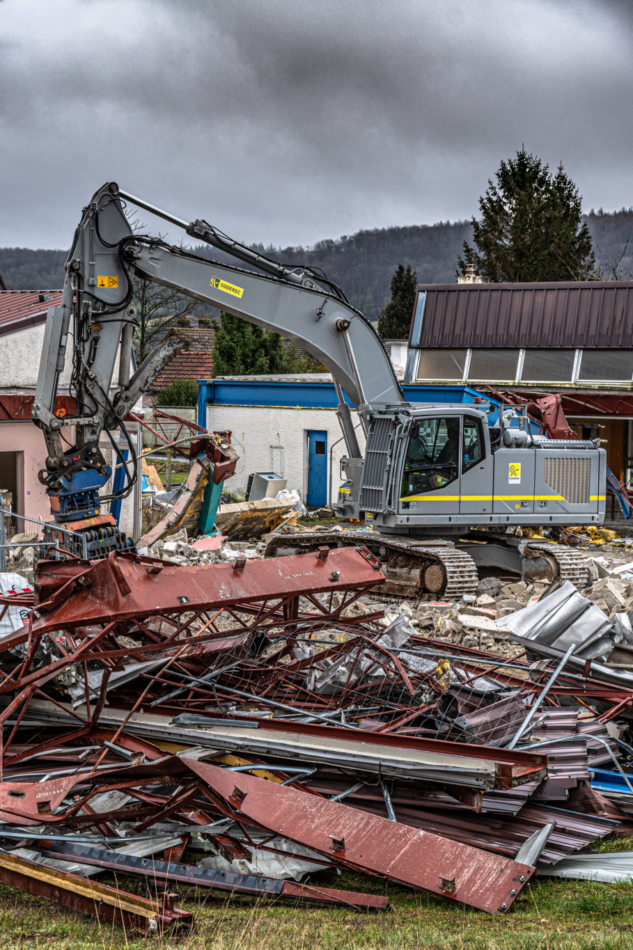 Après l’interminable phase de désamiantage de l’ancienne école élémentaire Le Vallon, sa démolition a enfin pu commencer.