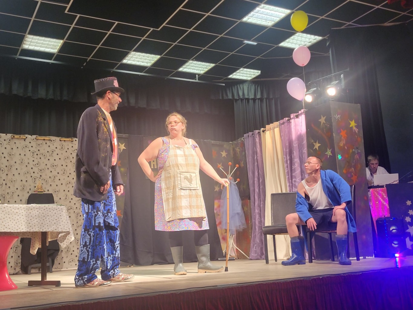 La troupe des 18 pattes a donné rendez-vous à son public ce vendredi 26 mai. Près de 200 personnes se sont retrouvées à la salle André Désaubry pour venir voir la dernière création de Bruno Scrève. Pendant près d’une heure trente, le public a pu rire des péripéties de Ginette Cru et son fils Roger qui rêve de devenir une star de la danse mais tout ne se déroule pas comme prévu le jour du casting. Entre rebondissements, enquête policière et héritage, Roger ne comprend plus rien à ce qui lui arrive…