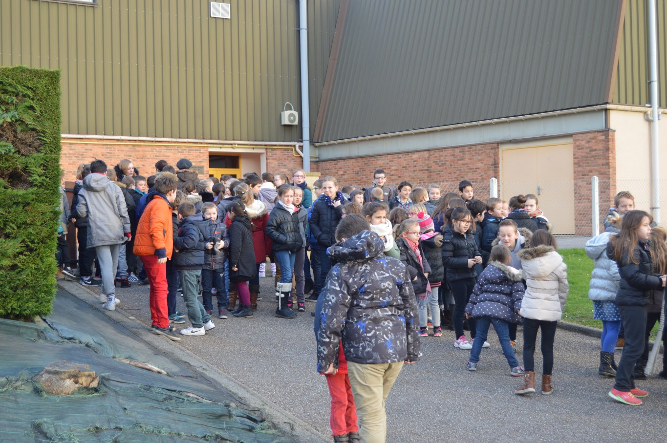 Les élèves de l’école Le Vallon ont réalisé à 9h30 ce vendredi 15 janvier un exercice d’évacuation. Le scénario était le suivant : des individus dangereux sont repérés dans une commune proche . On nous demande de déclencher notre PPMS et d’évacuer l’école pour rejoindre un lieu plus sécurisé. Les enfants évacuent rapidement : 3min 39 et se rendent à l’étage du gymnase.