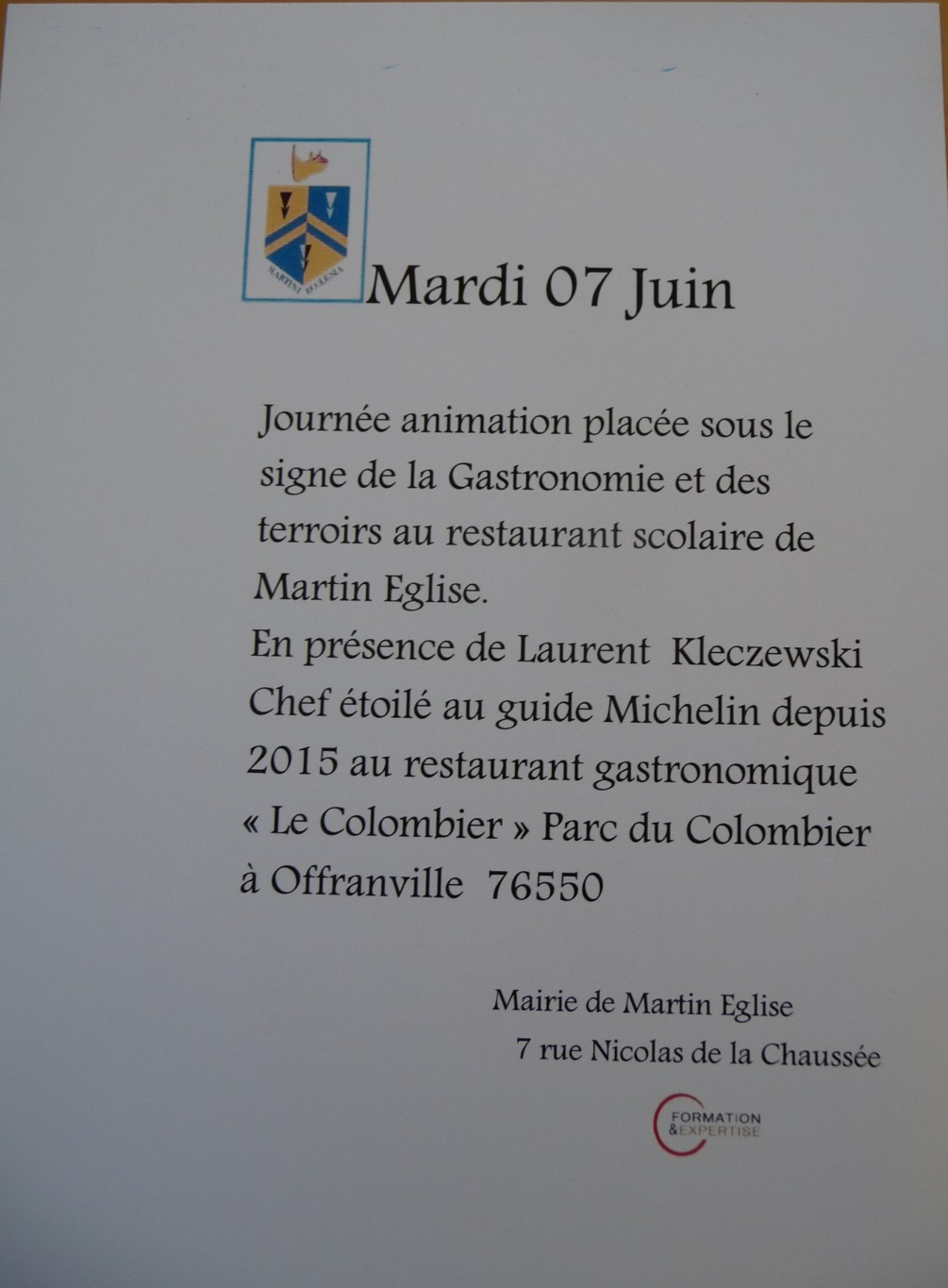 Le Mardi 7 Juin 2016 la municipalité a organisé une journée sur le thème de la gastronomie au restaurant scolaire.