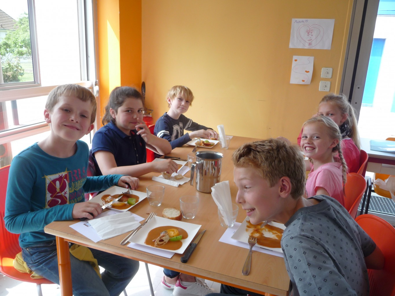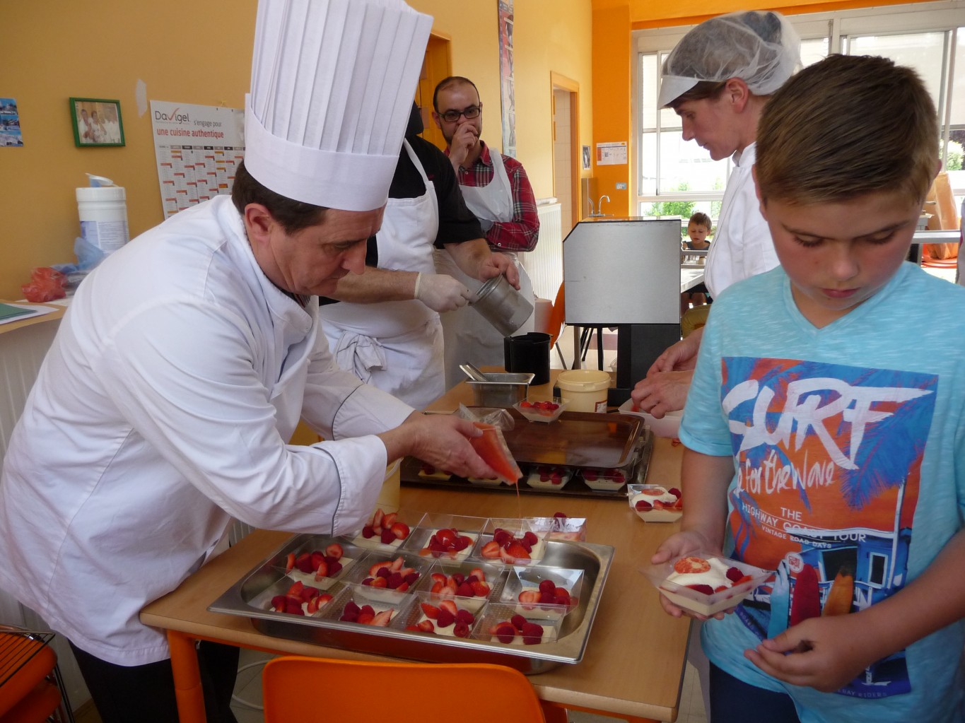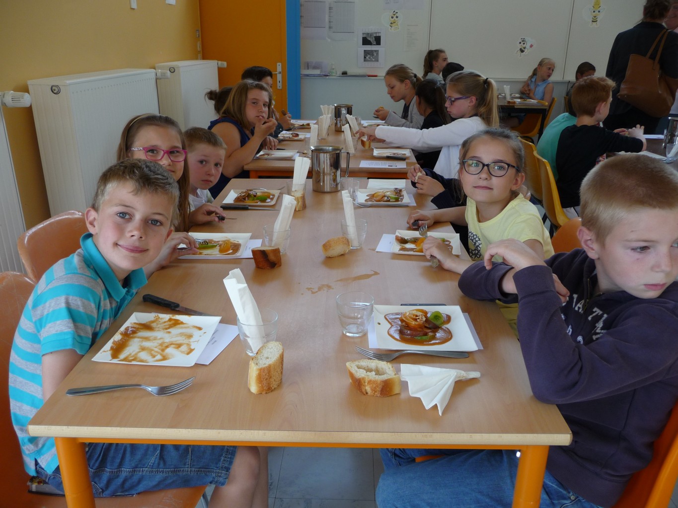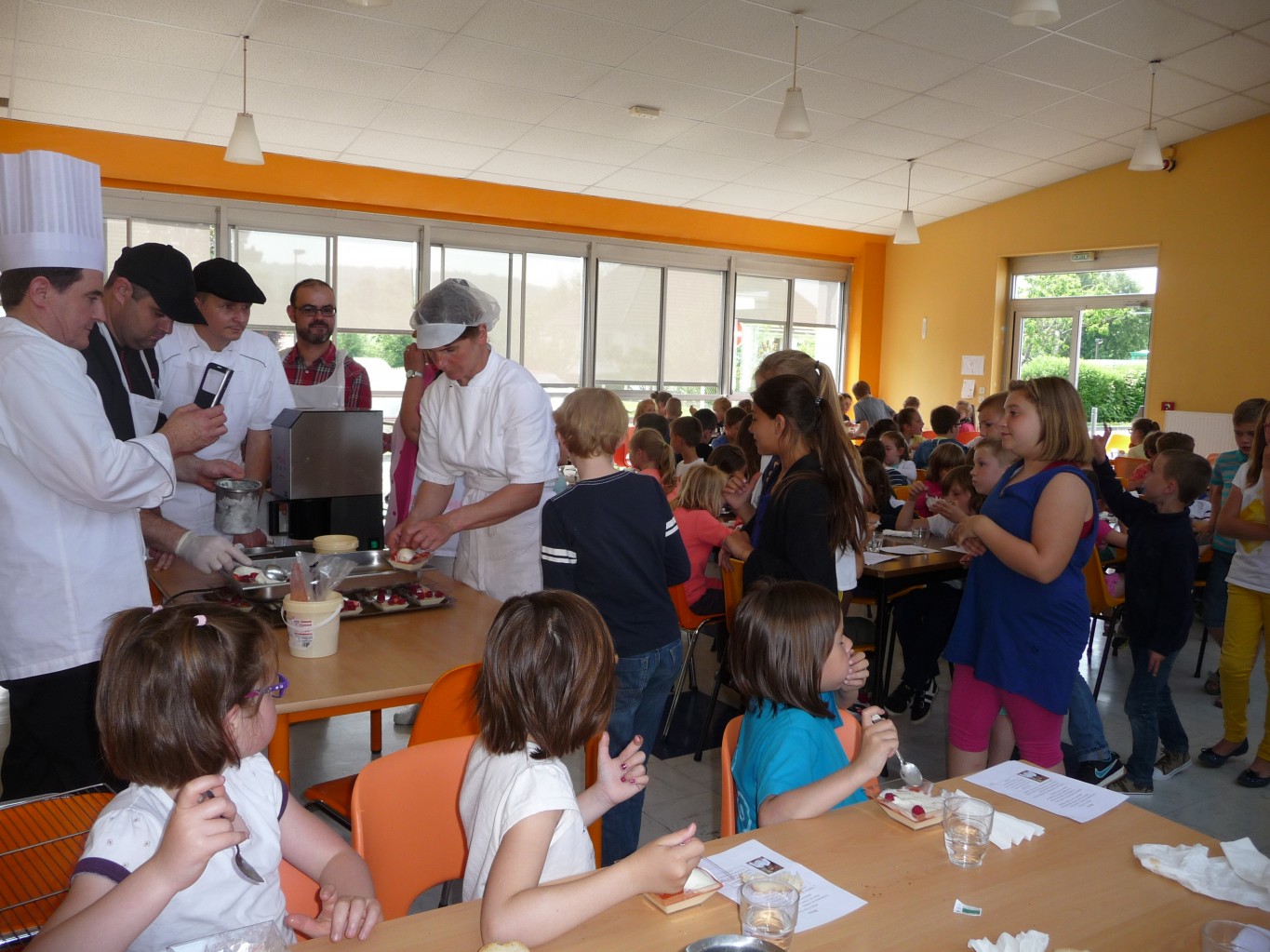 Notre chef étoilé est ravi de transmettre son savoir-faire et de constater que nos écoliers ont apprécié ce délicieux repas.