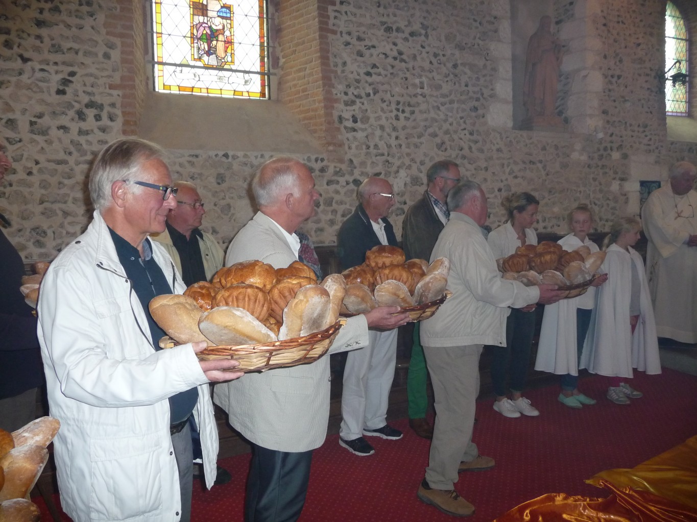 Après la cérémonie, au cours de laquelle l’assistance a pu apprécié la très belle homélie du Père de la Tousche, le pain bénit a été remis aux nombreux paroissiens à la fin de la messe et beaucoup d’entre eux ont ensuite partagé un apéritif dînatoire. De l’avis unanime, une très belle messe et un beau moment de partage.