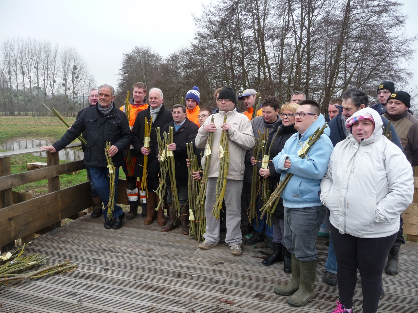 Les adultes en situation d’handicap du parc Weber sous la responsabilité de Mr Patrick Garçonnet ont préparé 23 variétés de saules de formes et couleurs différentes; ils sont venus accompagner les techniciens du bassin versant pour effectuer cette plantation le 9 Février 2017.