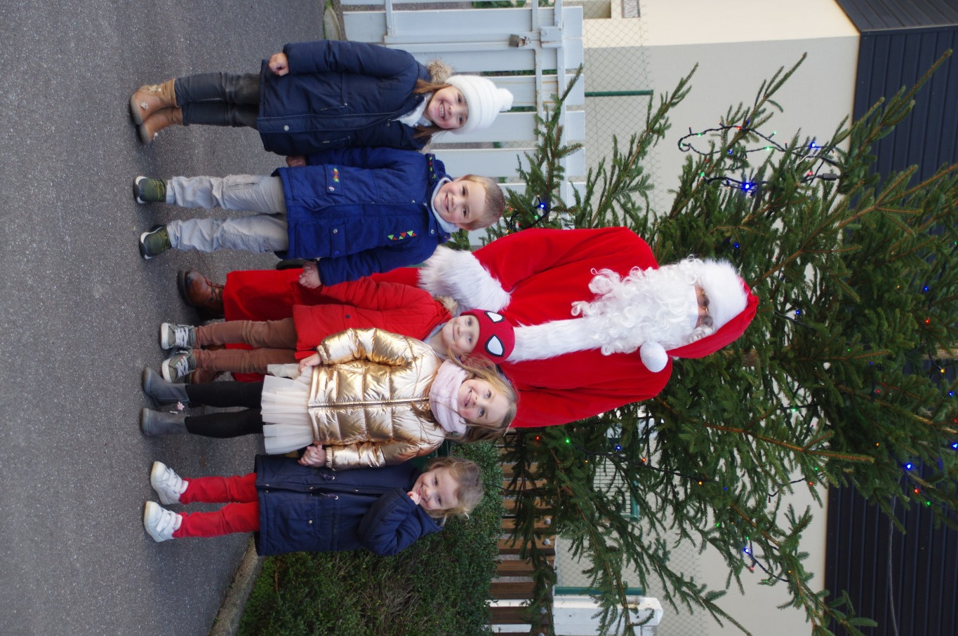 Enfin, les parents étaient invités en fin d’après-midi pour faire de belles photos de leurs bambins avec le Père Noël à l’extérieur devant le sapin installé dans la cour de récréation.