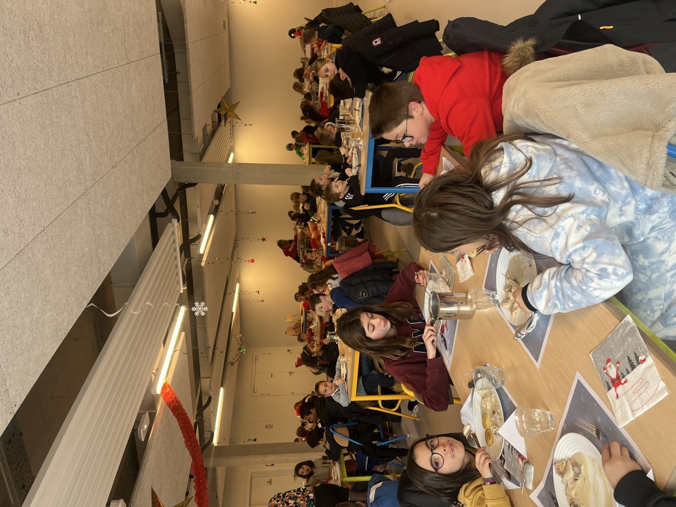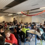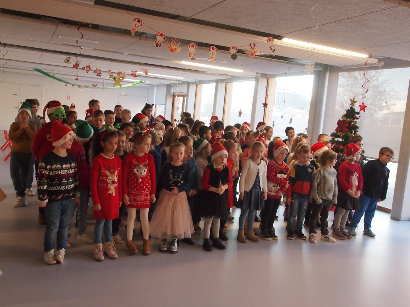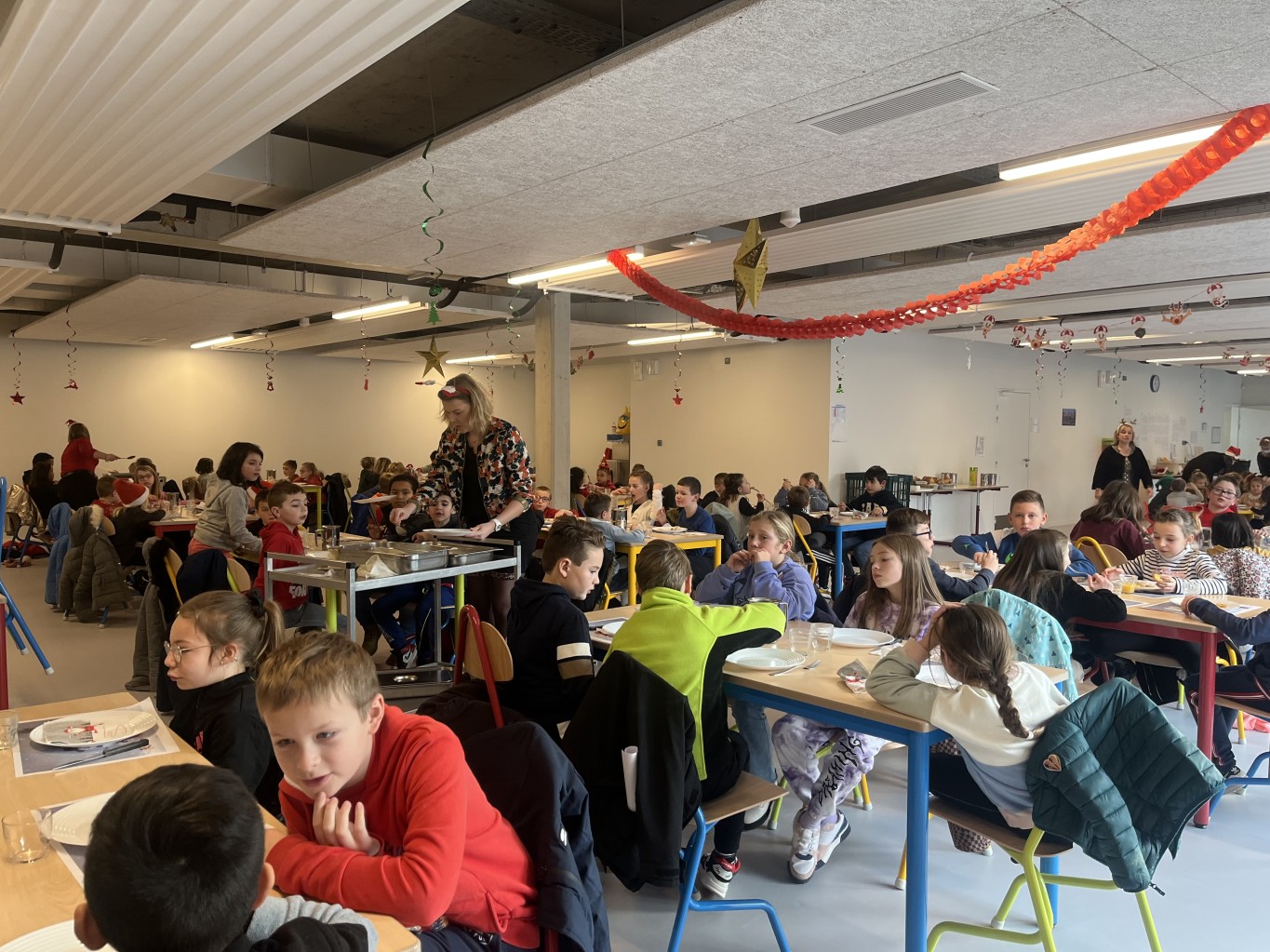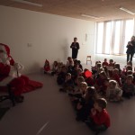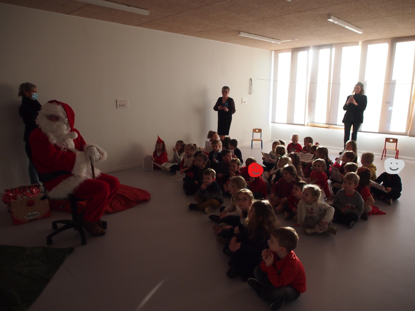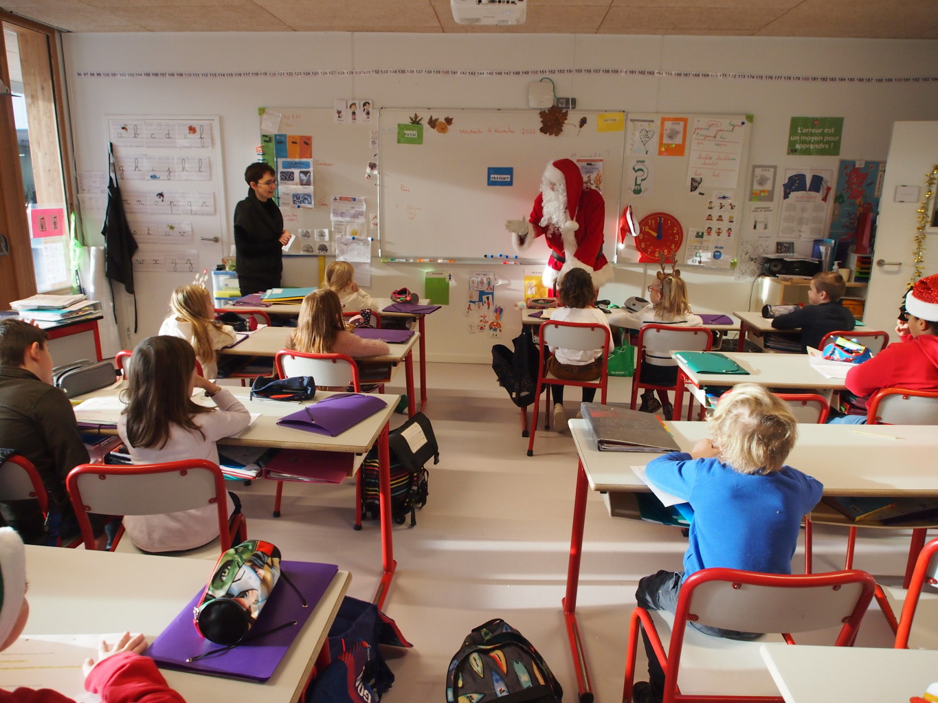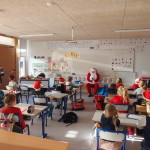 Après avoir dégusté le repas de Noël préparé par Nathalie le jeudi 16 décembre, les élèves du groupe scolaire ont dû patienter jusqu’au lendemain pour recevoir la visite du Père Noël. Ce sont les élèves du primaire qui ont eu la chance de l’accueillir les premiers, en effet, il leur a rendu visite le matin. Après avoir écouté quelques chants de Noël, il s’est déplacé dans les classes afin de remettre à chaque enfant des livres et des chocolats. Le Père Noël n’a pas oublié les élèves de maternelle puisqu’il est venu les voir dans l’après-midi. Après avoir écouté les chants interprétés par les enfants, la traditionnelle remise des cadeaux a pu avoir lieu.
