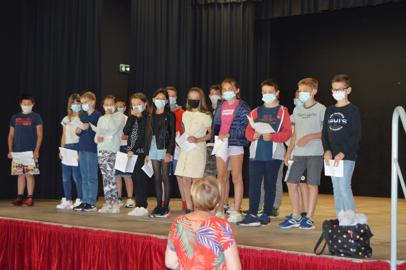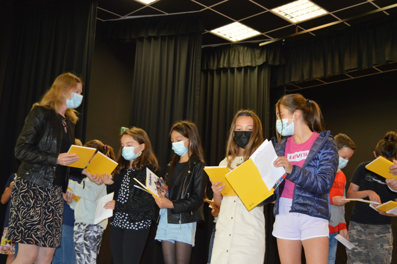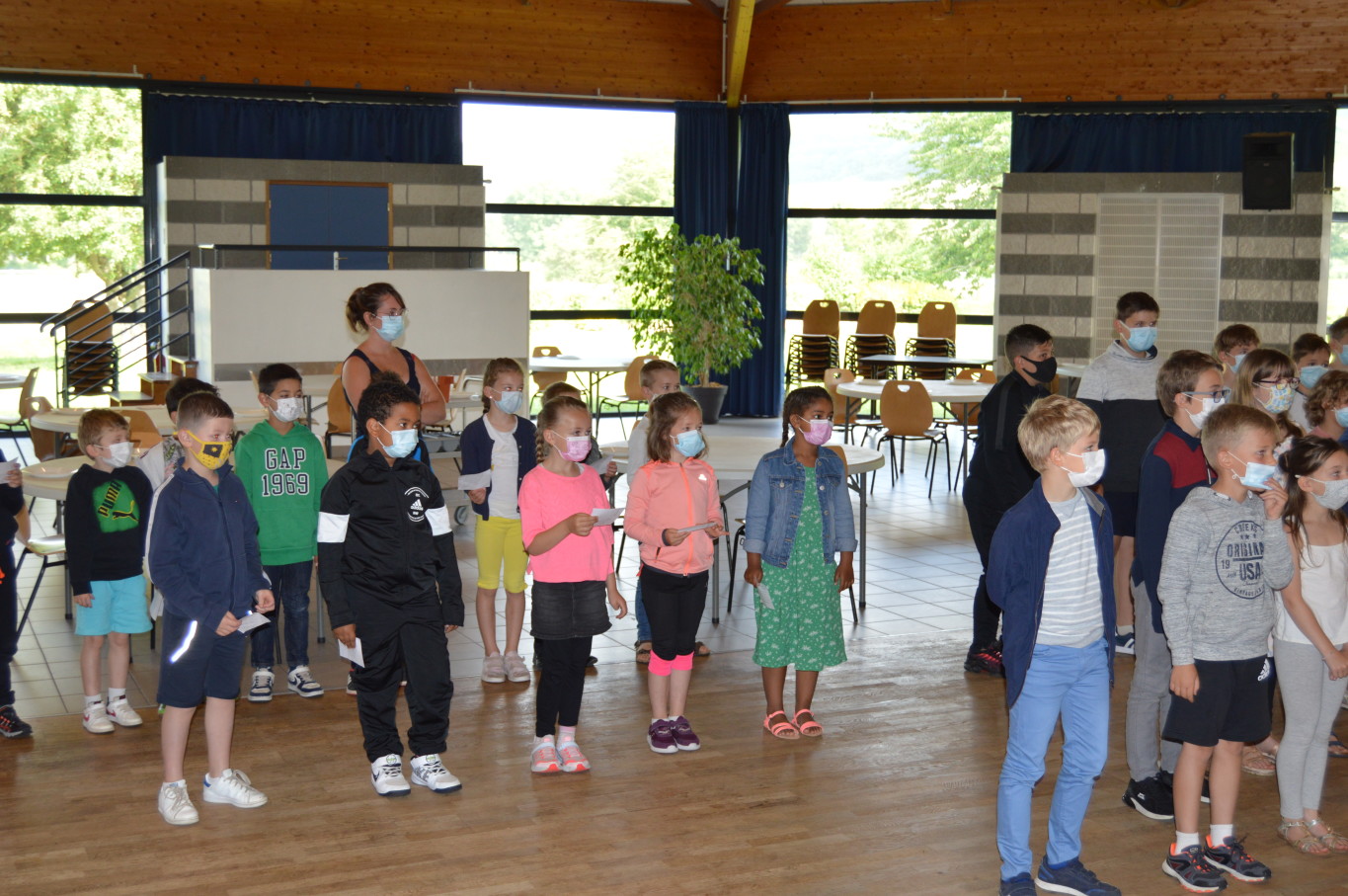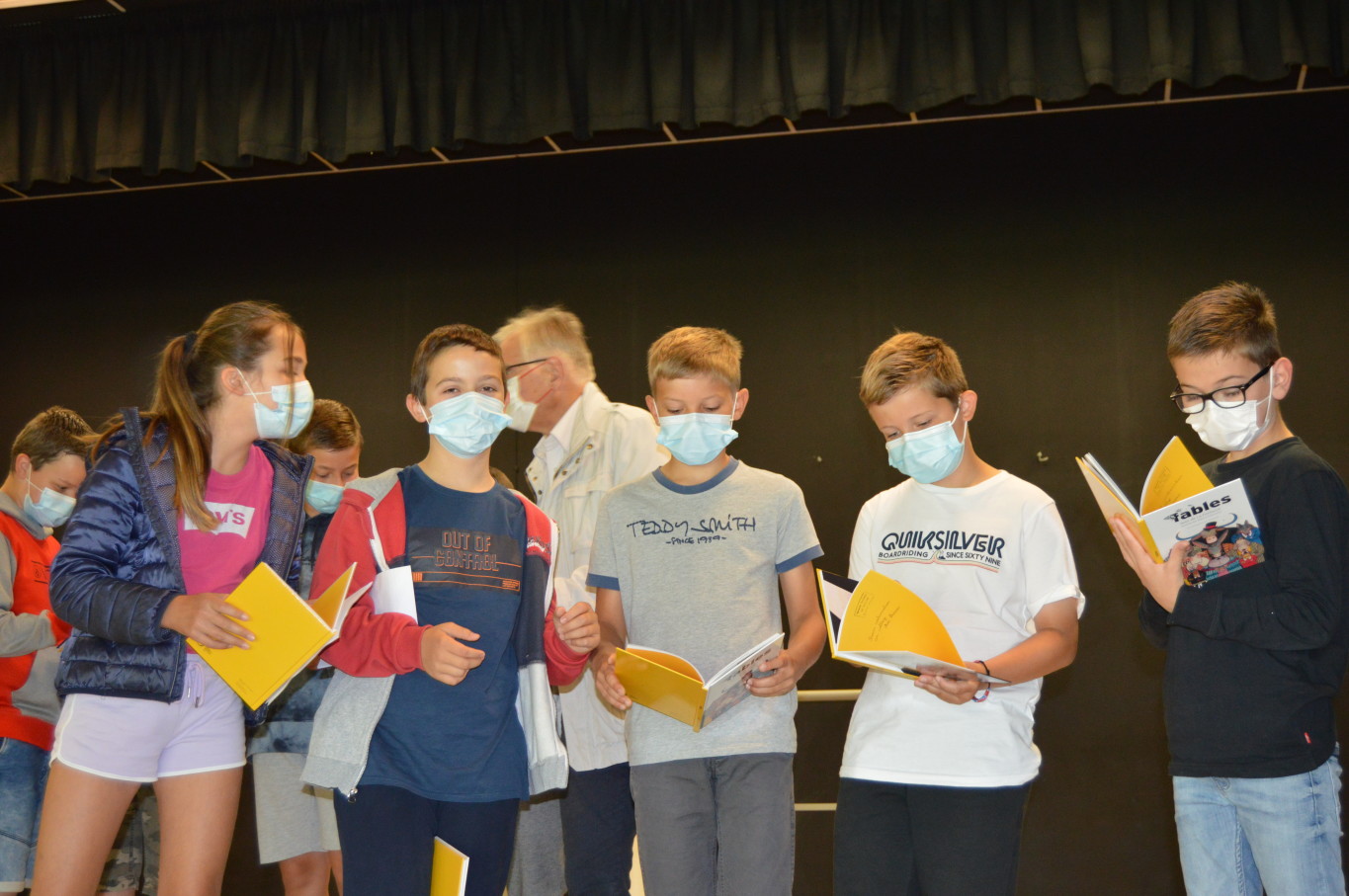 Ce vendredi 2 juillet était un jour un peu spécial pour les élèves de CM2 puisqu’ils vont quitter définitivement l’école élémentaire pour rejoindre en septembre le collège. A cette occasion, le livre des fables de la Fontaine leur a été remis par M. Maratrat, Mme Corroyer et Mme Guilbert respectivement adjointe et conseillère déléguée aux affaires scolaires. Ce n’est pas sans une pointe de nostalgie que les élèves de CM2 ont interprété un chant devant leurs camarades des autres classes. Pour leur rendre hommage, les élèves des autres classes ont à leur tour chanté.