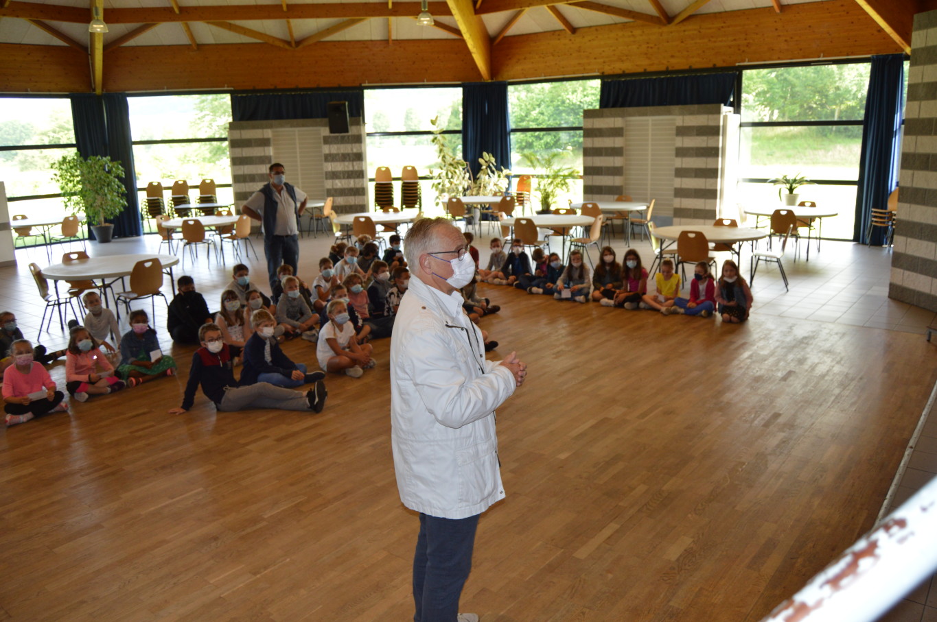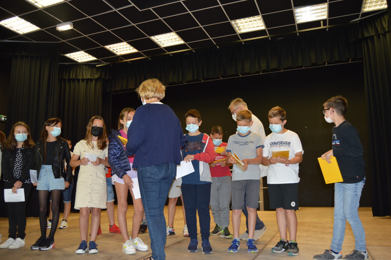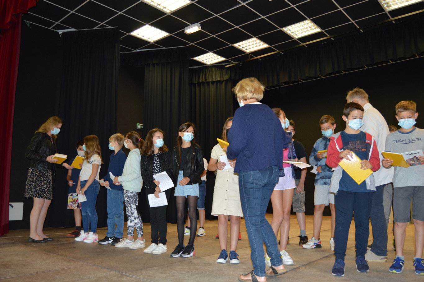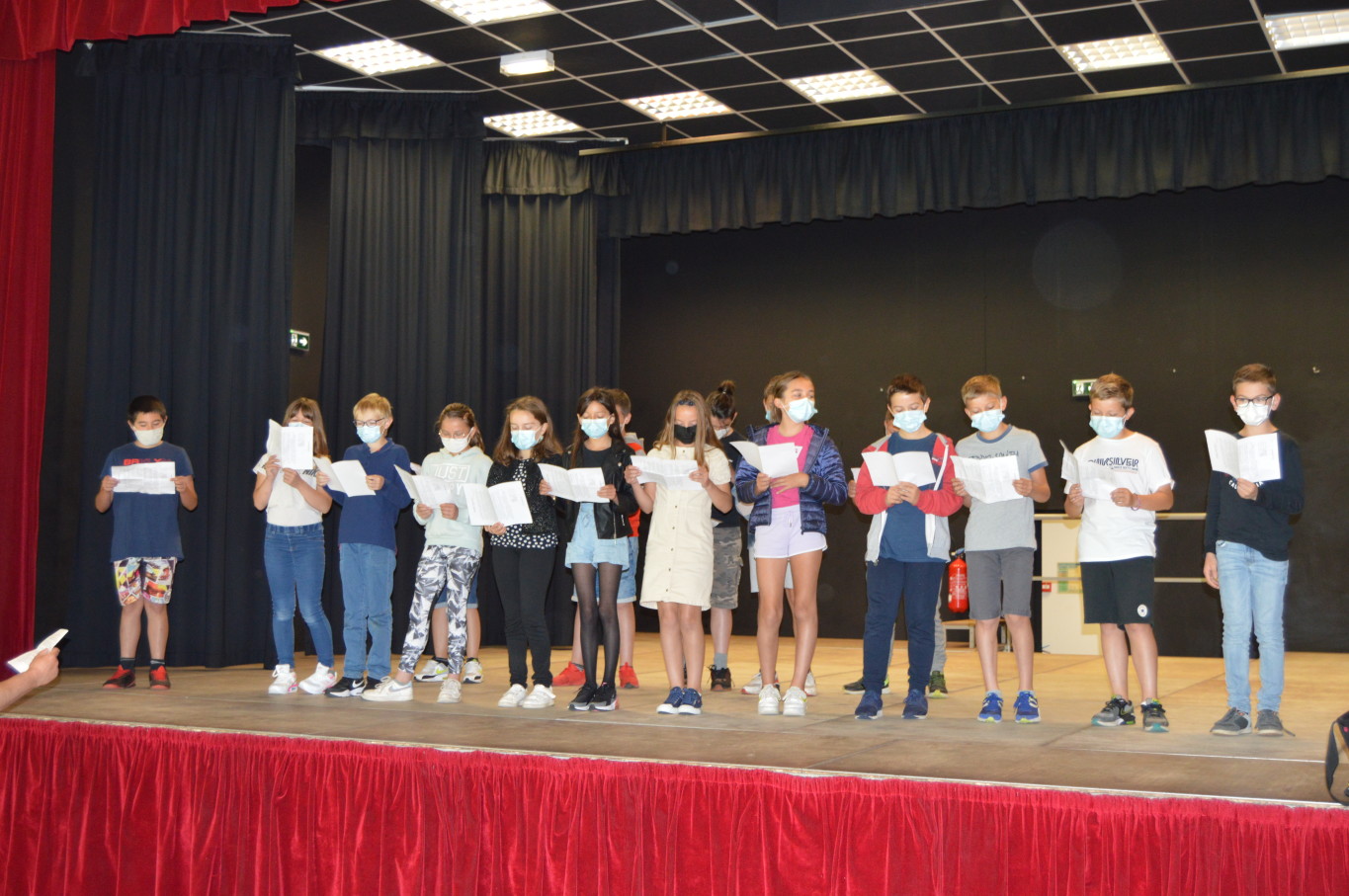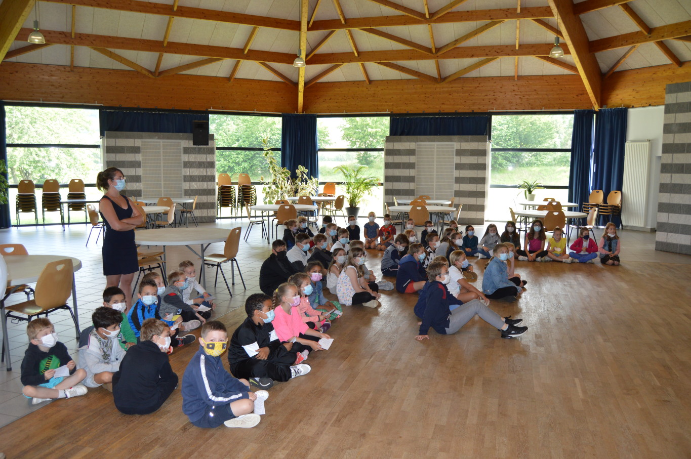 Ce vendredi 2 juillet était un jour un peu spécial pour les élèves de CM2 puisqu’ils vont quitter définitivement l’école élémentaire pour rejoindre en septembre le collège. A cette occasion, le livre des fables de la Fontaine leur a été remis par M. Maratrat, Mme Corroyer et Mme Guilbert respectivement adjointe et conseillère déléguée aux affaires scolaires. Ce n’est pas sans une pointe de nostalgie que les élèves de CM2 ont interprété un chant devant leurs camarades des autres classes. Pour leur rendre hommage, les élèves des autres classes ont à leur tour chanté.