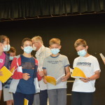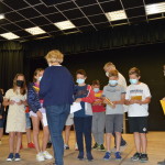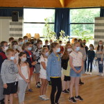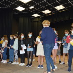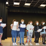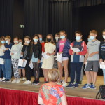 Ce vendredi 2 juillet était un jour un peu spécial pour les élèves de CM2 puisqu’ils vont quitter définitivement l’école élémentaire pour rejoindre en septembre le collège. A cette occasion, le livre des fables de la Fontaine leur a été remis par M. Maratrat, Mme Corroyer et Mme Guilbert respectivement adjointe et conseillère déléguée aux affaires scolaires. Ce n’est pas sans une pointe de nostalgie que les élèves de CM2 ont interprété un chant devant leurs camarades des autres classes. Pour leur rendre hommage, les élèves des autres classes ont à leur tour chanté.