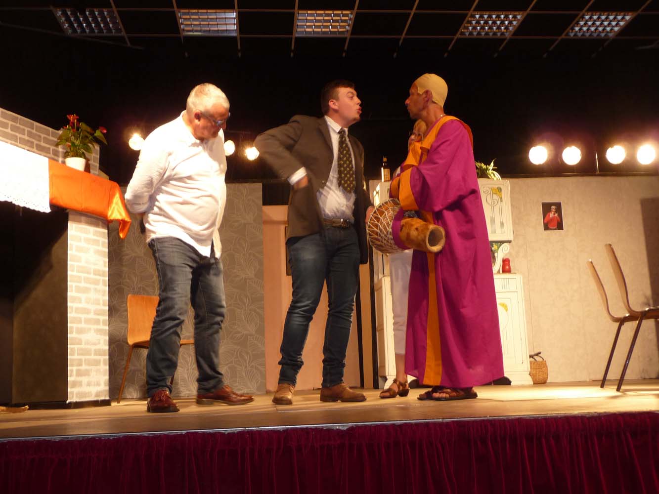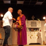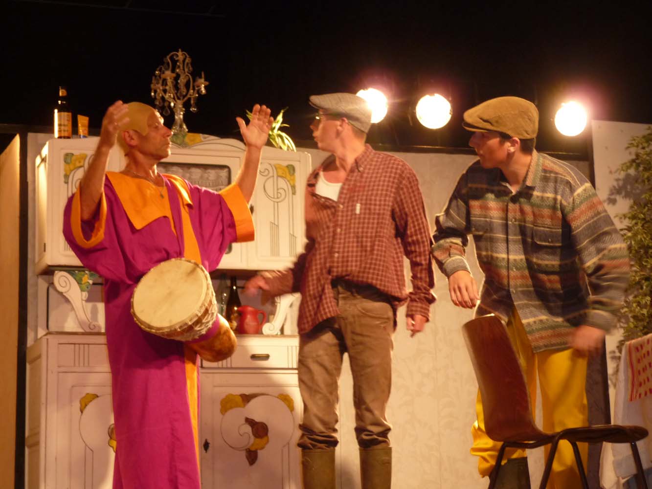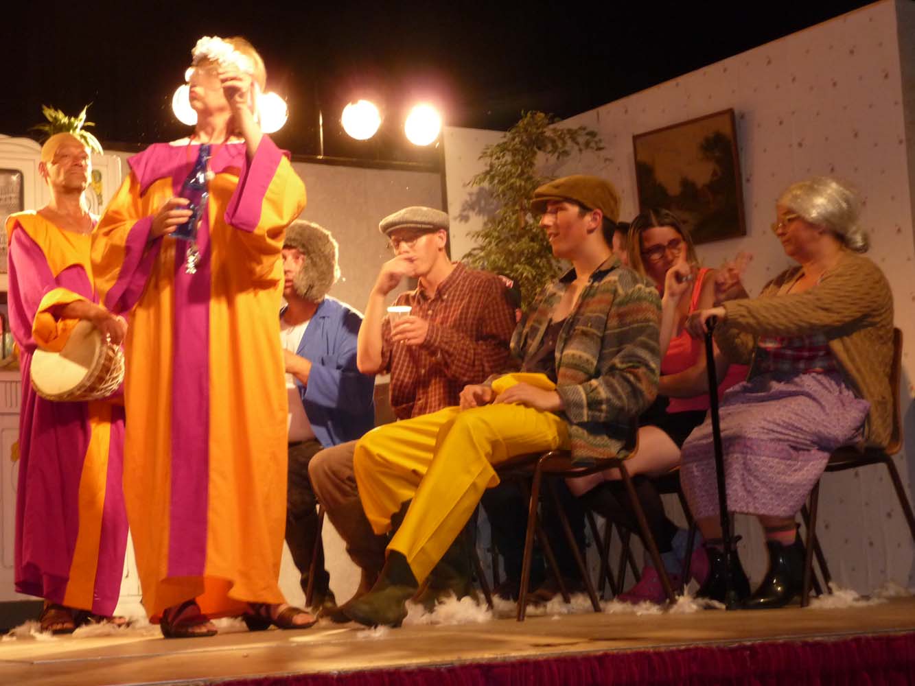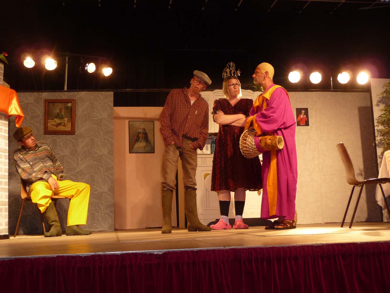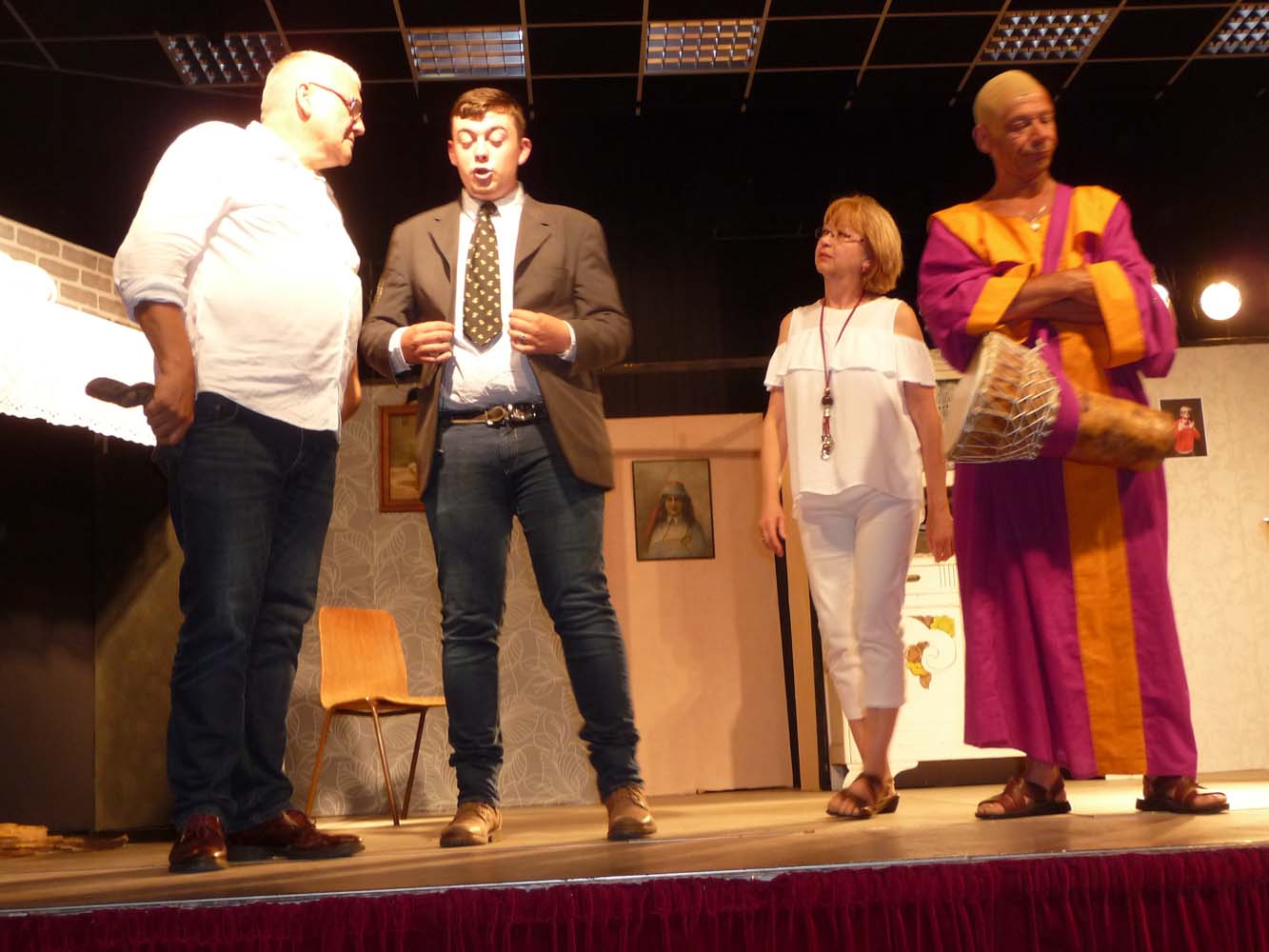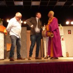 Avec près de 200 personnes présentes, Bruno Scrève et ses acolytes ont rapidement transporté l’audience en parodiant de façon ubuesque quelques franges de notre société : les préoccupations décalées de la paysannerie profonde, l’imposture et l’opportunisme des sectes, et l’absence de personnalité des sosies.