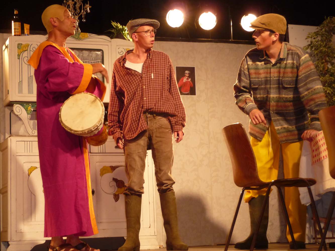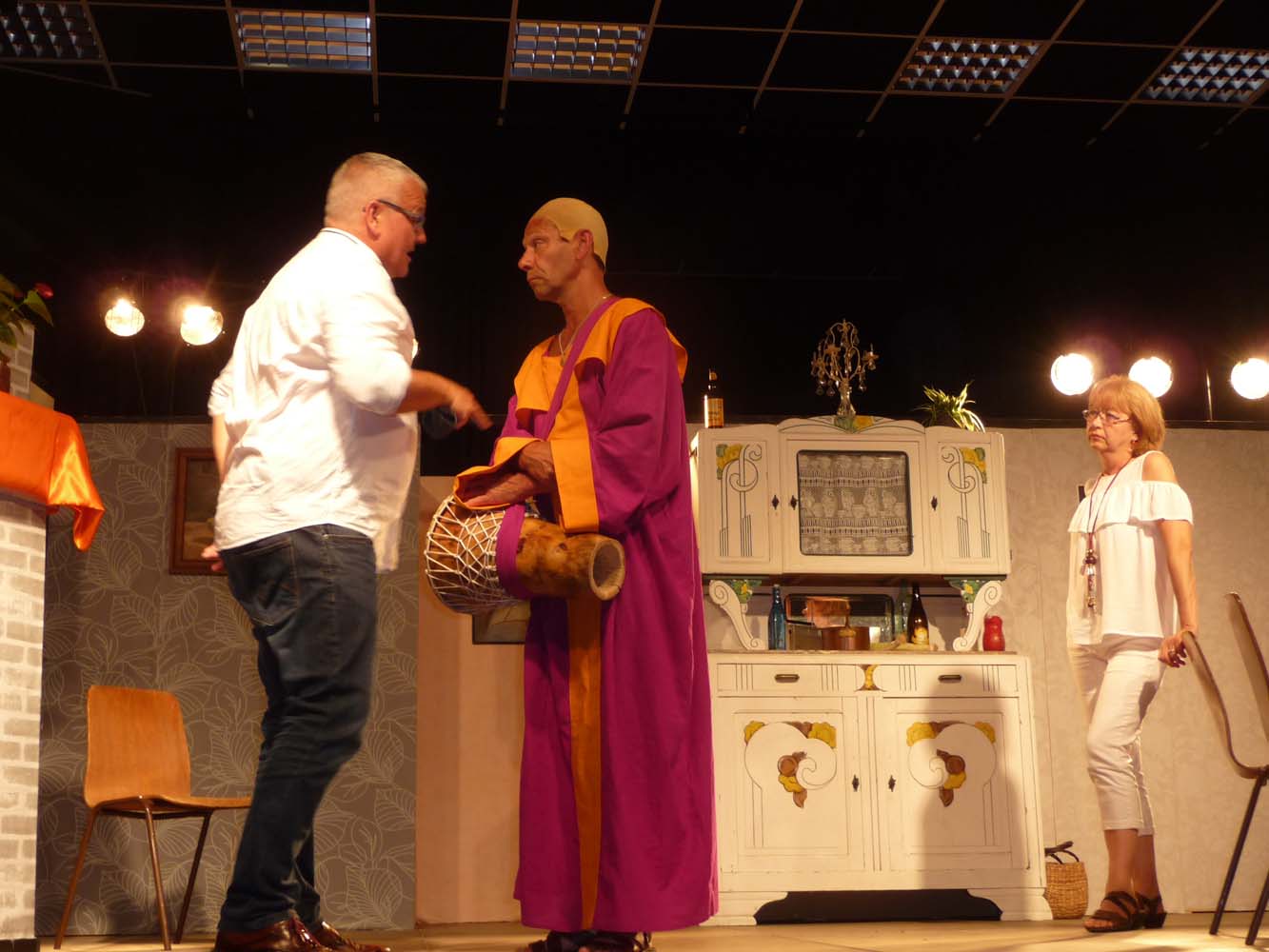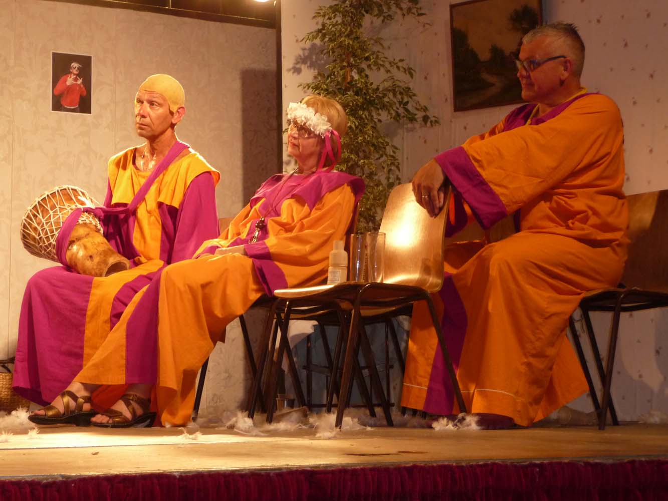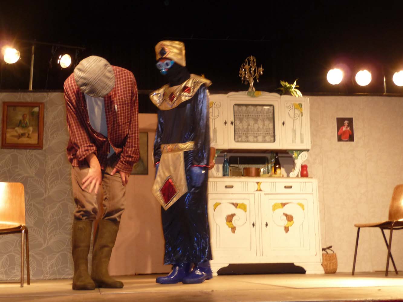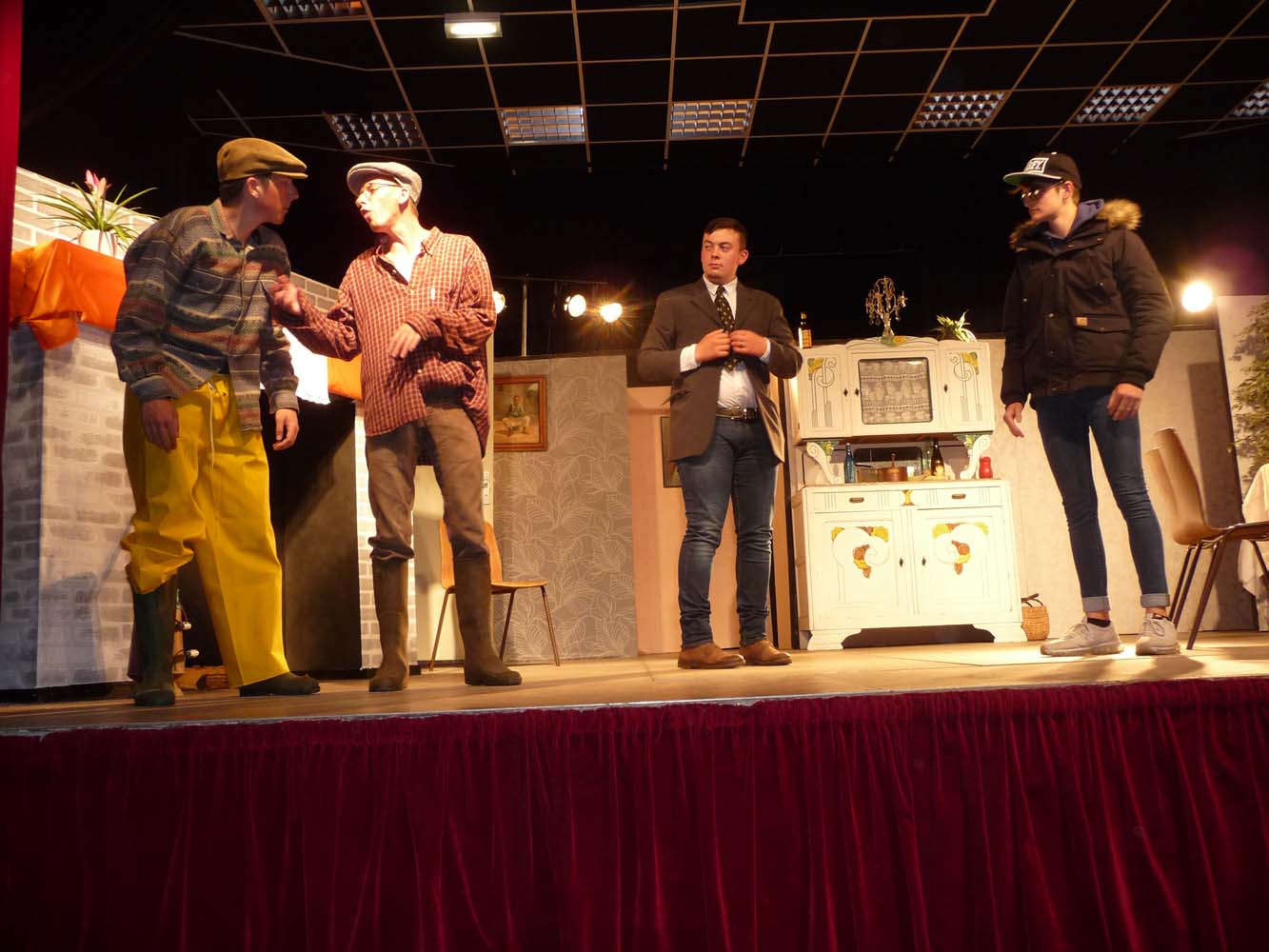 Avec près de 200 personnes présentes, Bruno Scrève et ses acolytes ont rapidement transporté l’audience en parodiant de façon ubuesque quelques franges de notre société : les préoccupations décalées de la paysannerie profonde, l’imposture et l’opportunisme des sectes, et l’absence de personnalité des sosies.