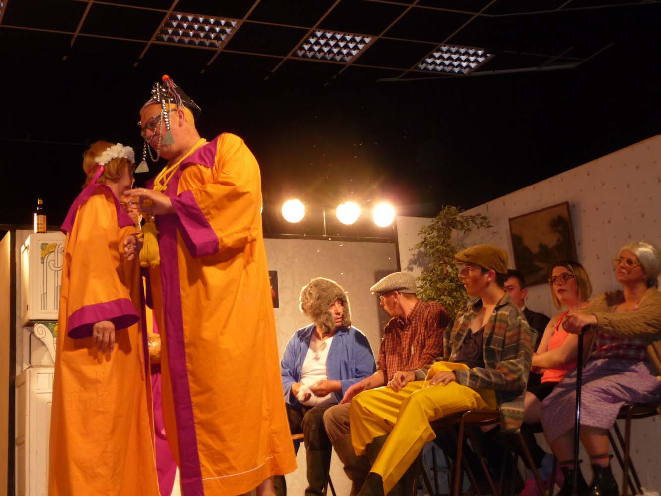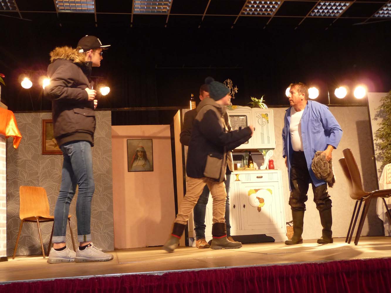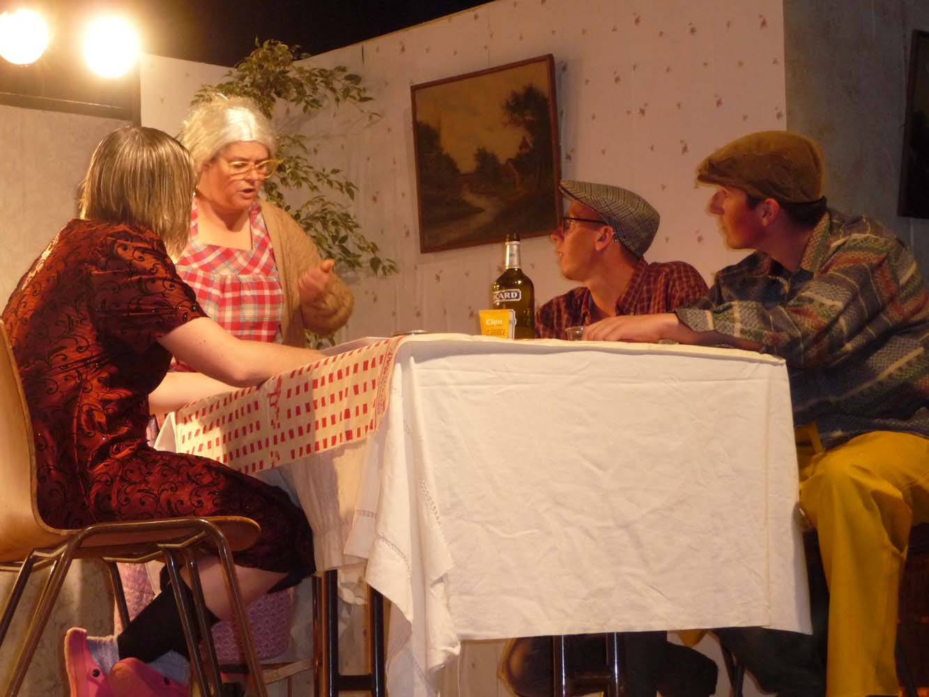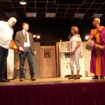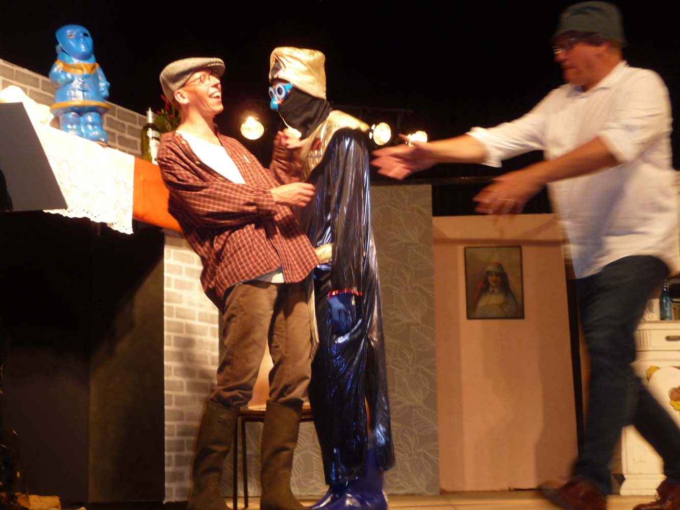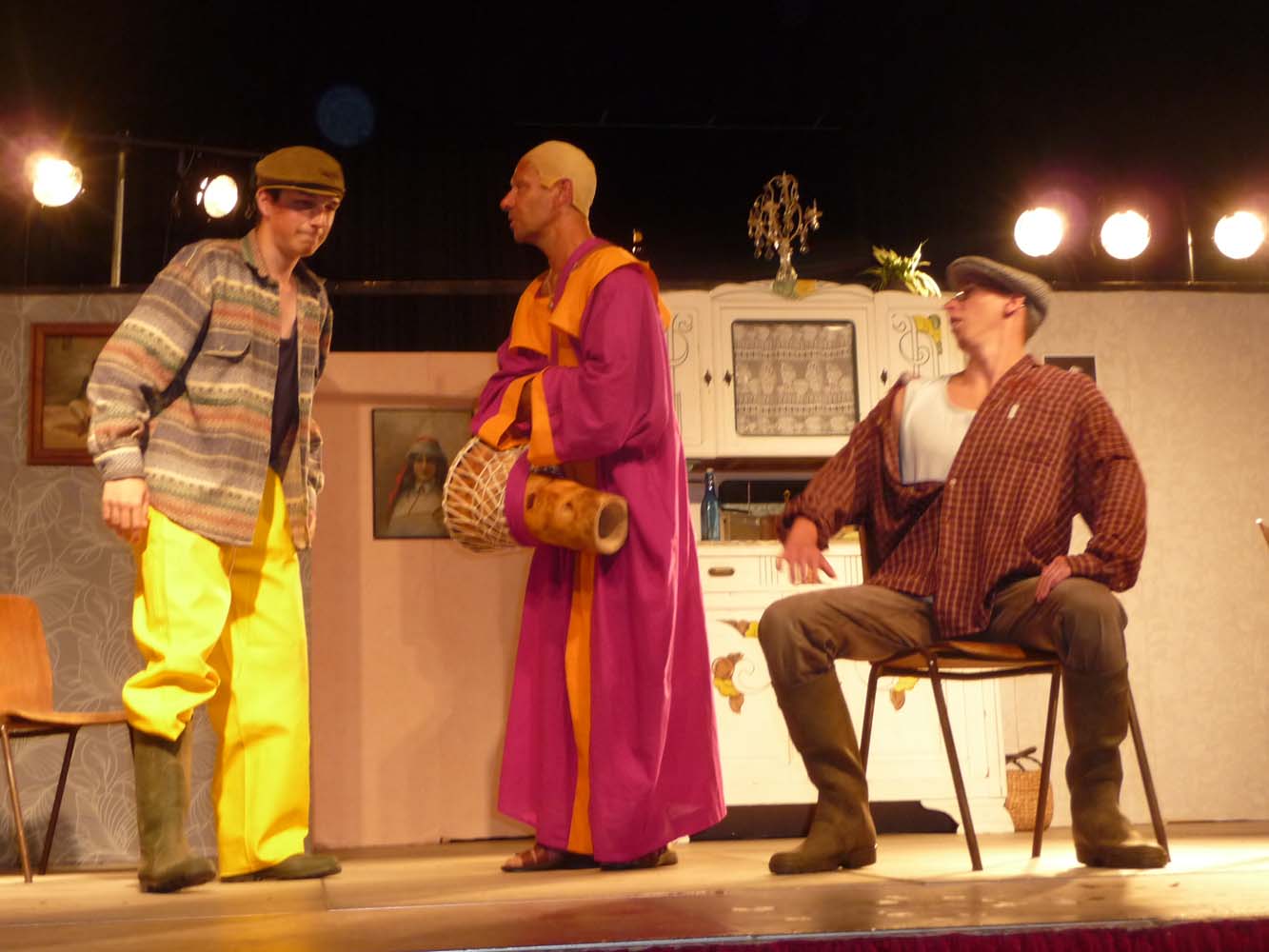 Avec près de 200 personnes présentes, Bruno Scrève et ses acolytes ont rapidement transporté l’audience en parodiant de façon ubuesque quelques franges de notre société : les préoccupations décalées de la paysannerie profonde, l’imposture et l’opportunisme des sectes, et l’absence de personnalité des sosies.