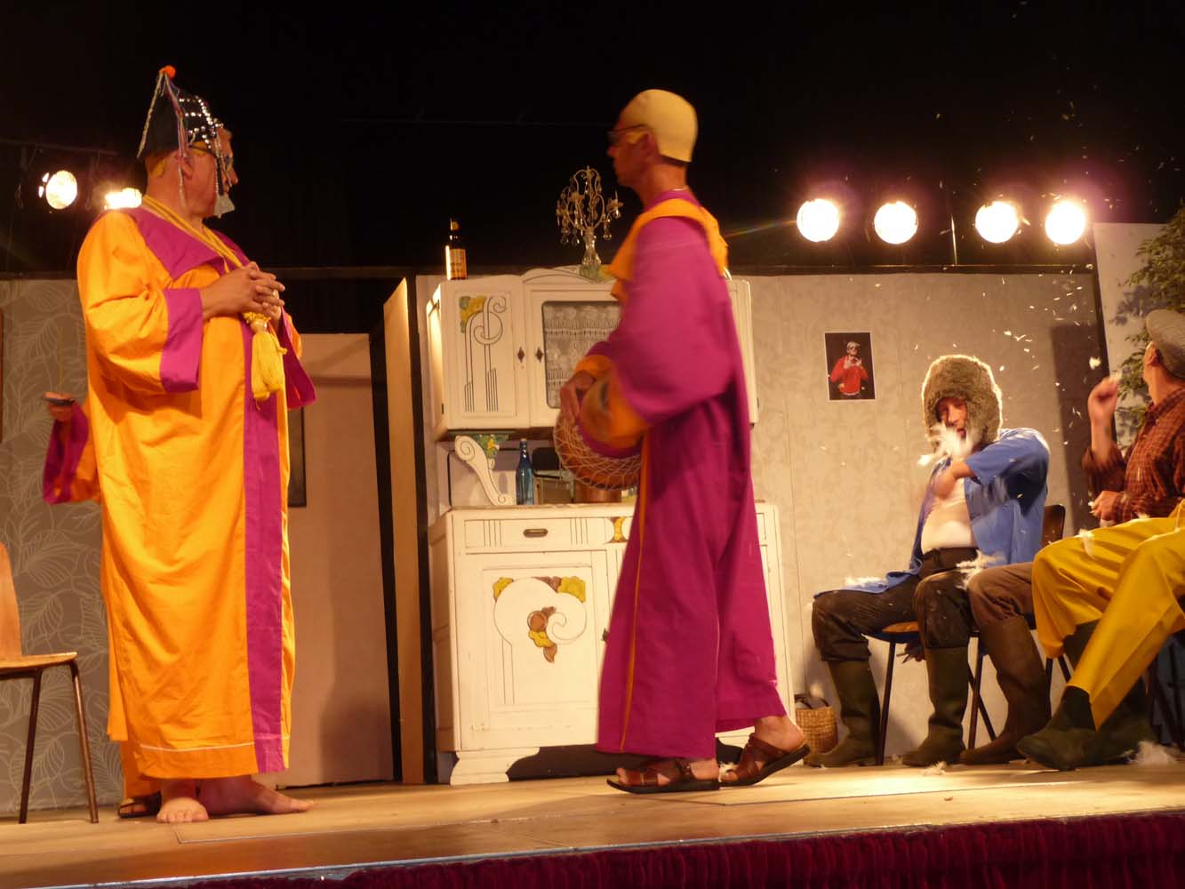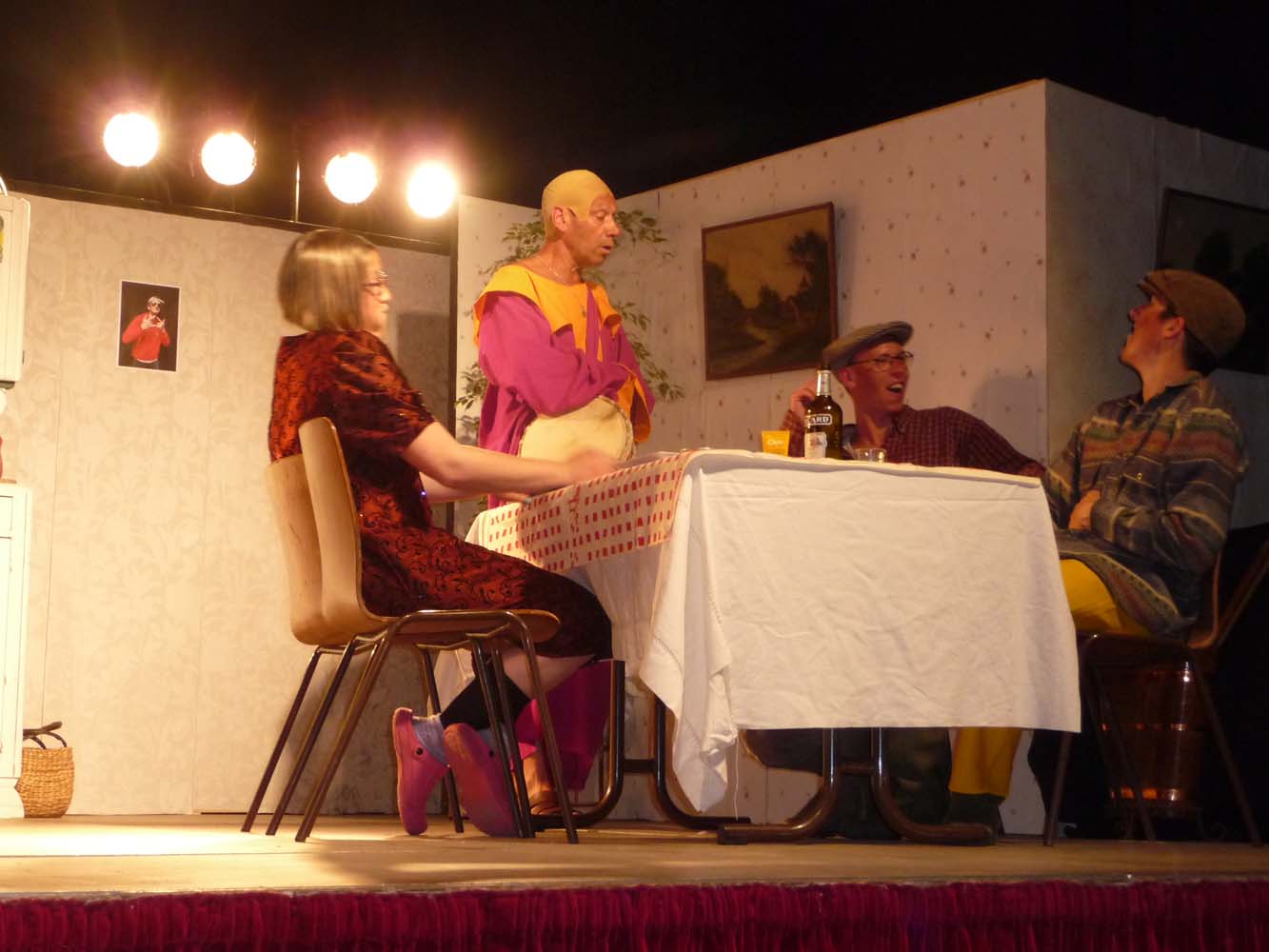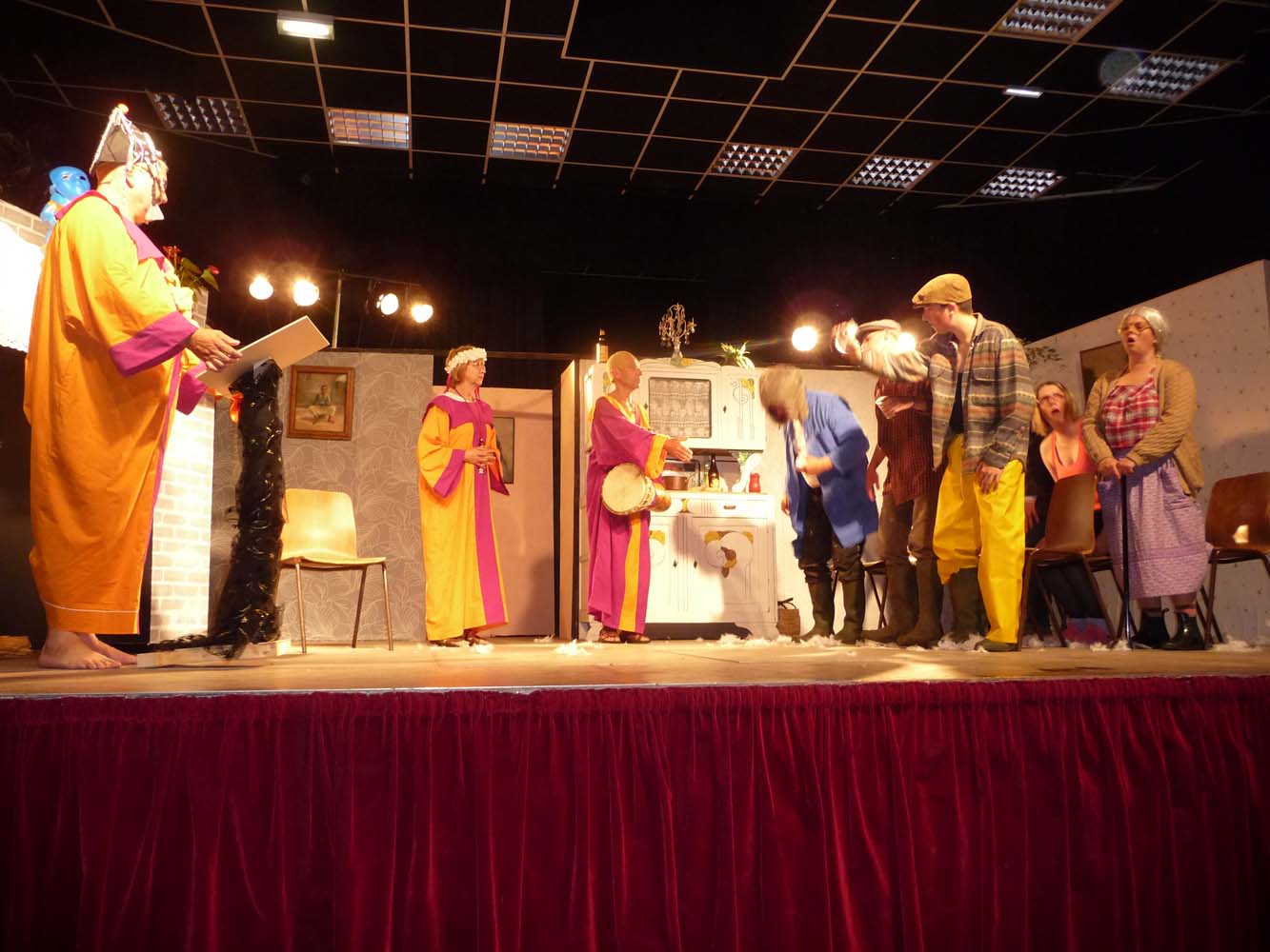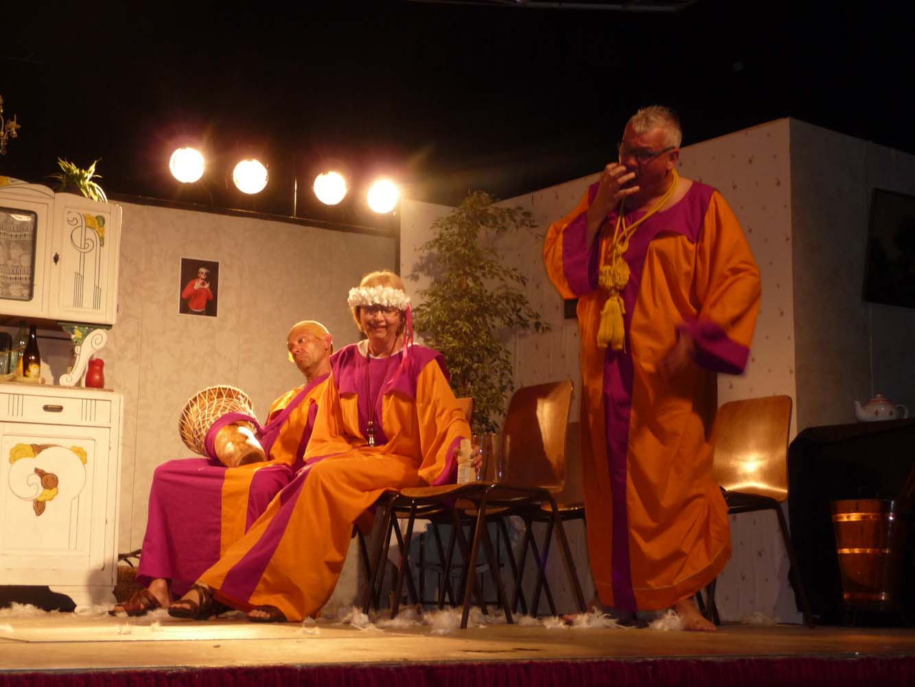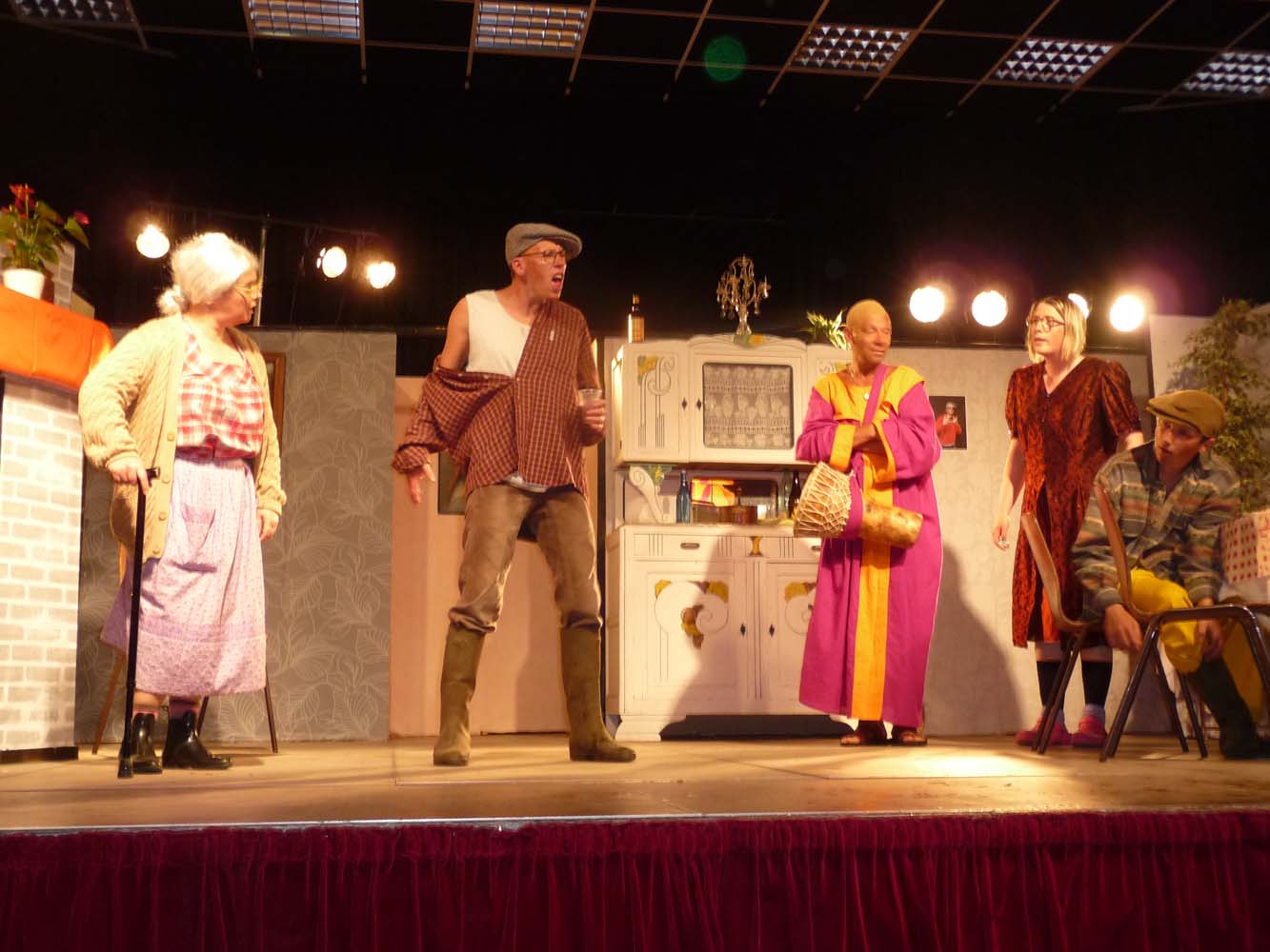 Avec près de 200 personnes présentes, Bruno Scrève et ses acolytes ont rapidement transporté l’audience en parodiant de façon ubuesque quelques franges de notre société : les préoccupations décalées de la paysannerie profonde, l’imposture et l’opportunisme des sectes, et l’absence de personnalité des sosies.