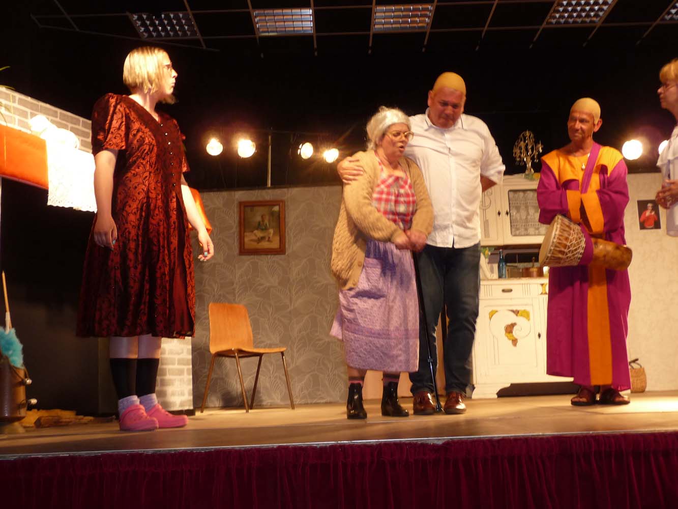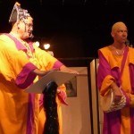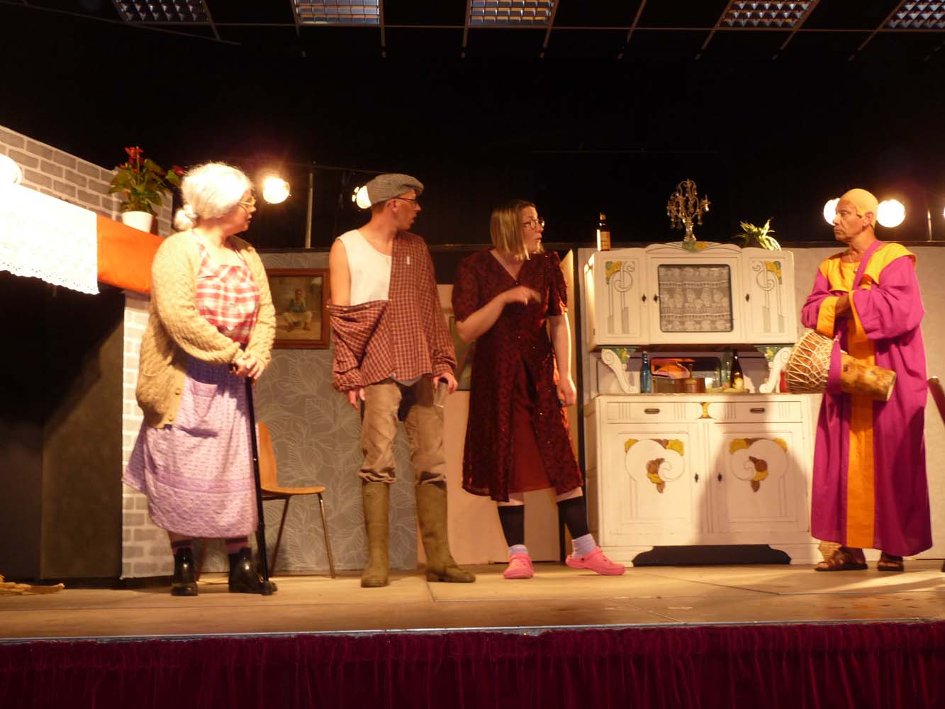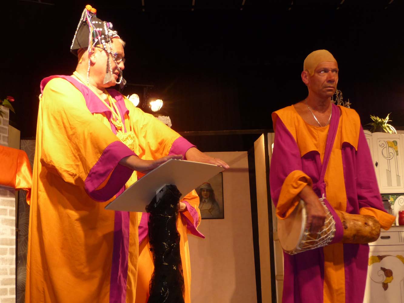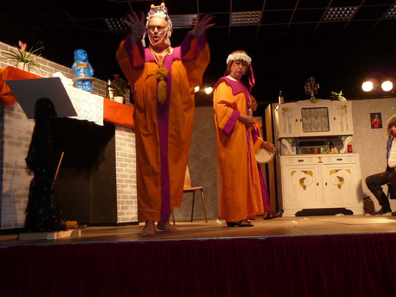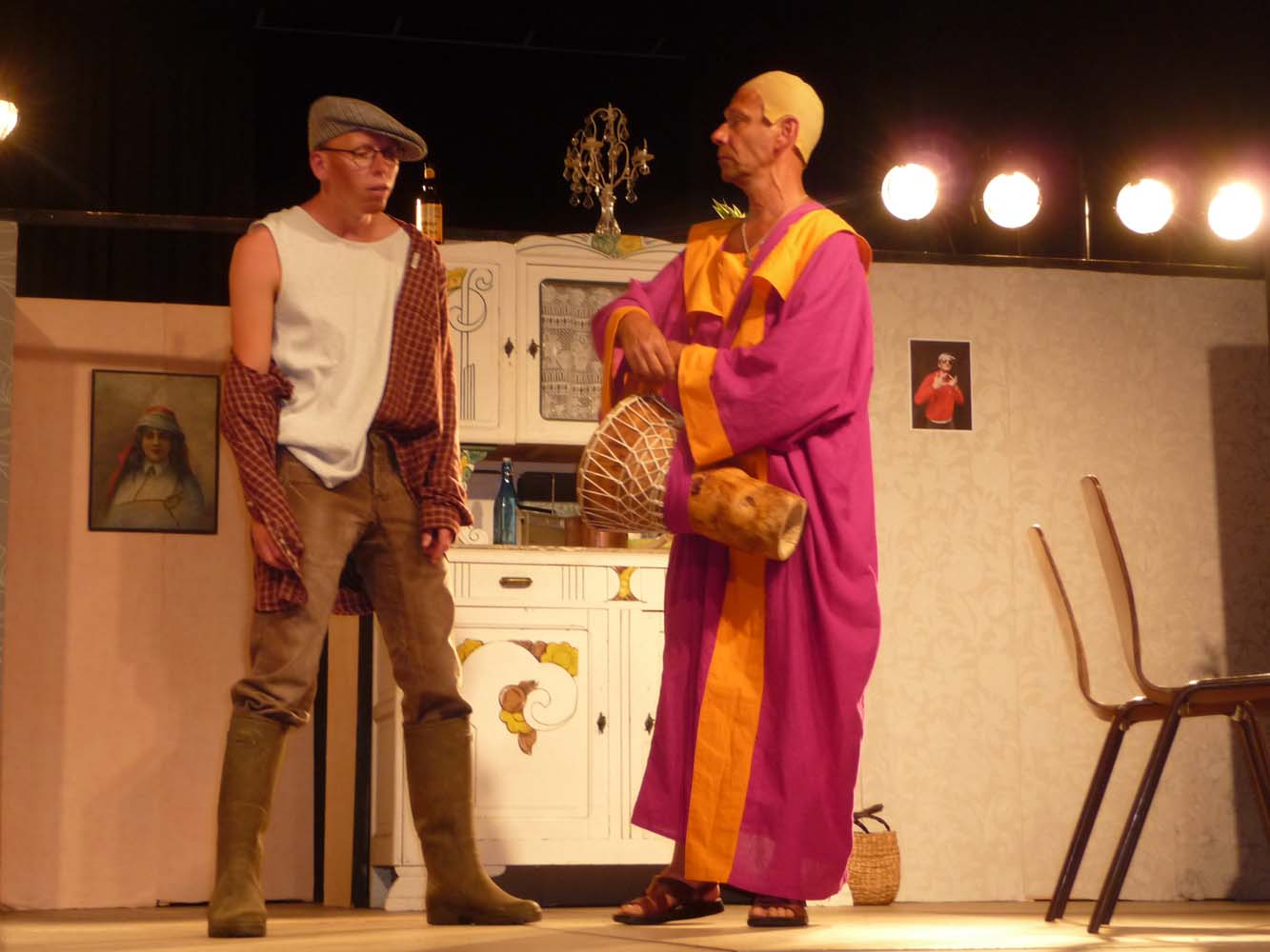 Avec près de 200 personnes présentes, Bruno Scrève et ses acolytes ont rapidement transporté l’audience en parodiant de façon ubuesque quelques franges de notre société : les préoccupations décalées de la paysannerie profonde, l’imposture et l’opportunisme des sectes, et l’absence de personnalité des sosies.