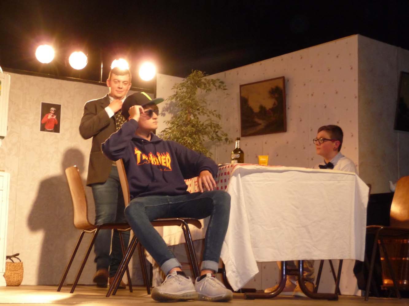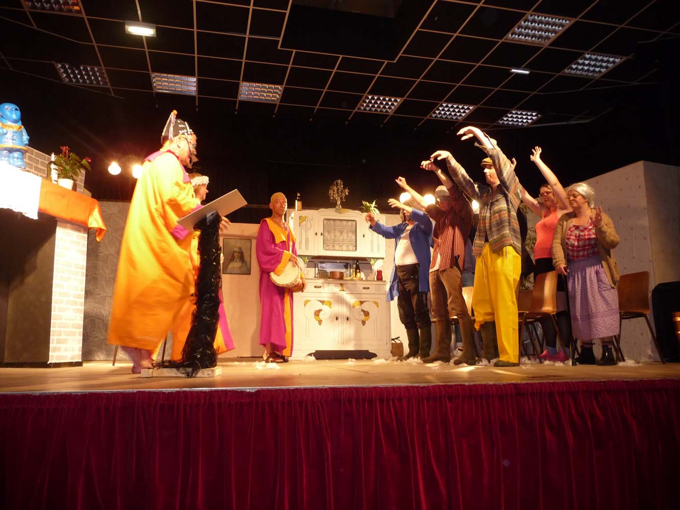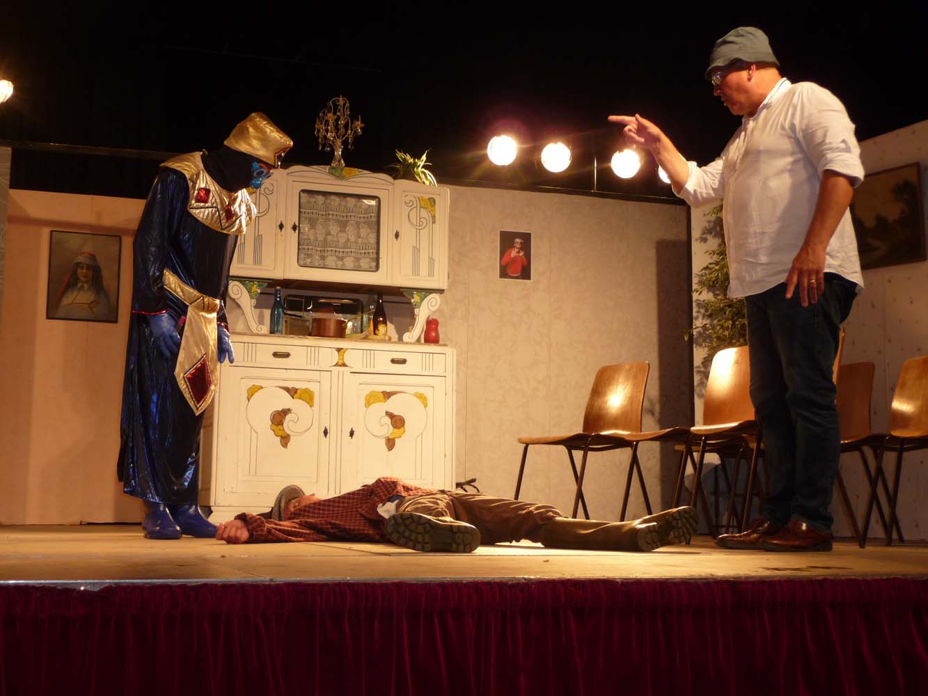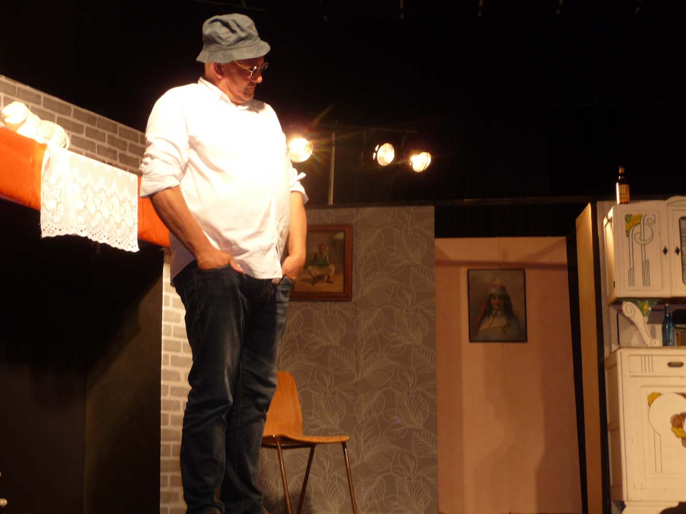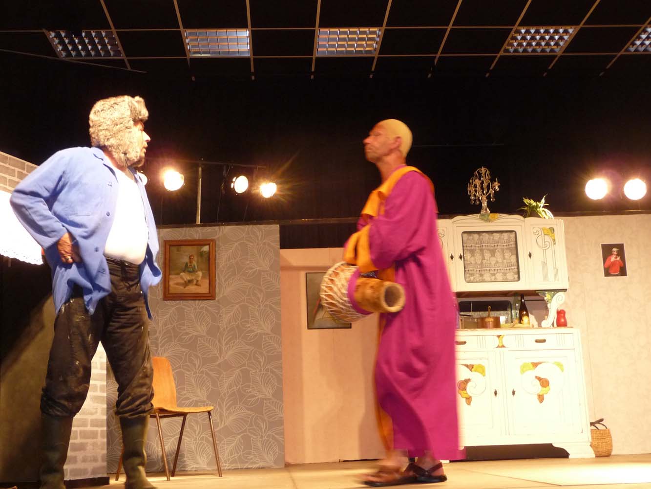 Avec près de 200 personnes présentes, Bruno Scrève et ses acolytes ont rapidement transporté l’audience en parodiant de façon ubuesque quelques franges de notre société : les préoccupations décalées de la paysannerie profonde, l’imposture et l’opportunisme des sectes, et l’absence de personnalité des sosies.
