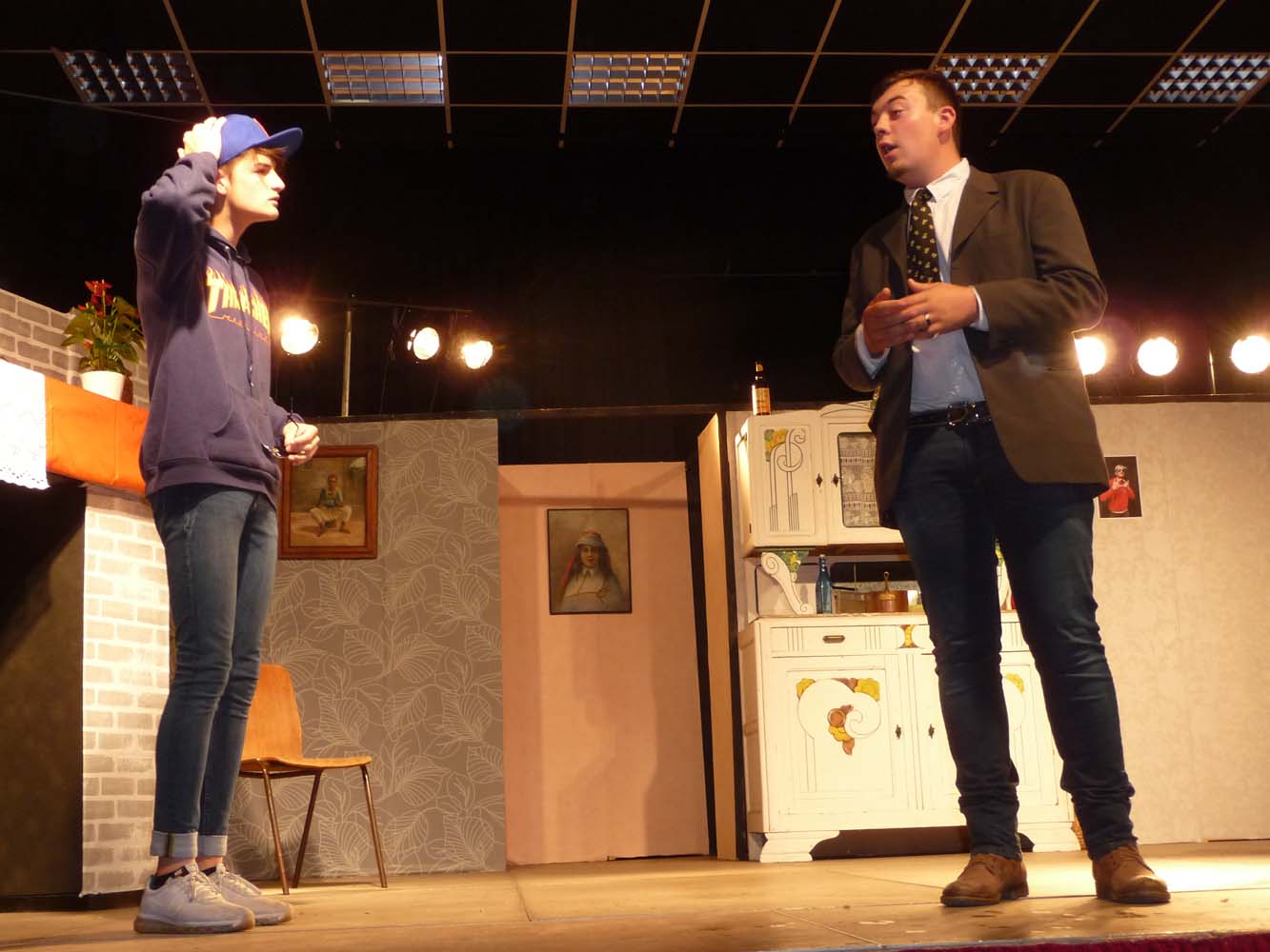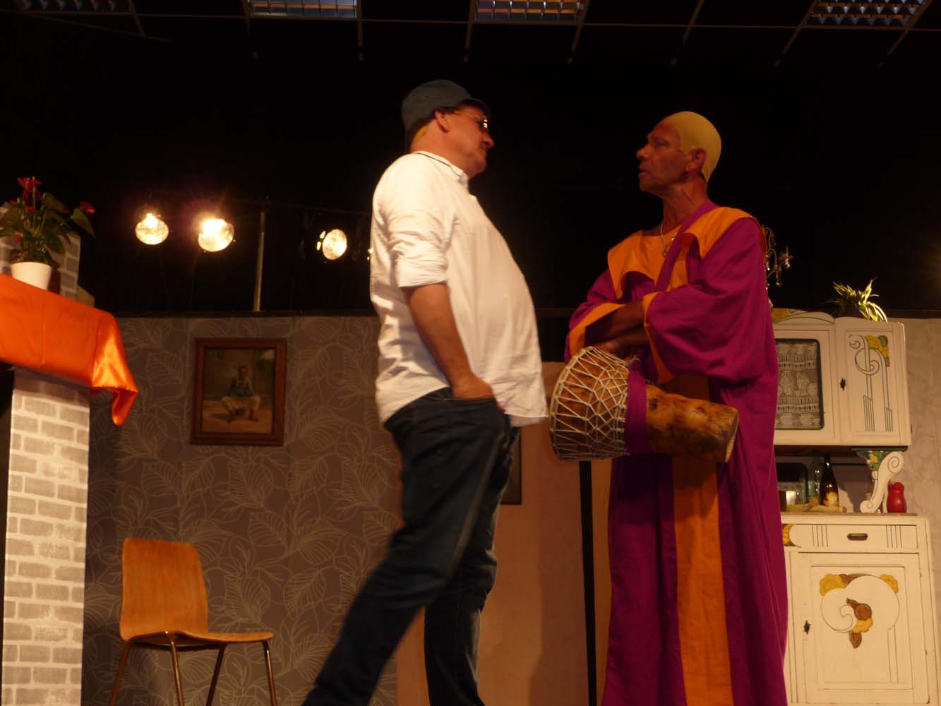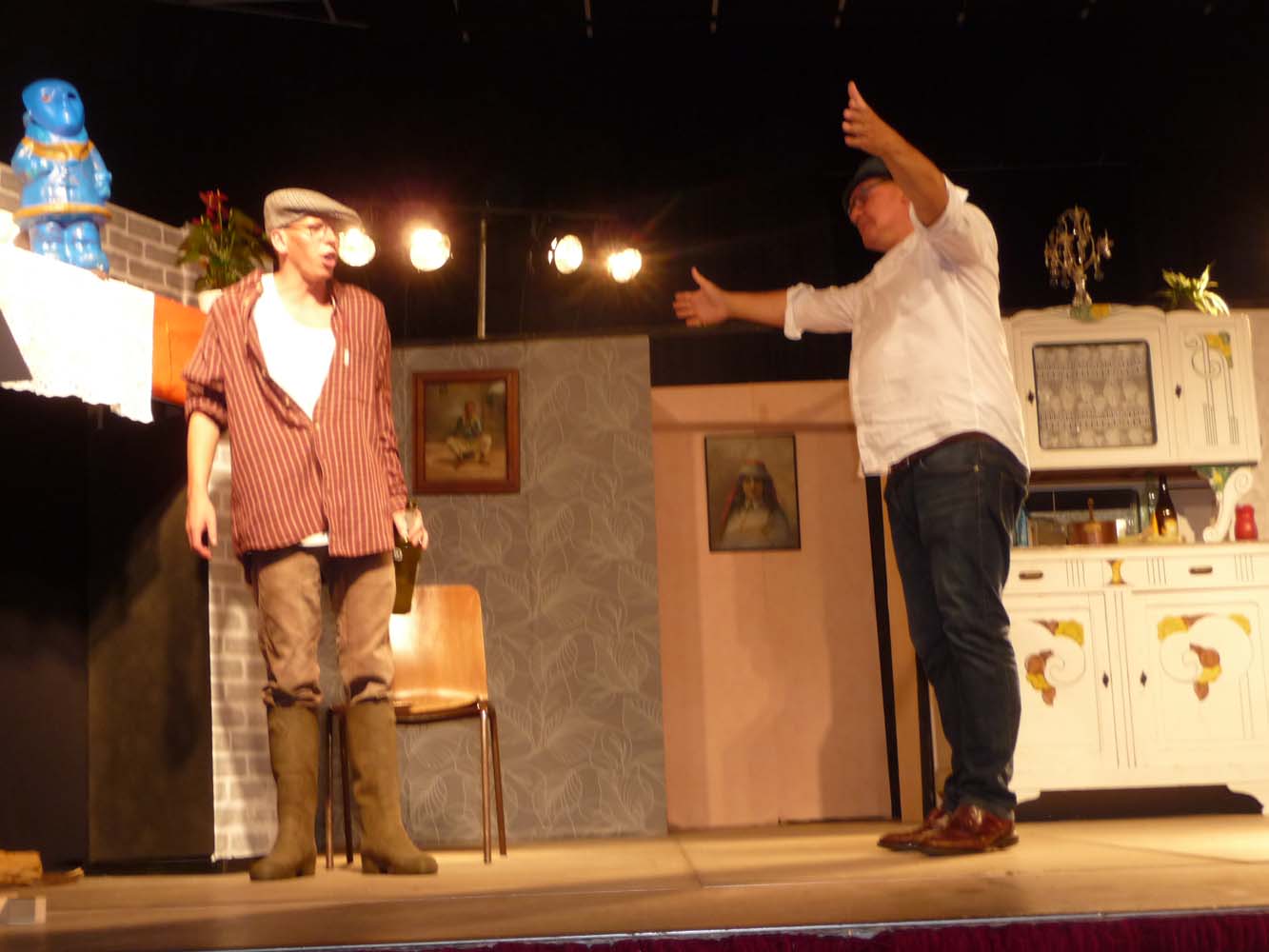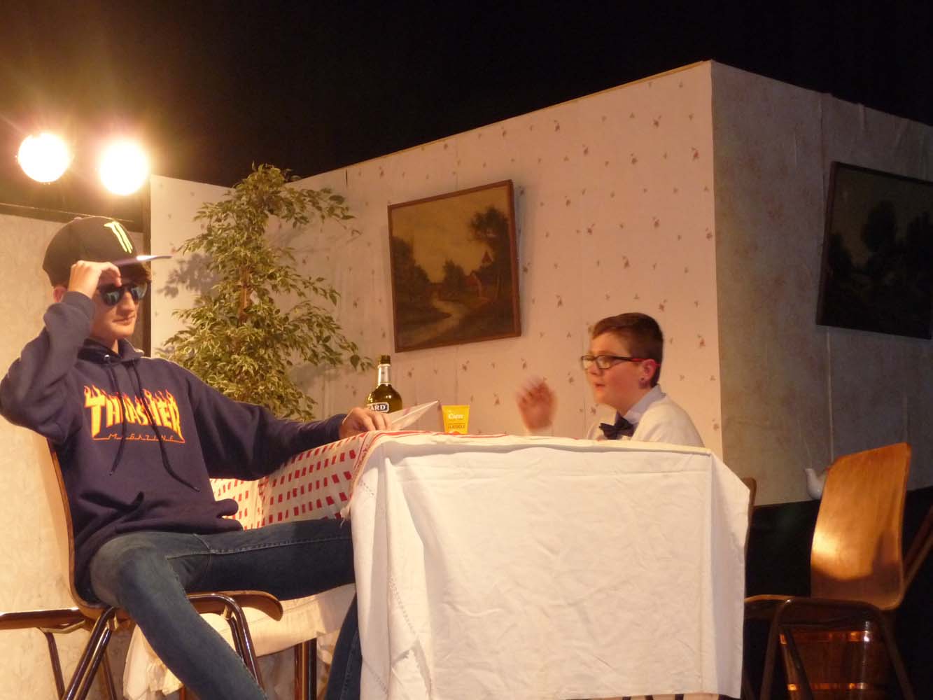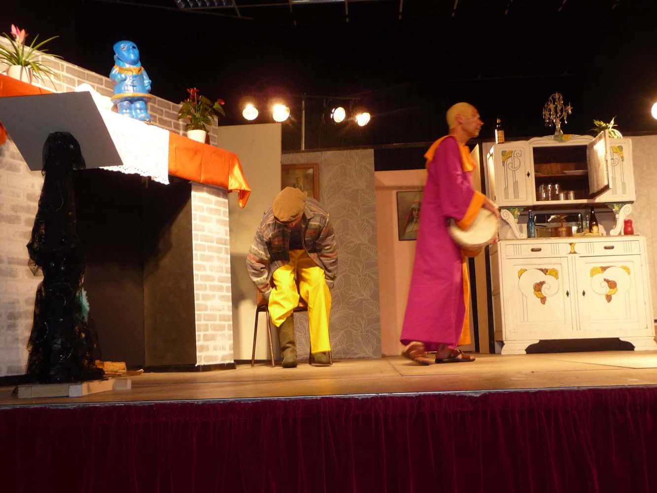 Avec près de 200 personnes présentes, Bruno Scrève et ses acolytes ont rapidement transporté l’audience en parodiant de façon ubuesque quelques franges de notre société : les préoccupations décalées de la paysannerie profonde, l’imposture et l’opportunisme des sectes, et l’absence de personnalité des sosies.