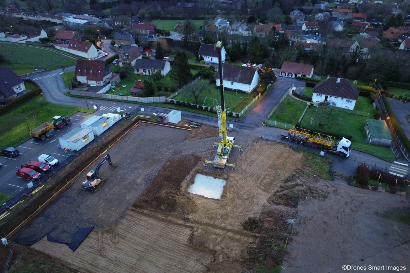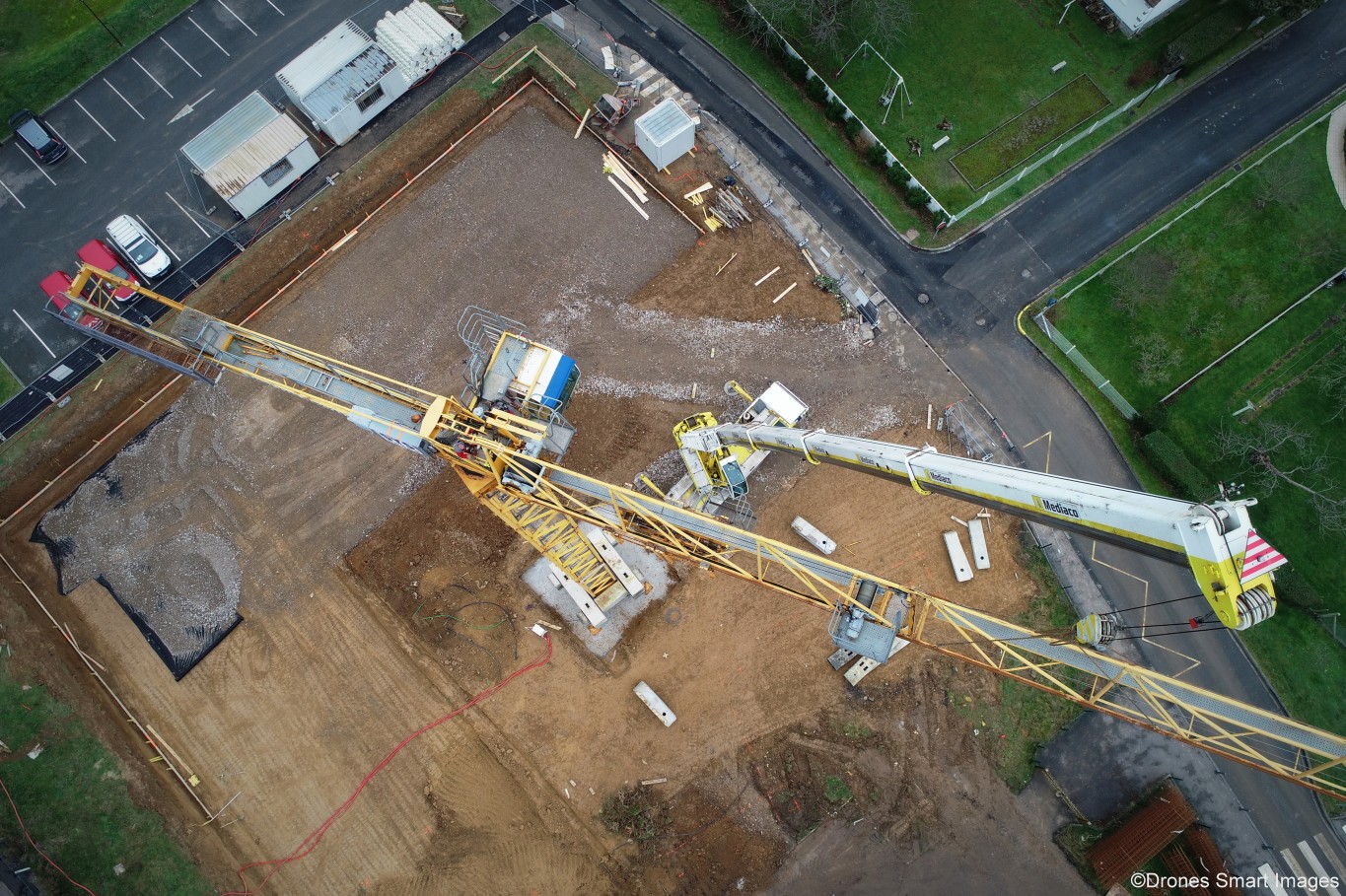 La grue servant à la construction du prochain groupe scolaire est en place !