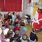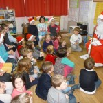 Les élèves de la maternelle ont assisté le jeudi 17 décembre au spectacle réalisé par les élèves du groupe scolaire “Le Vallon”, et à leur retour un repas de Noël préparé par notre cuisinière Nathalie Godey leur était servi. Le lendemain après-midi, ils ont reçu la visite du Père Noël et ils lui ont chanté des chants de Noël. Ils ont ensuite reçu des mains du Père Noël un cadeau ainsi que des friandises.