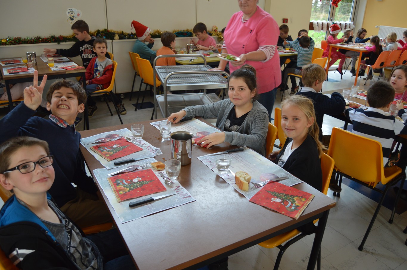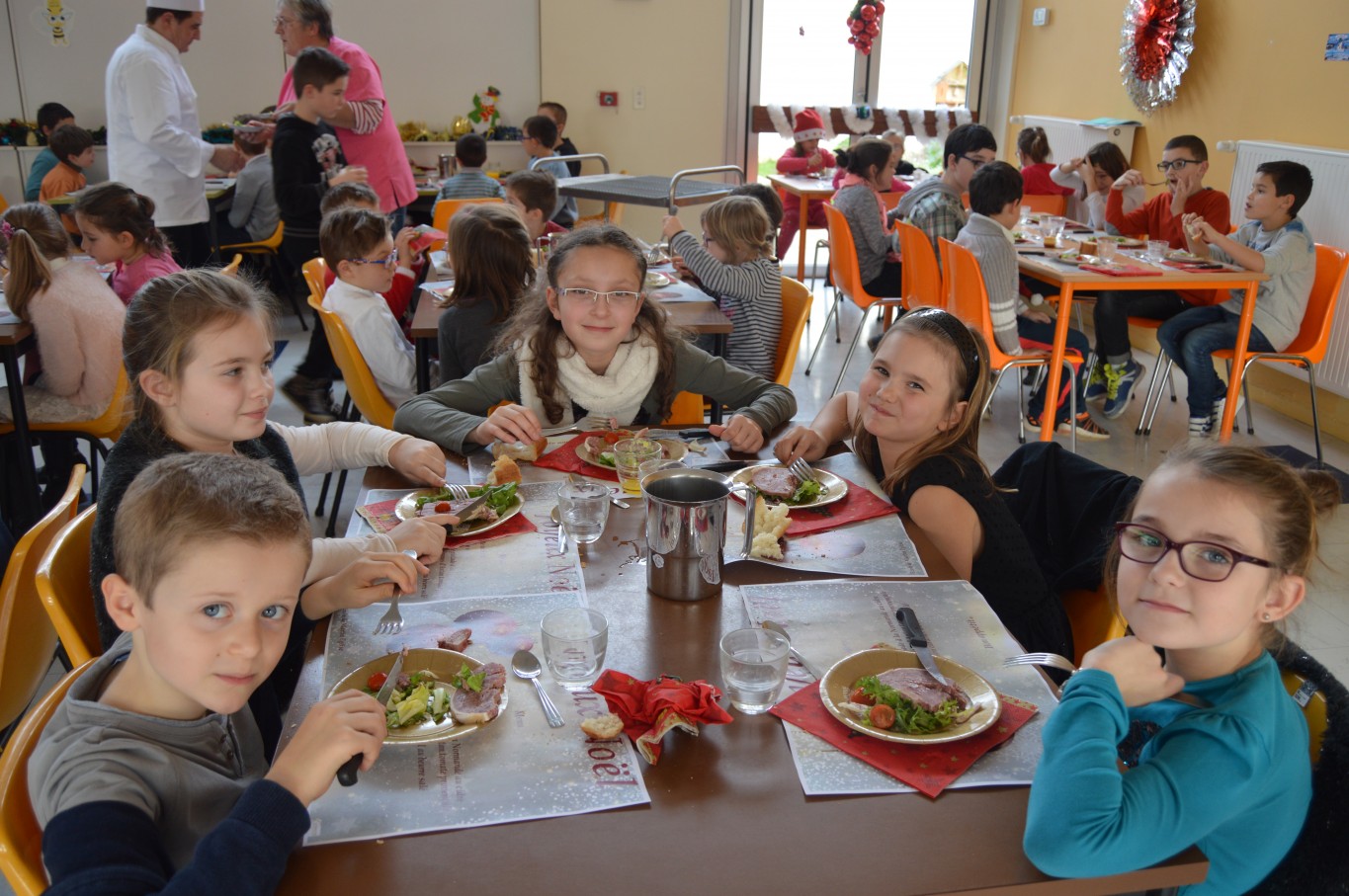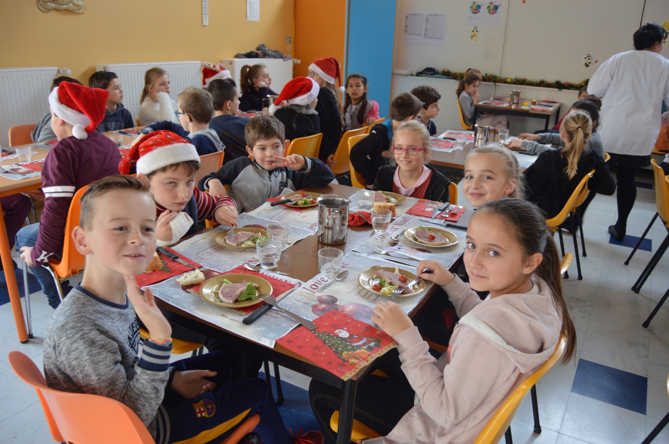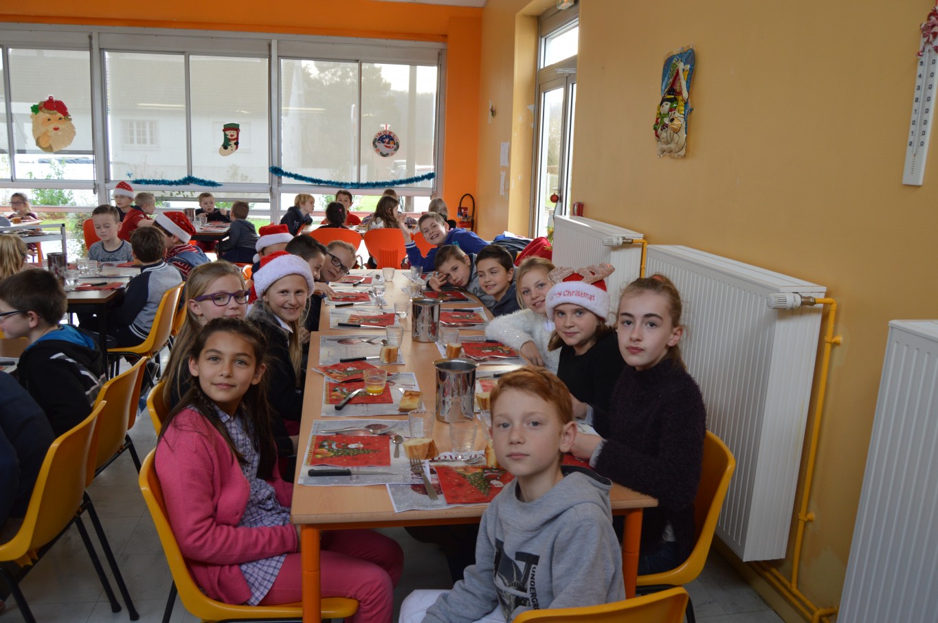 Jeudi 17 décembre, les élèves du groupe scolaire “Le Vallon” ont proposé aux parents et au Père Noël un spectacle musical qu’ils avaient travaillé depuis le début de l’année scolaire avec la collaboration de leur intervenant musique Régis. A la fin du spectacle, tous les enfants ont reçu un cadeau remis par le Père Noël. A leur retour à l’école, un repas de Noël préparé par notre cuisinière Nathalie Godey aidé de Patrice Nivault (Chef formateur du Centre de Formation et d’Expertise Culinaire) leur était servi.