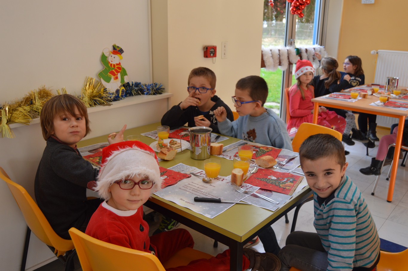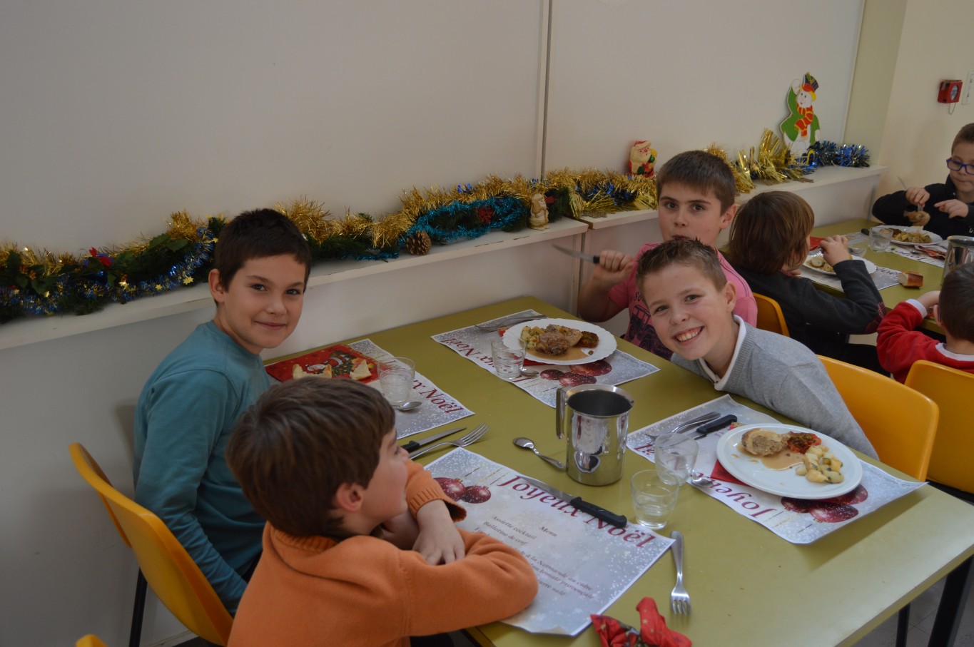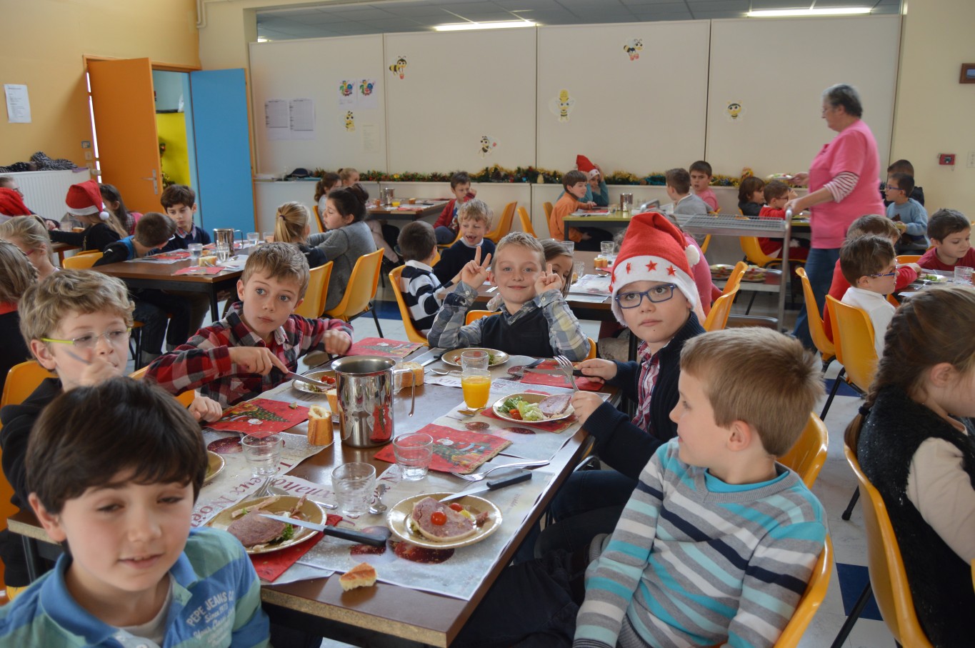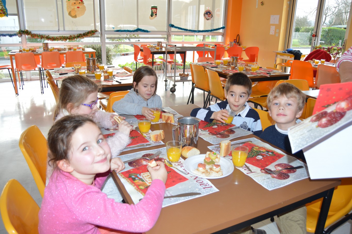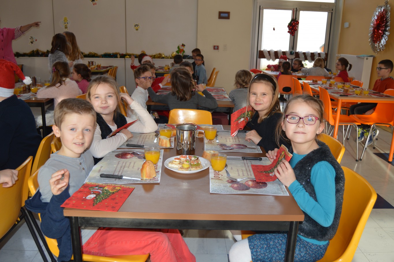 Jeudi 17 décembre, les élèves du groupe scolaire “Le Vallon” ont proposé aux parents et au Père Noël un spectacle musical qu’ils avaient travaillé depuis le début de l’année scolaire avec la collaboration de leur intervenant musique Régis. A la fin du spectacle, tous les enfants ont reçu un cadeau remis par le Père Noël. A leur retour à l’école, un repas de Noël préparé par notre cuisinière Nathalie Godey aidé de Patrice Nivault (Chef formateur du Centre de Formation et d’Expertise Culinaire) leur était servi.