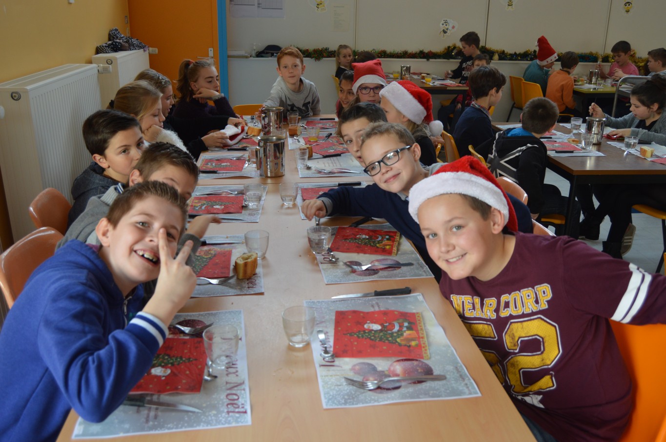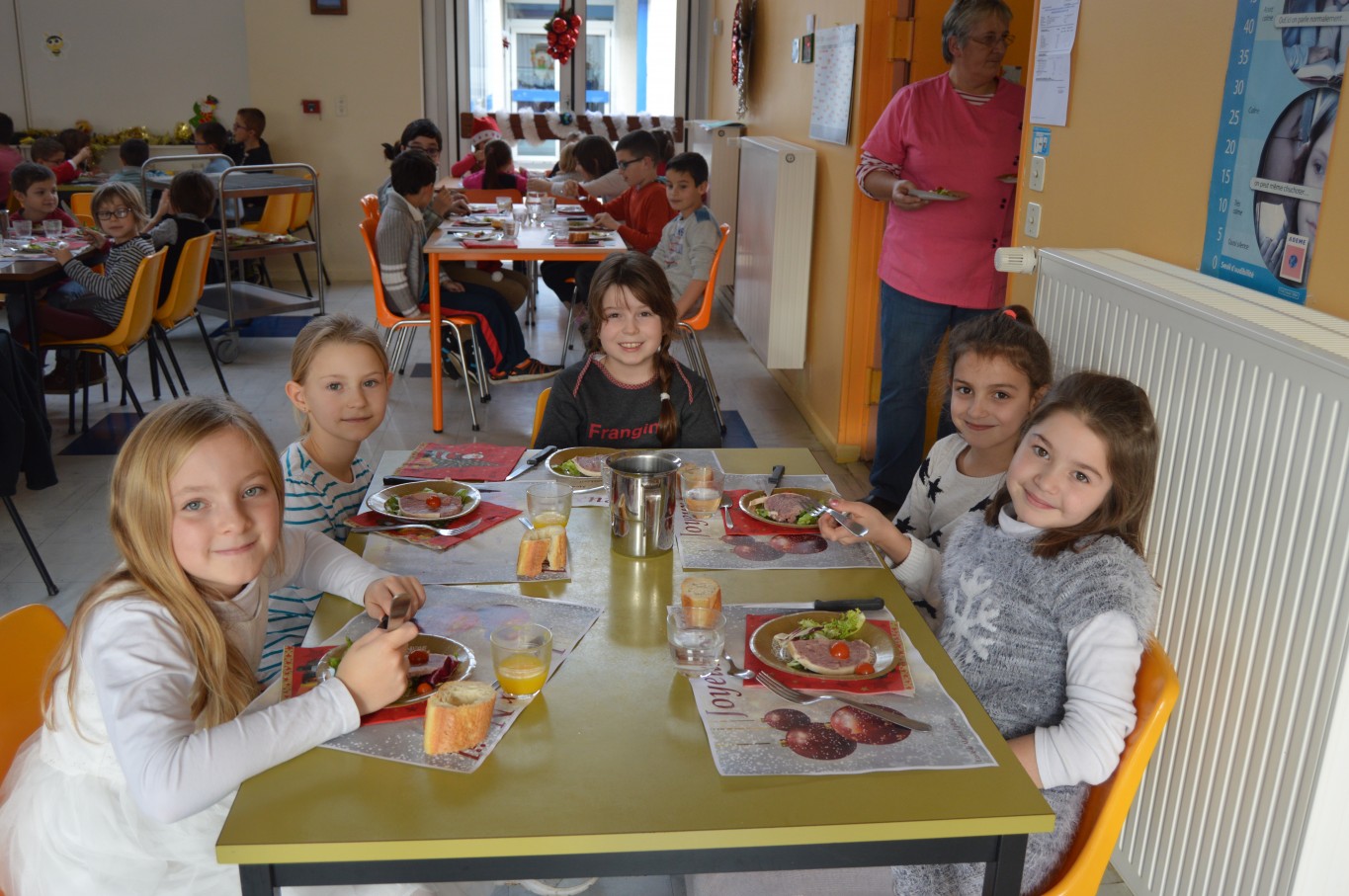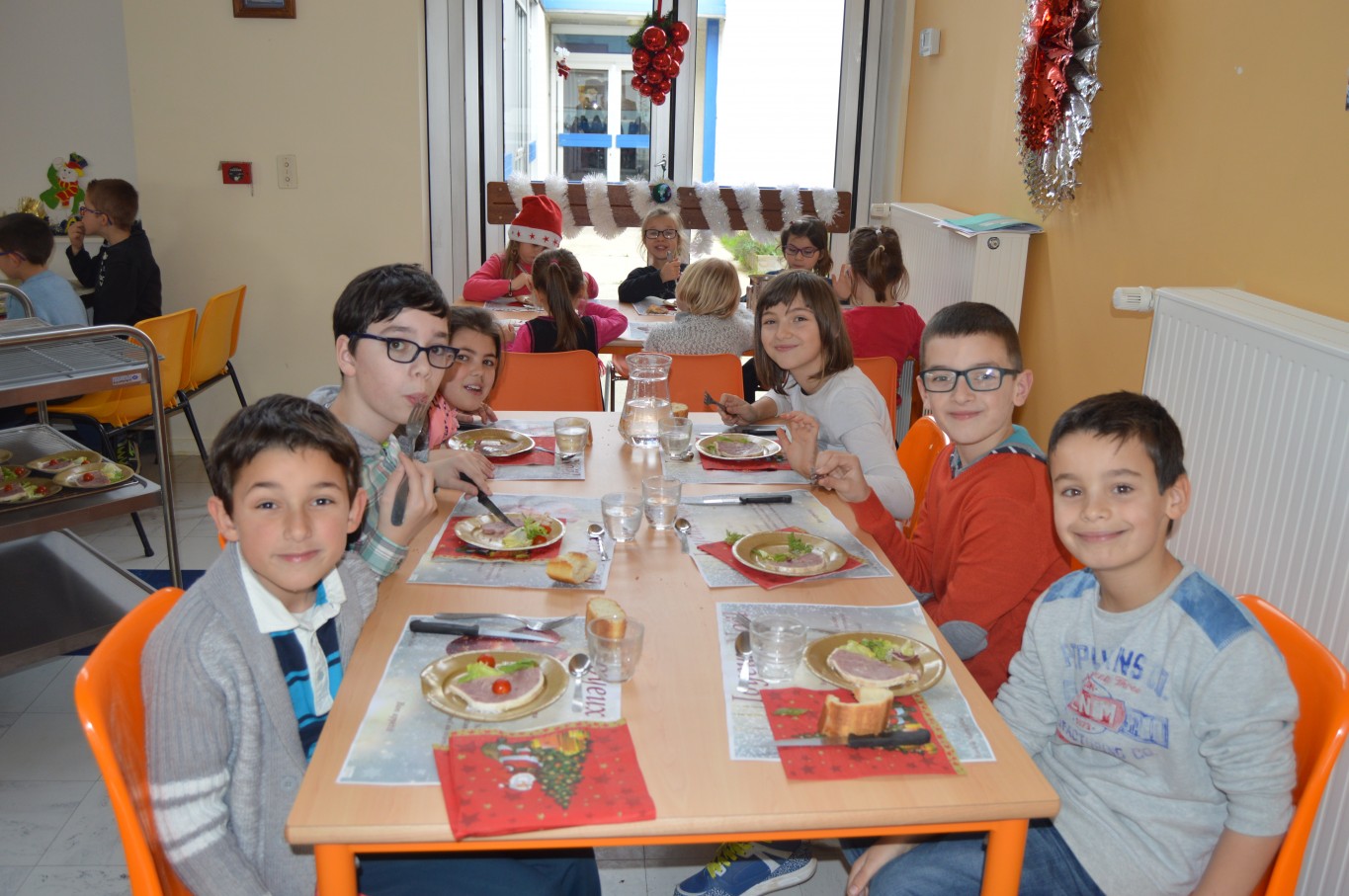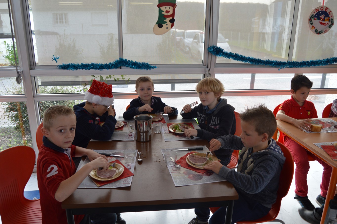 Jeudi 17 décembre, les élèves du groupe scolaire “Le Vallon” ont proposé aux parents et au Père Noël un spectacle musical qu’ils avaient travaillé depuis le début de l’année scolaire avec la collaboration de leur intervenant musique Régis. A la fin du spectacle, tous les enfants ont reçu un cadeau remis par le Père Noël. A leur retour à l’école, un repas de Noël préparé par notre cuisinière Nathalie Godey aidé de Patrice Nivault (Chef formateur du Centre de Formation et d’Expertise Culinaire) leur était servi.