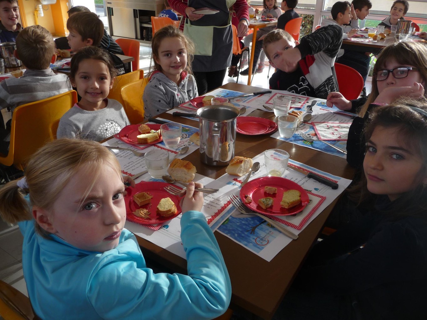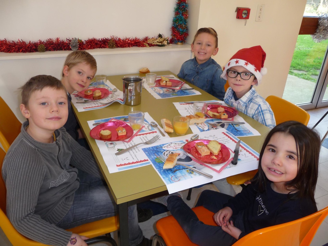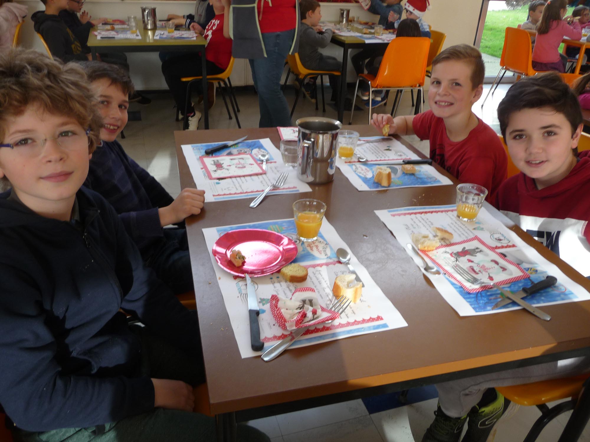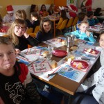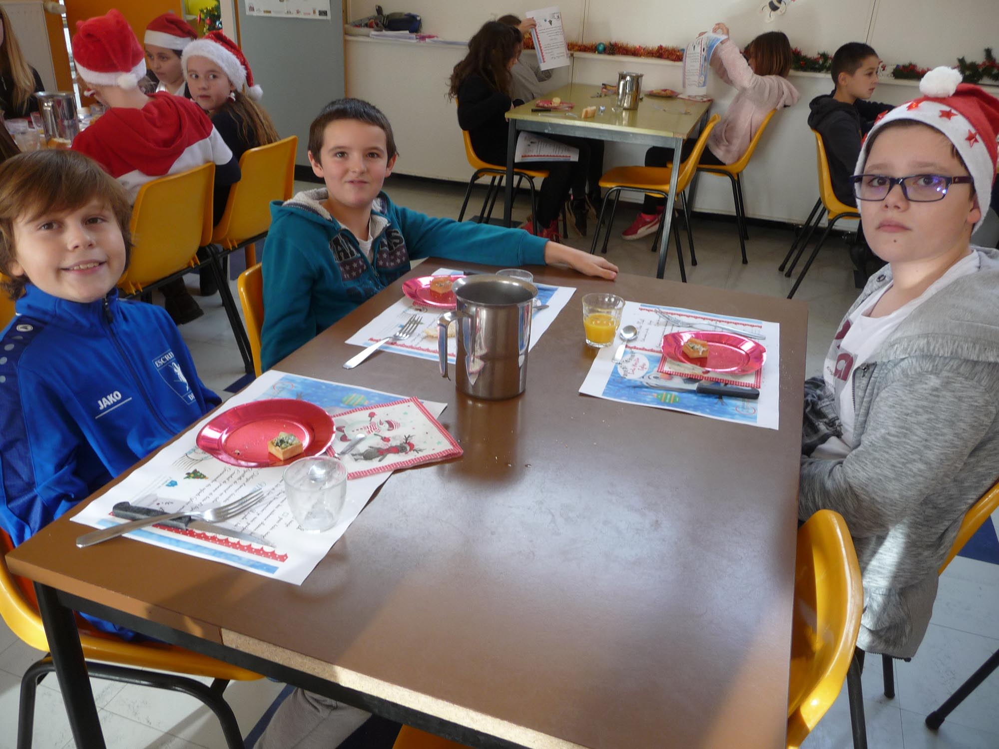 Nathalie Godey, chef de cuisine au restaurant scolaire a proposé un menu festif aux 130 élèves de l ‘école élémentaire et maternelle dans une ambiance de fête. Tous étaient absolument ravis du repas préparé avec amour.