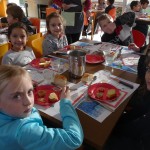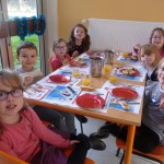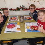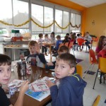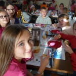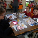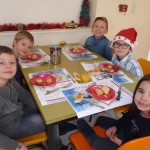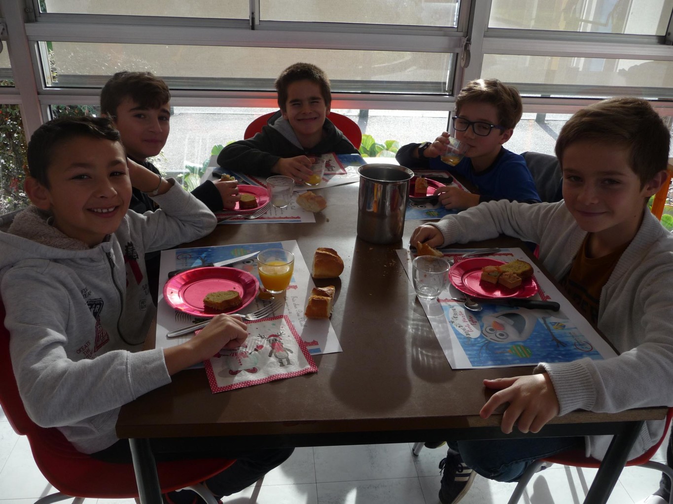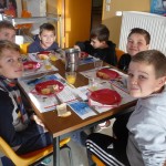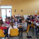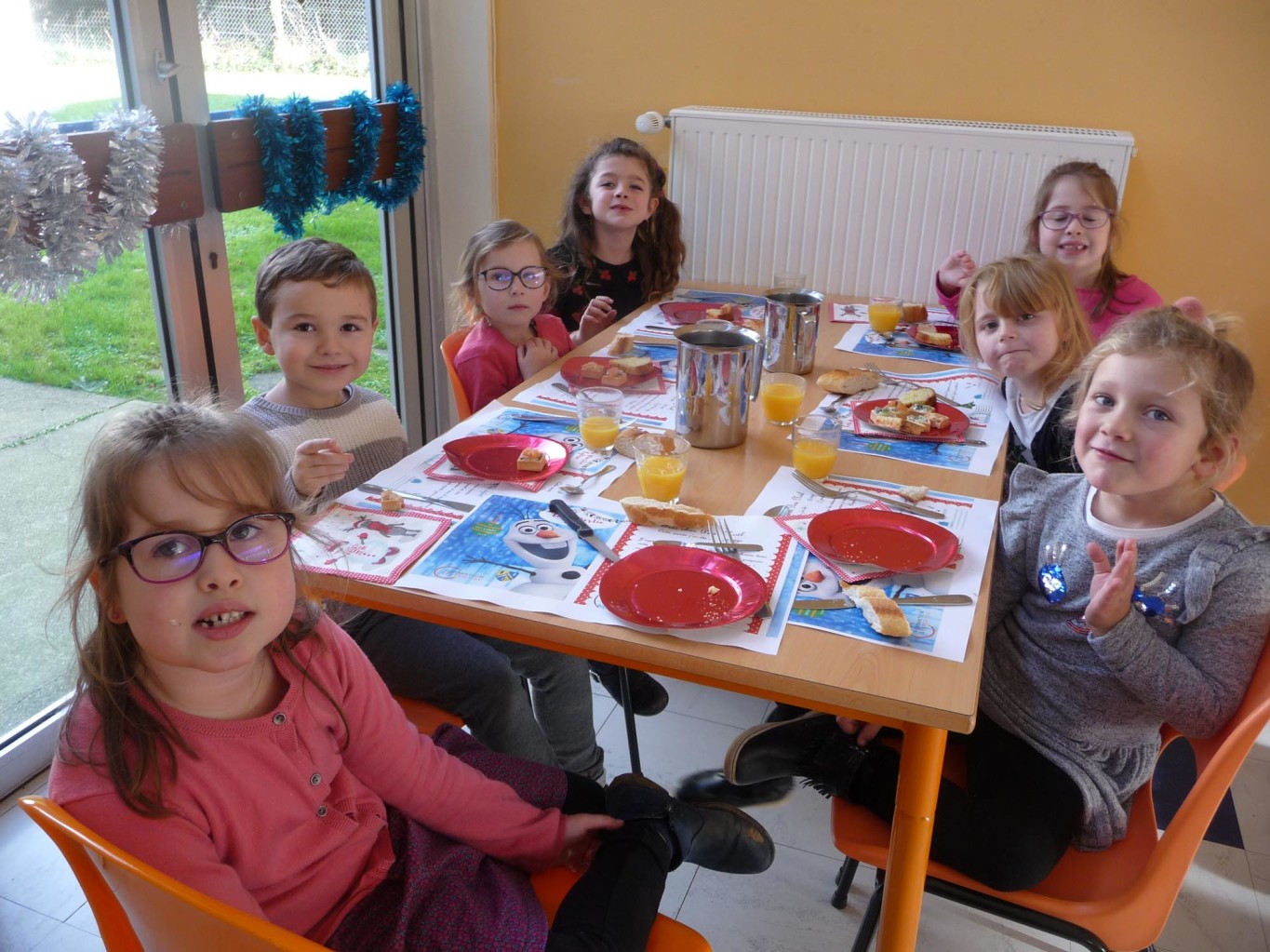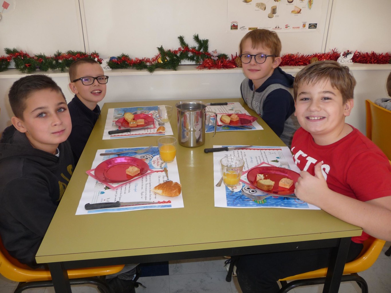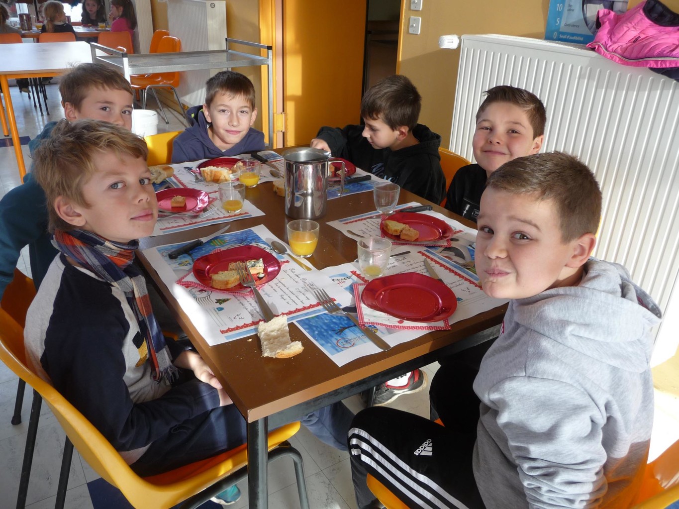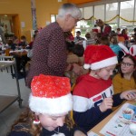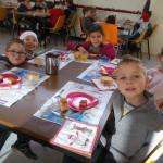 Nathalie Godey, chef de cuisine au restaurant scolaire a proposé un menu festif aux 130 élèves de l ‘école élémentaire et maternelle dans une ambiance de fête. Tous étaient absolument ravis du repas préparé avec amour.