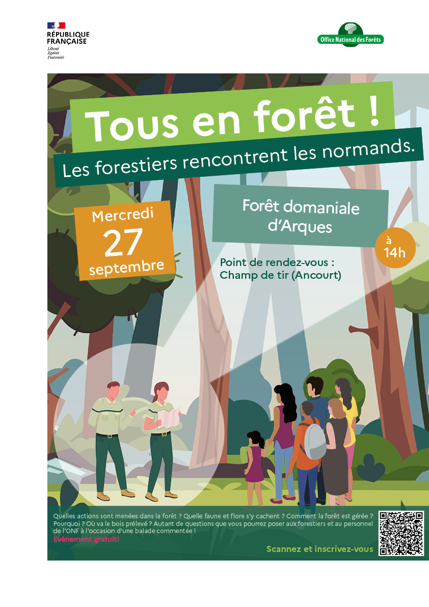 Pour cette seconde édition en Normandie, de Tous en forêt, les forestiers de l’Office national des forêts vous donnent rendez-vous le mercredi 27 septembre à 14h en forêt d’Arques – Parking du Champ de tir. Ils pourront répondre à toutes vos questions concernant la forêt et sa gestion au travers d’une visite guidée d’environ 2h. Evènement sur inscription.
