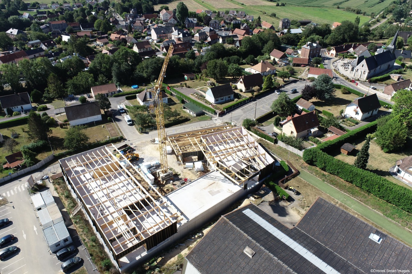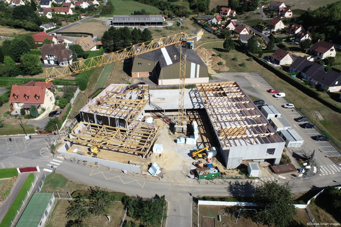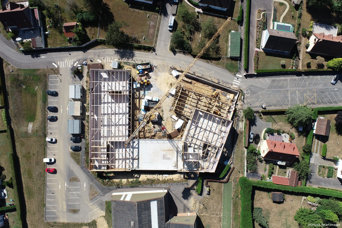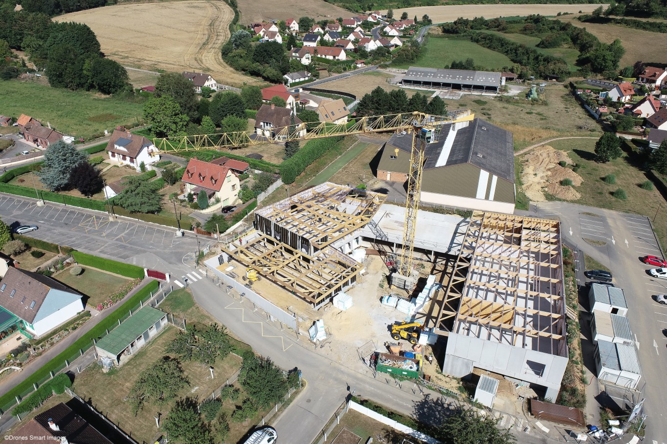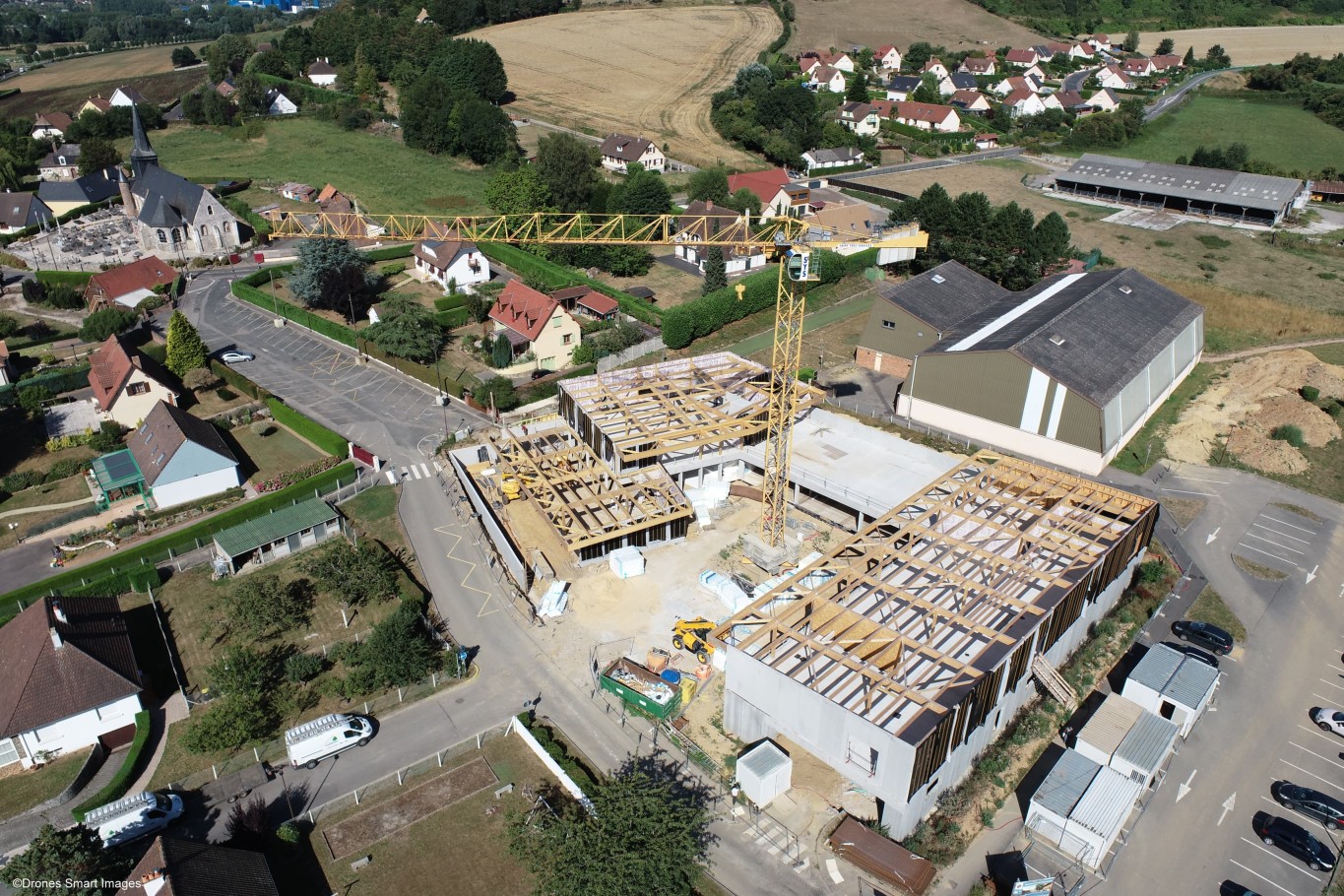 Voici quelques photos aériennes de la construction du futur Pôle Scolaire, ainsi que des clichés du démontage de la grue.