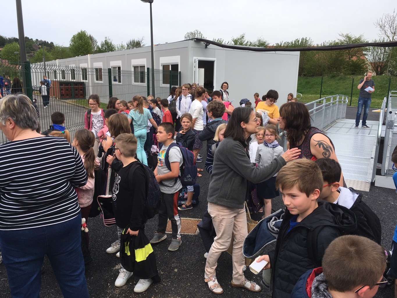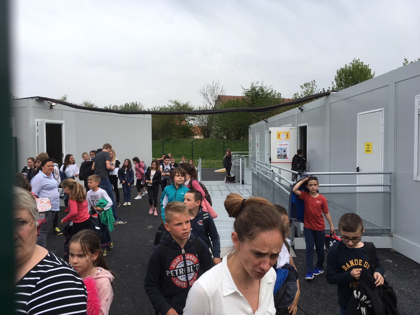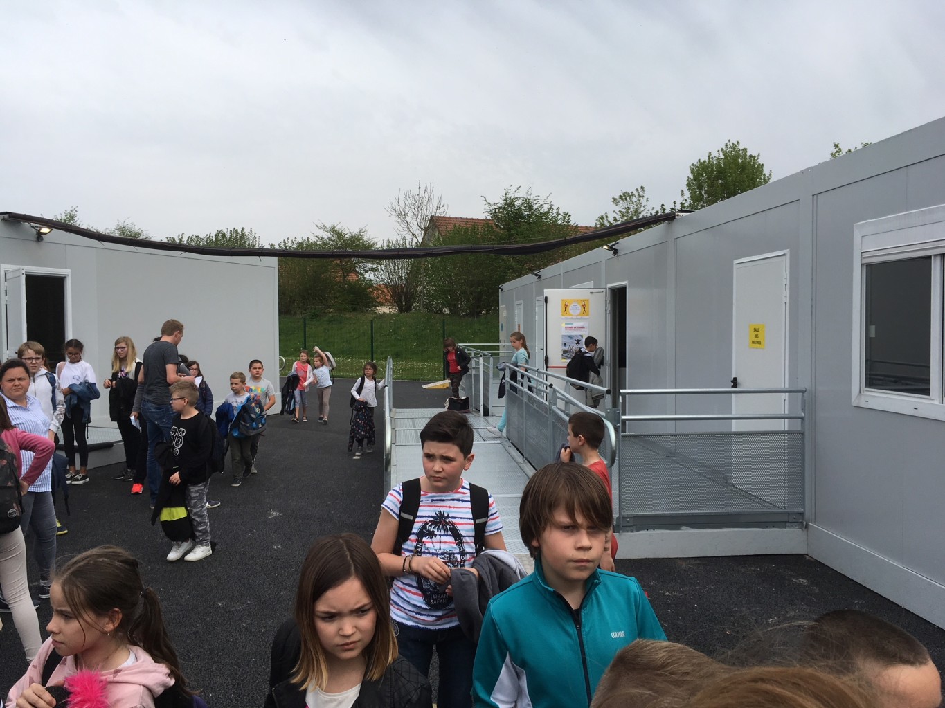 À l’occasion de la découverte de leur école provisoire lors de la dernière rentrée, les élèves de l’école Le Vallon ont été photographiés au sein de leur établissement.