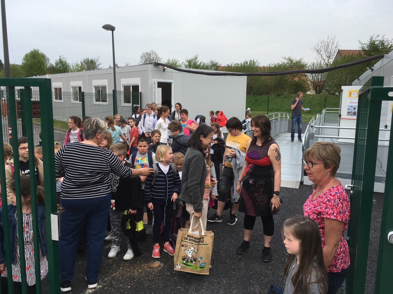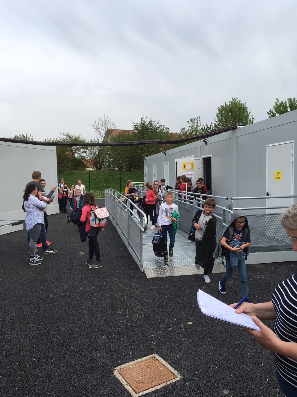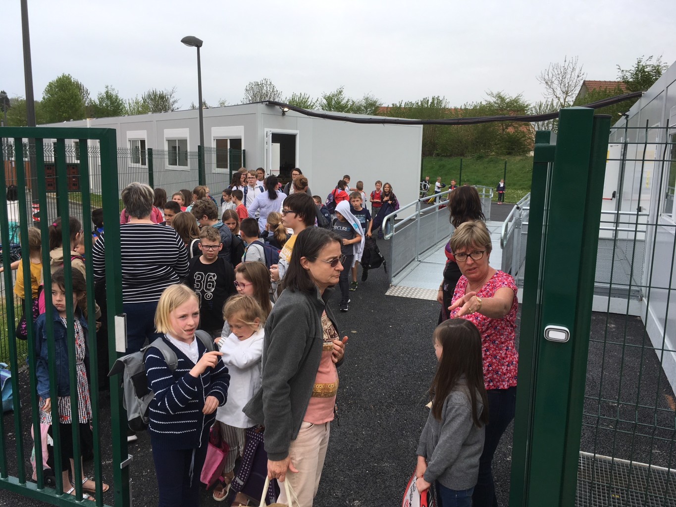 À l’occasion de la découverte de leur école provisoire lors de la dernière rentrée, les élèves de l’école Le Vallon ont été photographiés au sein de leur établissement.