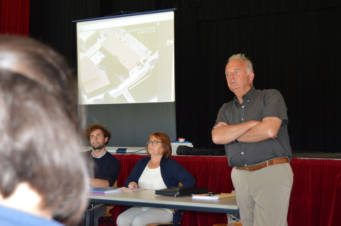 Le lundi 18 juin, s’est déroulée à la salle des fêtes une réunion de présentation du nouveau groupe scolaire et de l’école provisoire en présence de M. Gill Geryl et de l’architecte du projet. Ils ont répondu aux questions des parents d’élèves présents et ont pu les rassurer quant au fonctionnement de l’école provisoire. Le début des travaux pour le nouveau groupe scolaire est prévu pour le premier trimestre 2019.