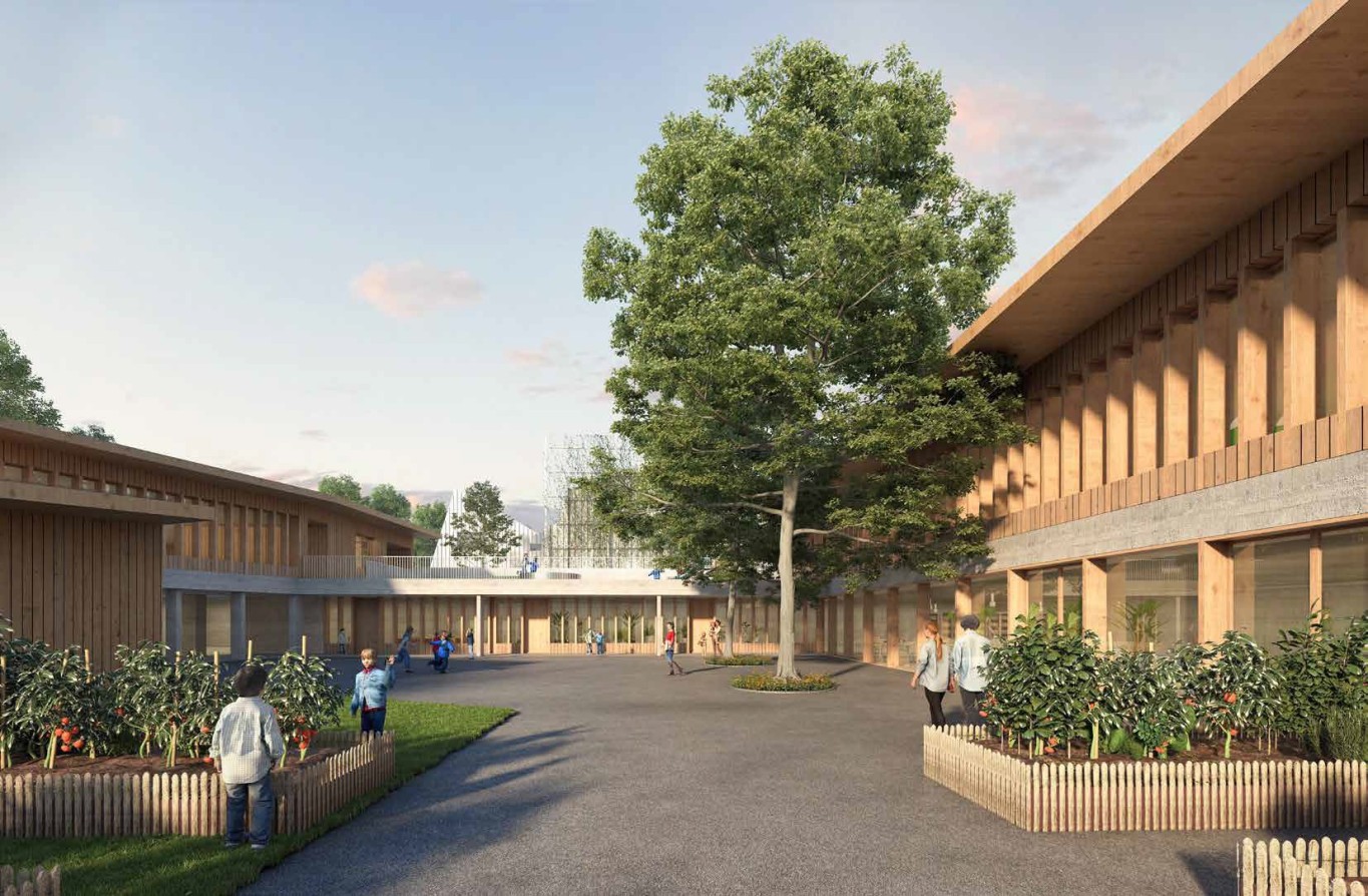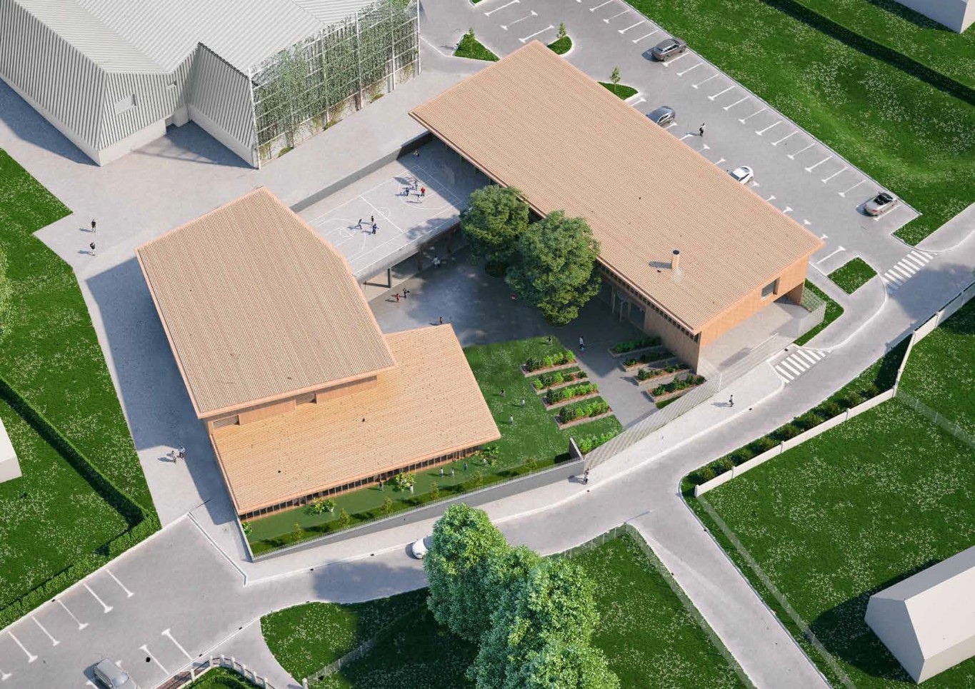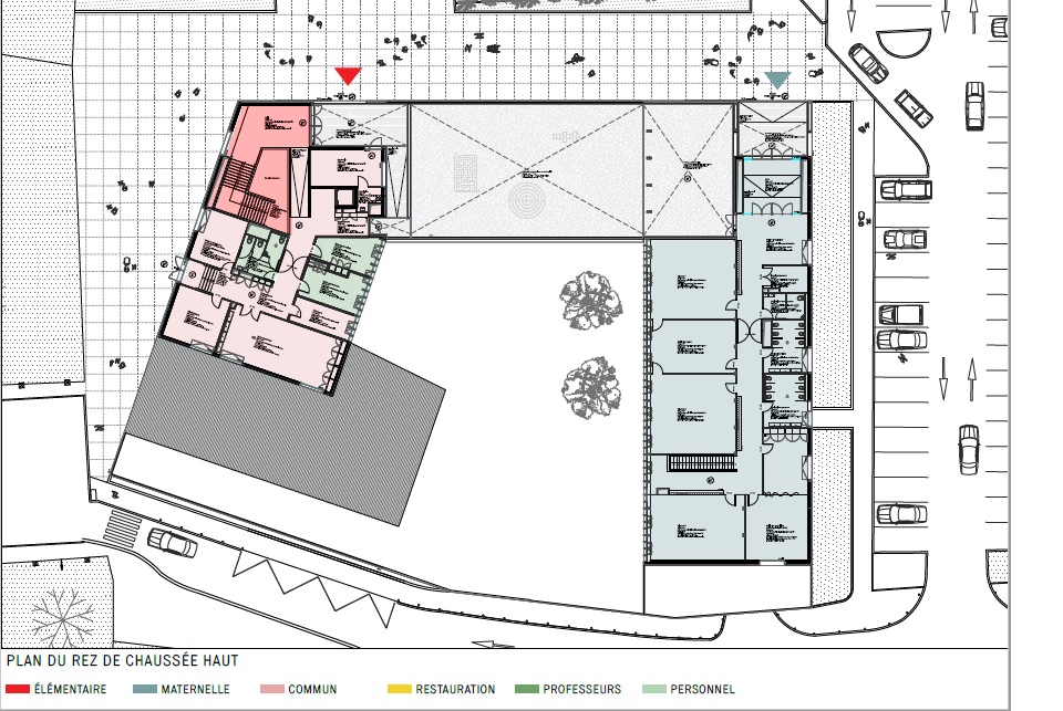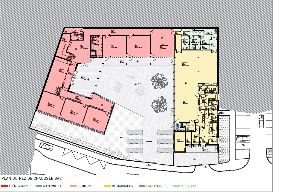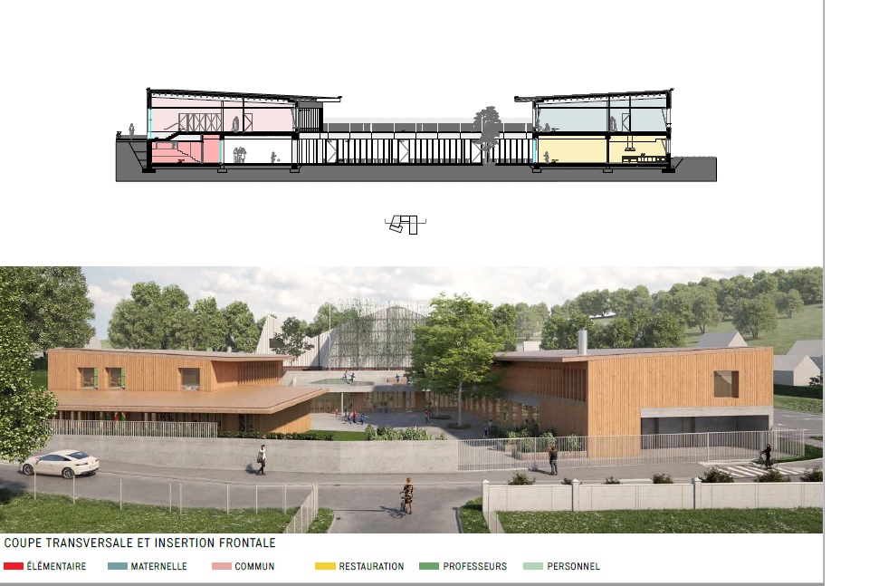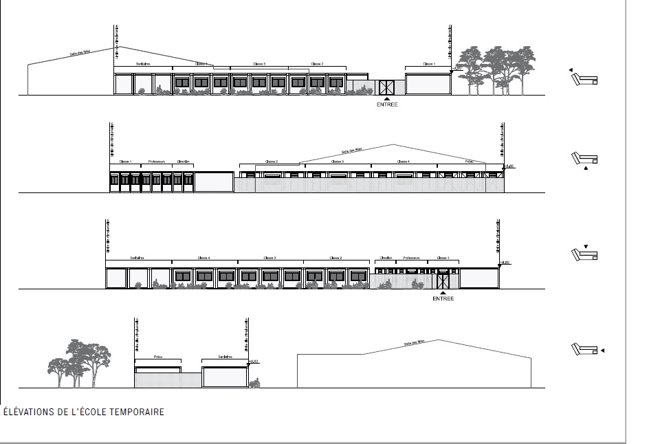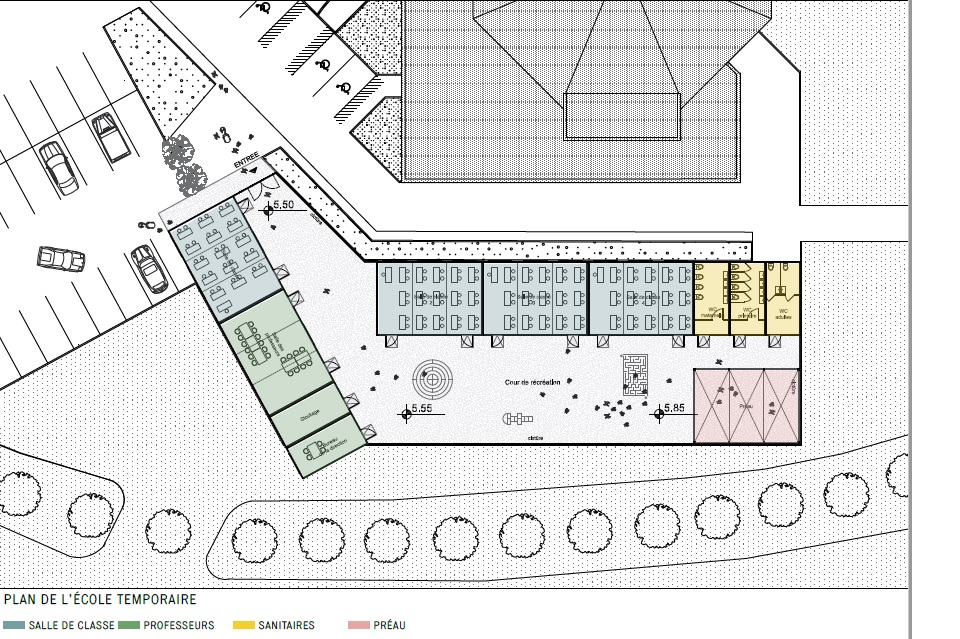 Vous trouverez ci-dessous les plans du futur groupe scolaire et de l’école provisoire :