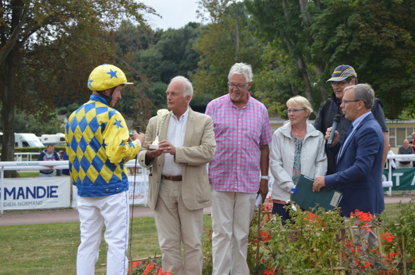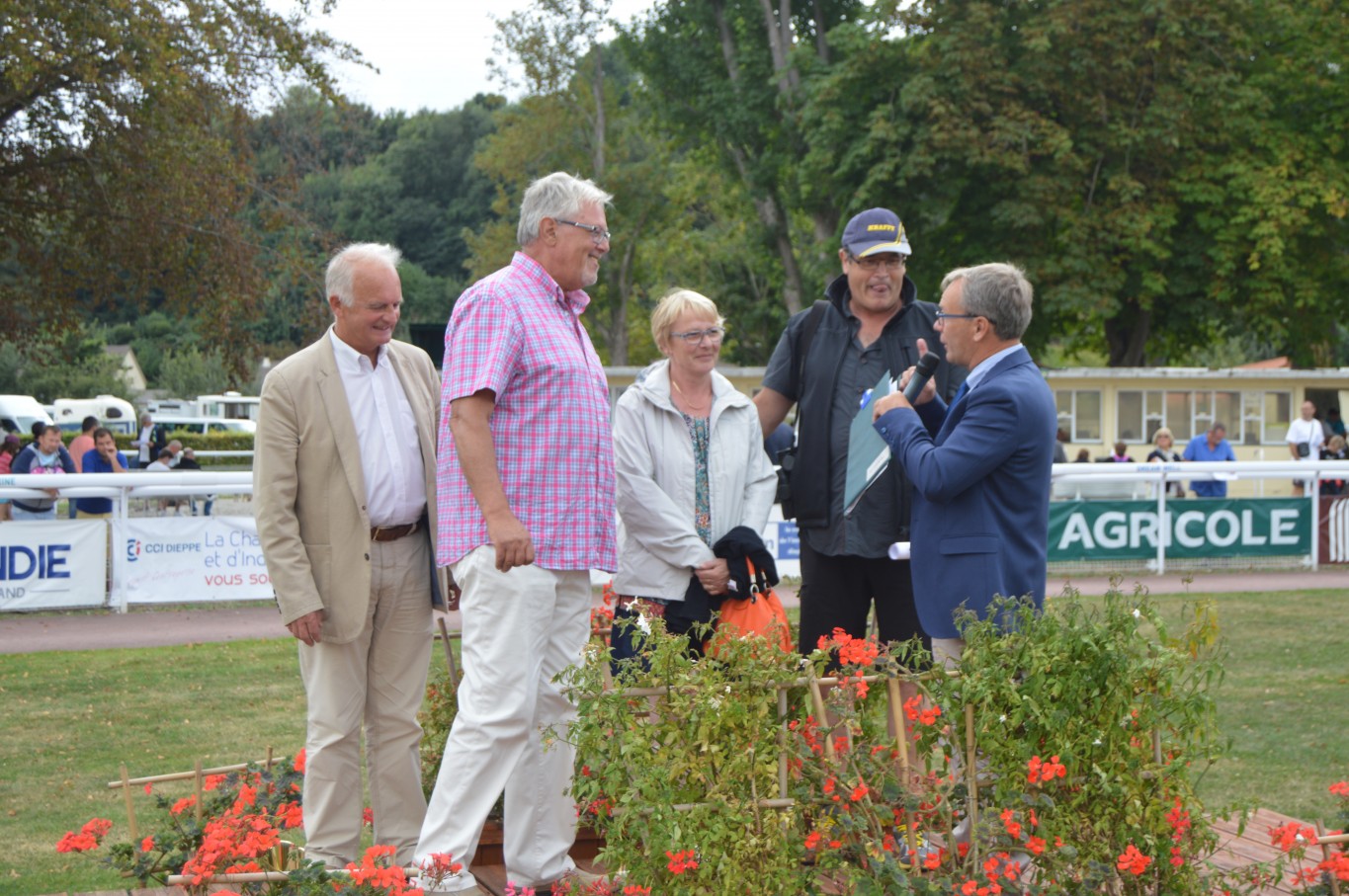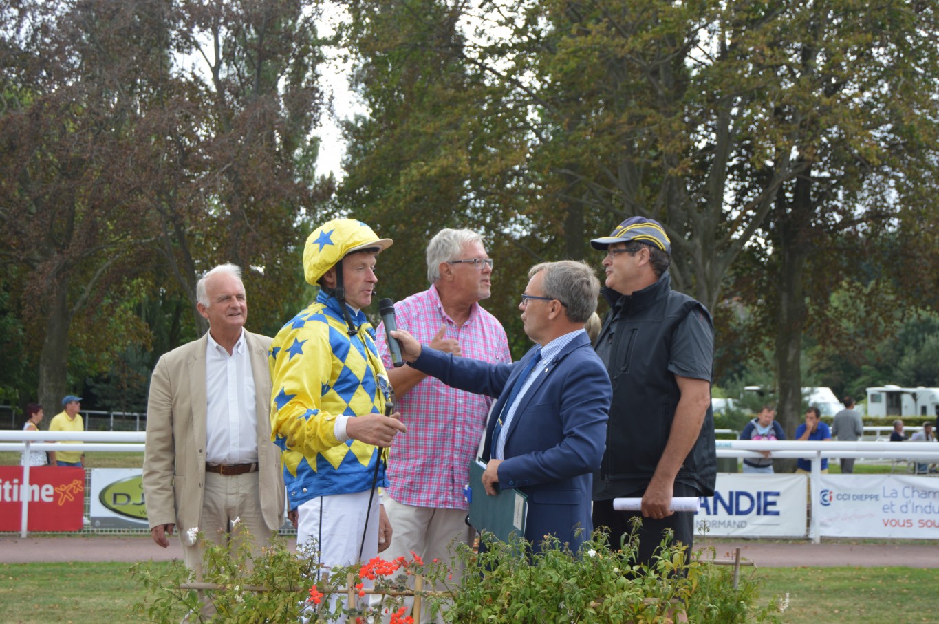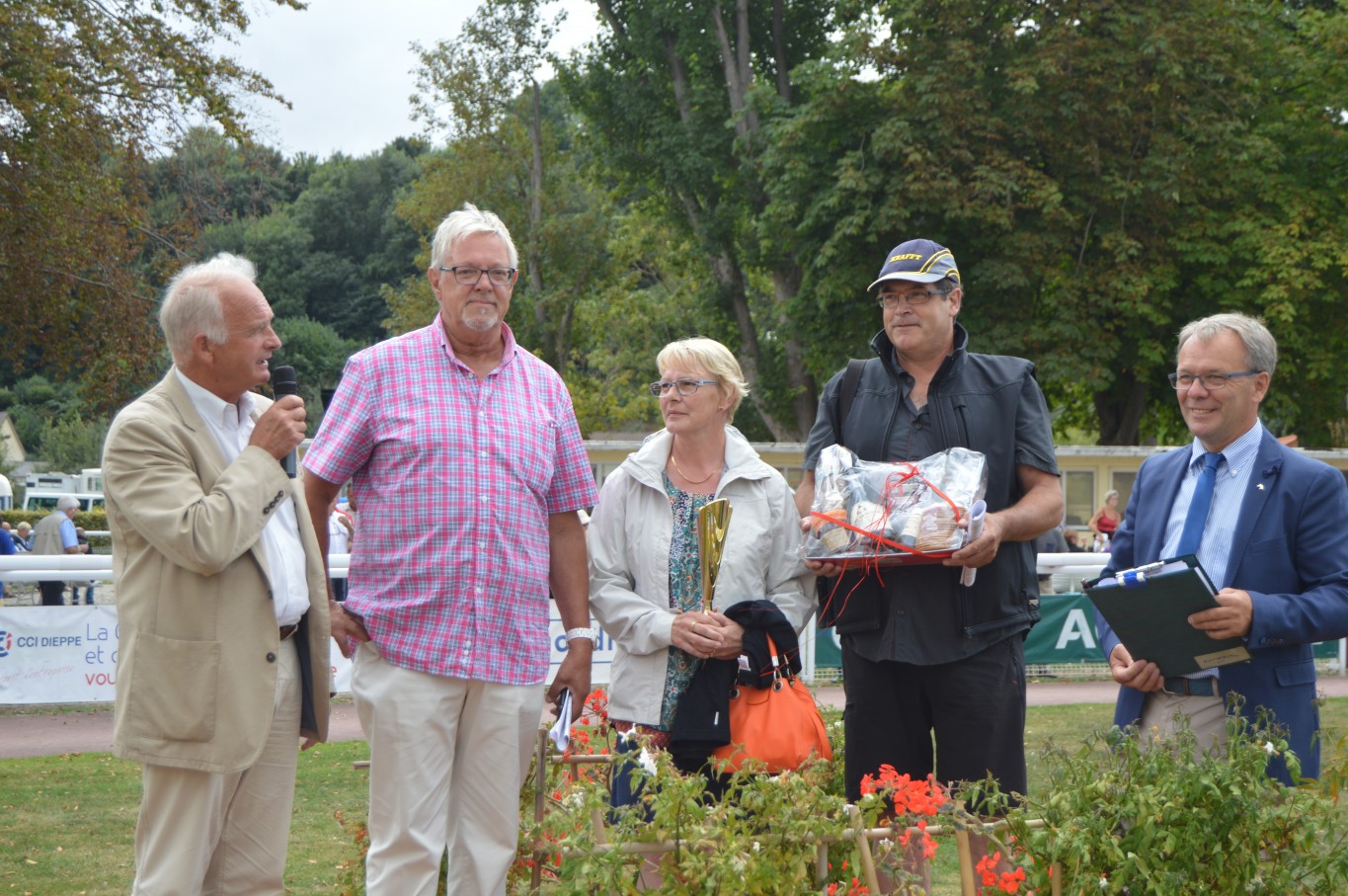 Dimanche 28 août, le prix de la ville de Martin Eglise s’est déroulé sur l’hippodrome de Rouxmesnil-Bouteilles. Après une course pleine de suspense, c’est le cheval appelé Davcol (N)3) monté par Pascal Castel qui a remporté l’épreuve. A l’issue de la course, une remise des prix a eu lieu au podium de l’hippodrome, Mr Gill Geryl a eu le plaisir de remettre un cadeau au vainqueur ainsi qu’une coupe.