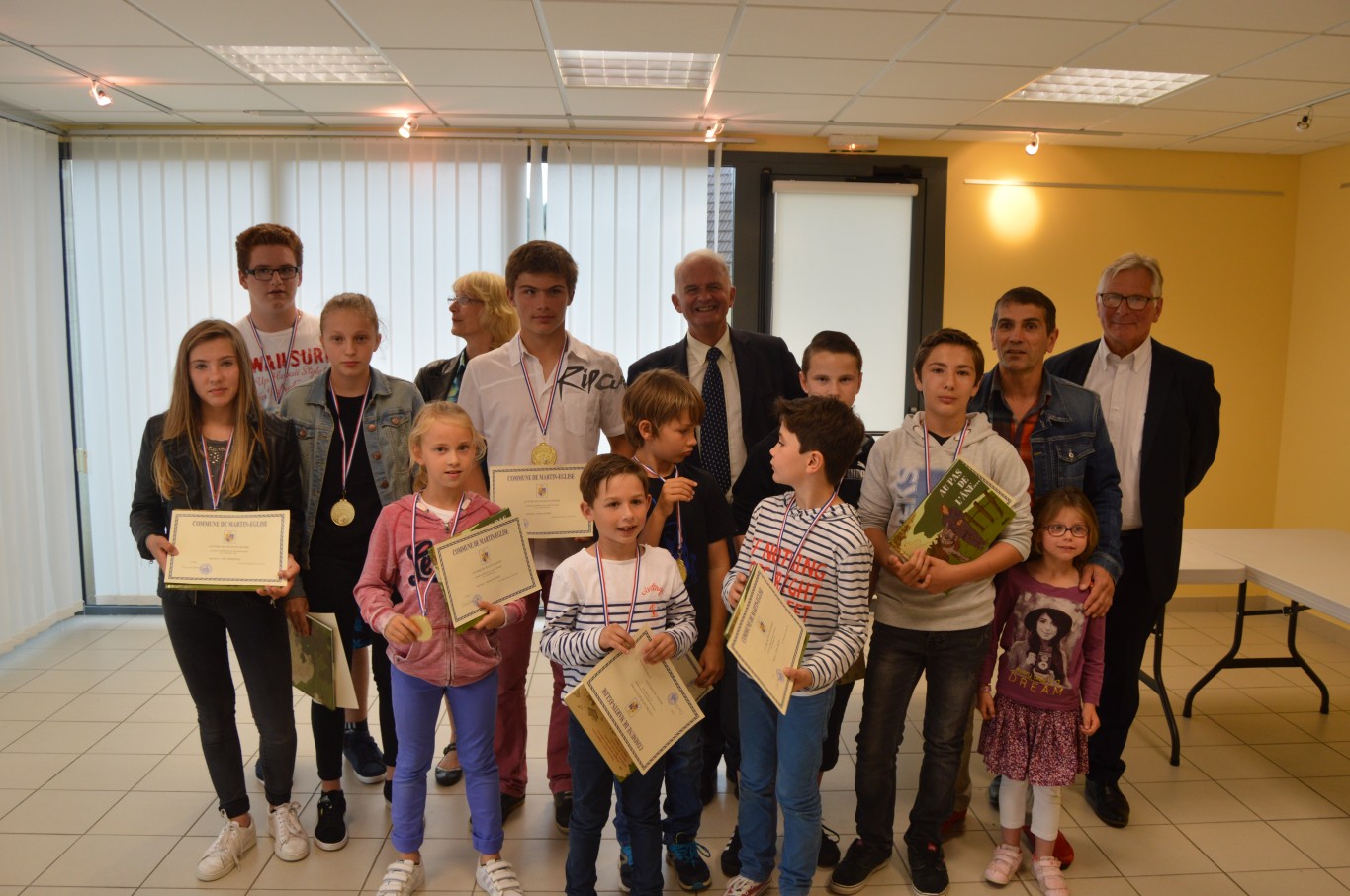 Jeudi 30 juin, la municipalité de Martin-Eglise accueillait à la salle Sully 11 jeunes judokas et leurs parents afin de les récompenser de leurs performances réalisées au cours de la saison 2015-2016. Cette cérémonie était l’occasion de montrer que le club de judo de Martin-Eglise est très dynamique et qu’il a encore de belles années à venir, vu le talent des jeunes judokas présents lors de cette soirée.