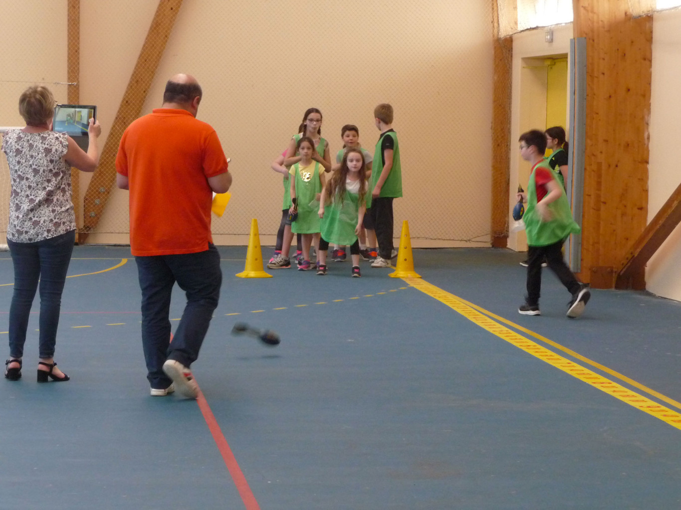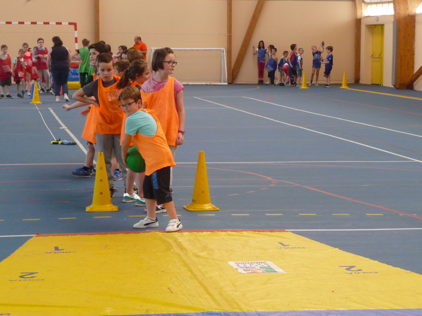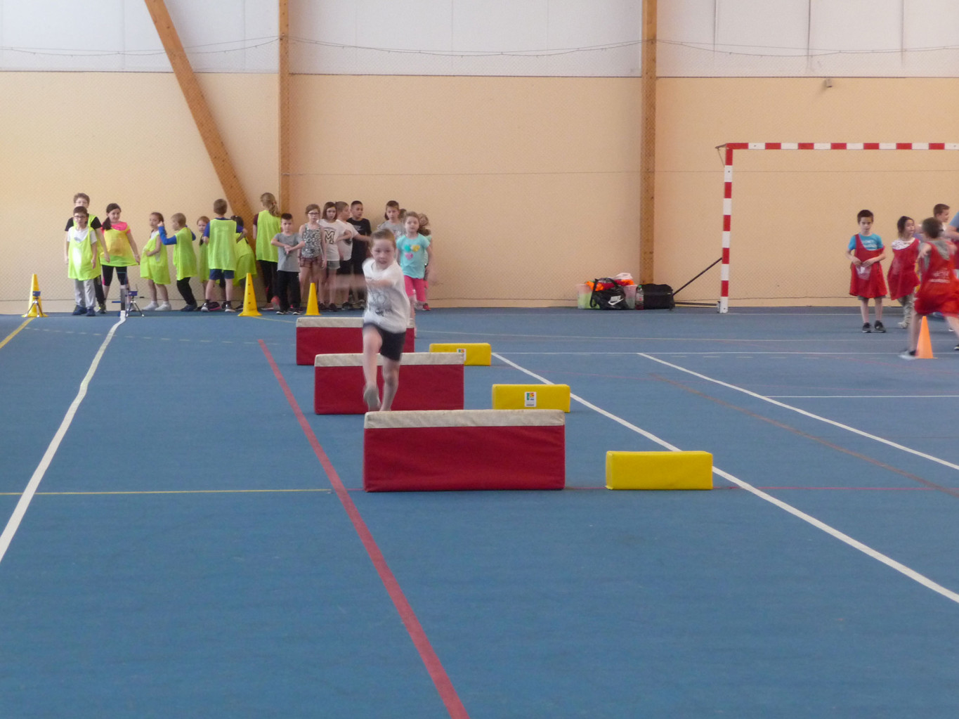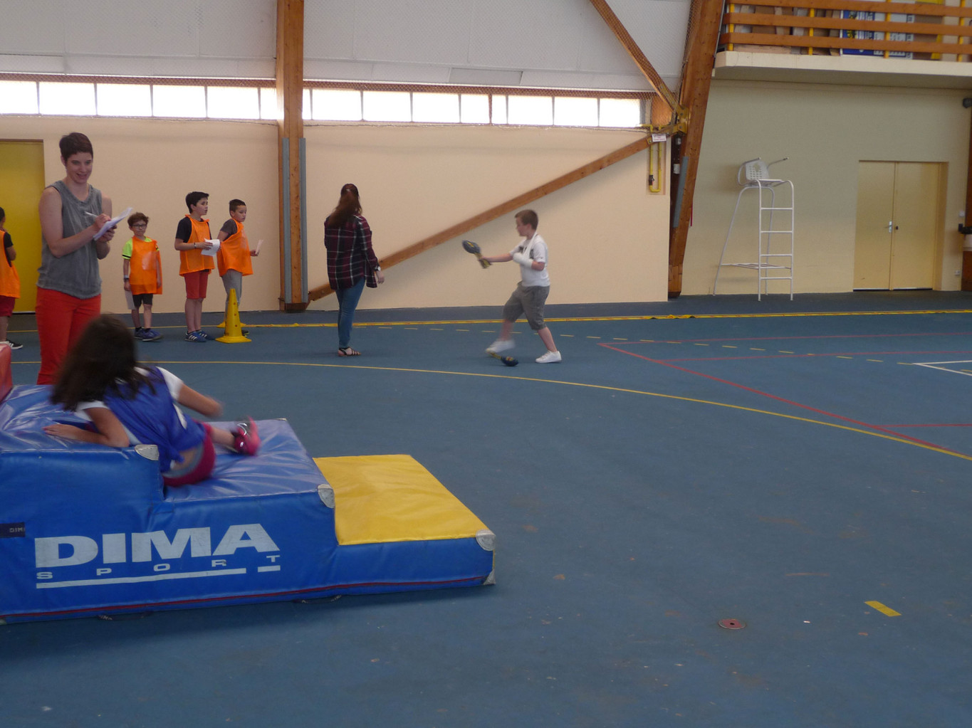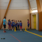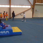 6 équipes se sont échelonnées pour pratiquer les 6 disciplines proposées : sprint, haies, medecine ball, multibonds, escalier et vortex (type javelot).