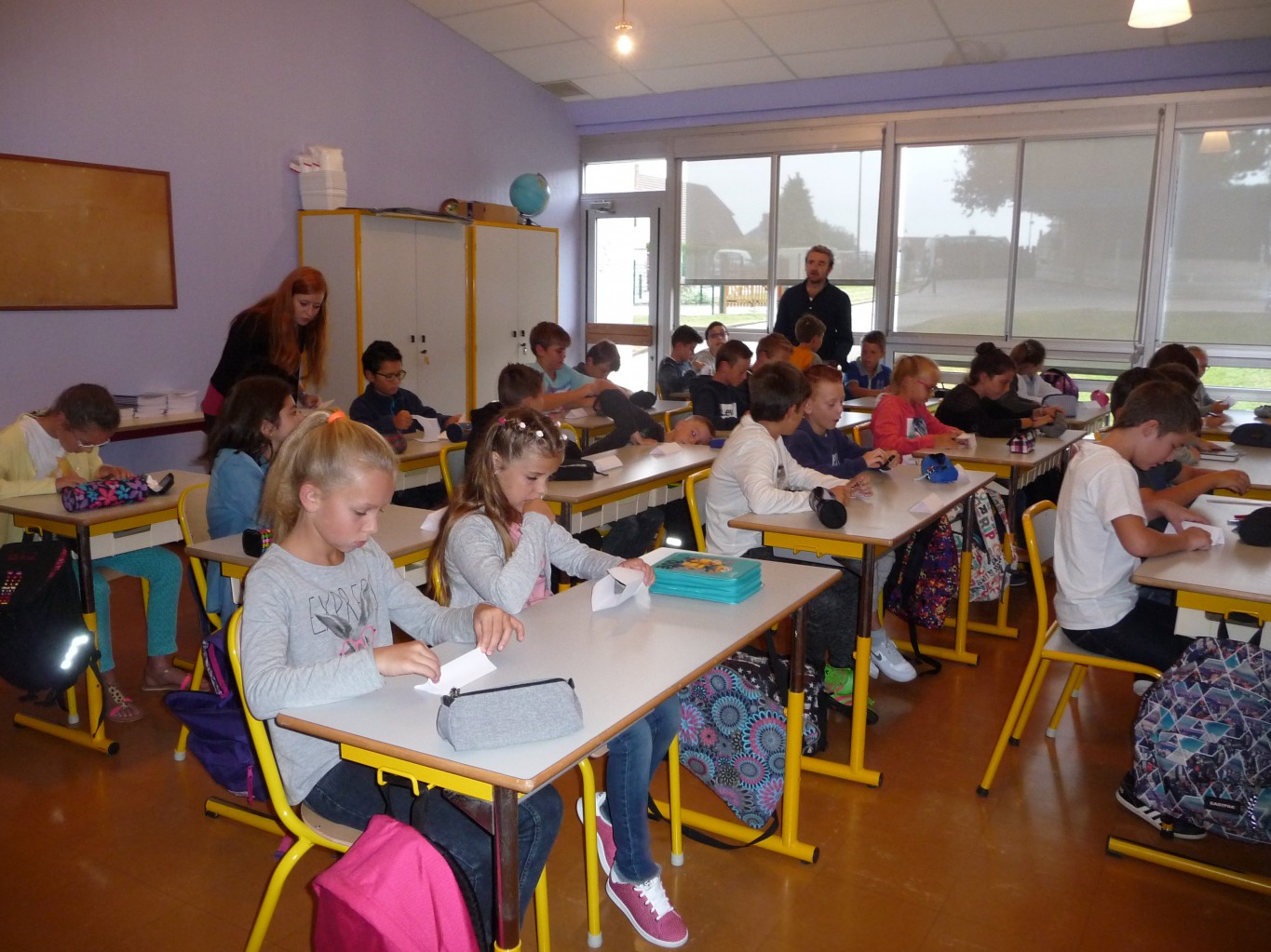 Jeudi 1er septembre, la rentrée a sonné pour les 102 élèves des classes de CP, CE1-CE2 et CM1-CM2. C’est Mme Lheureux, directrice du groupe scolaire ainsi que ses collègues Mme Lemonnier, Mme Foucout, Mr Gras et Mr Delannoy qui ont accueilli les élèves. Nous souhaitons la bienvenue à Mme Cindy Foucout et à Mr Geoffey Delannoy qui viennent d’arriver au groupe scolaire, ils se partageront la classe de CM1-CM2.