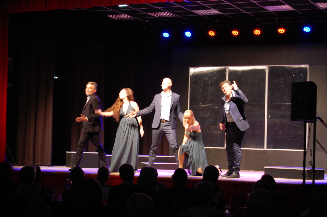 C’est après desserts et cafés que l’ensemble de nos invités ont pu assister au spectacle avec des artistes chanteurs professionnels sur la scène de la salle des fêtes. Ainsi, pendant près de 2 heures, ils ont pu apprécier et applaudir les interprétations de la Compagnie Trabucco avec une revisite en chansons des plus belles Comédies musicales Françaises de ces dernières années : Starmania, Mozart l’Opéra Rock, Notre Dame de Paris, Les dix Commandements …
