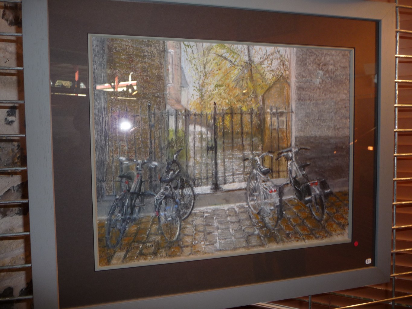 Du vendredi 16 avril au dimanche 26 avril, nous avons accueilli avec grand plaisir l’exposition de Corinne Quibel à la Chapelle d’Etran. Depuis 2012, c’est désormais devenu un rendez-vous printanier incontournable. Et cette année, l’artiste nous a convié à une « balade insolite » à travers Dieppe, son port et ses quais, la côte et la campagne normande. Elle nous a aussi emmenés sur les côtes bretonnes ainsi que sur de la côte flamande avec ces vélos au repos au-dessus des canaux de la Venise du Nord, avec ce restaurant en avancée sur la mer près de Zeebruge.