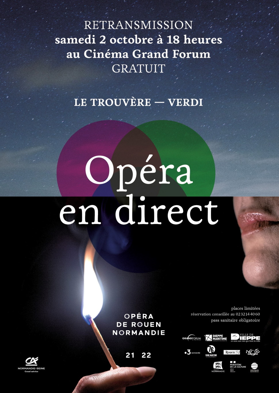 Dieppe-Maritime, en partenariat avec l’Opéra de Rouen et la Région Normandie, accueille la retransmission en direct de ce spectacle. Elle aura lieu le samedi 2 octobre 2021 à 18h dans l’enceinte du cinéma Grand Forum de Dieppe.