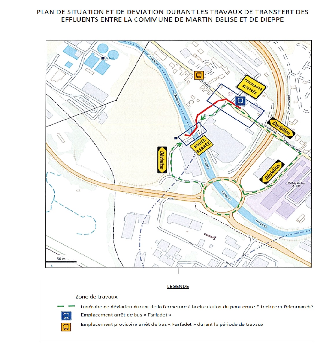 Dans le cadre de l’opération de transfert des effluents de la station d’épuration d’Arques-la-Bataille vers le système d’assainissement de Dieppe, la Communauté d’Agglomération Dieppe-Maritime va entreprendre des travaux pour le transfert d’une partie des effluents de Martin-Eglise vers le système d’assainissement de Dieppe.